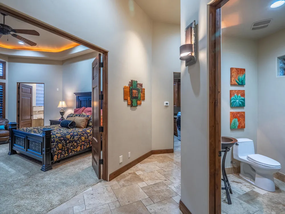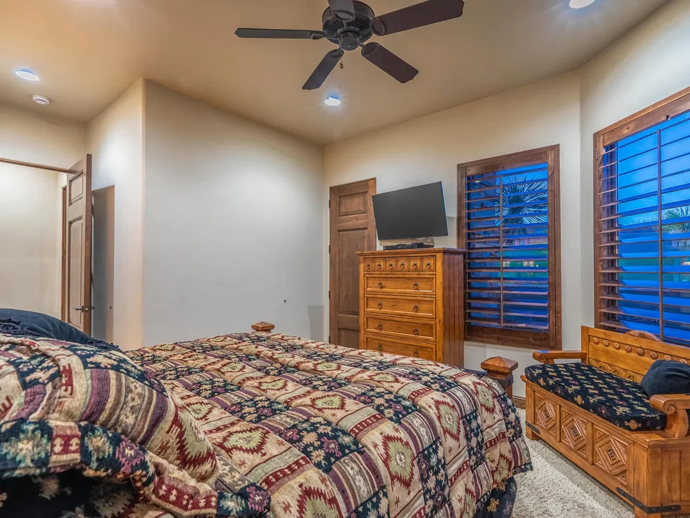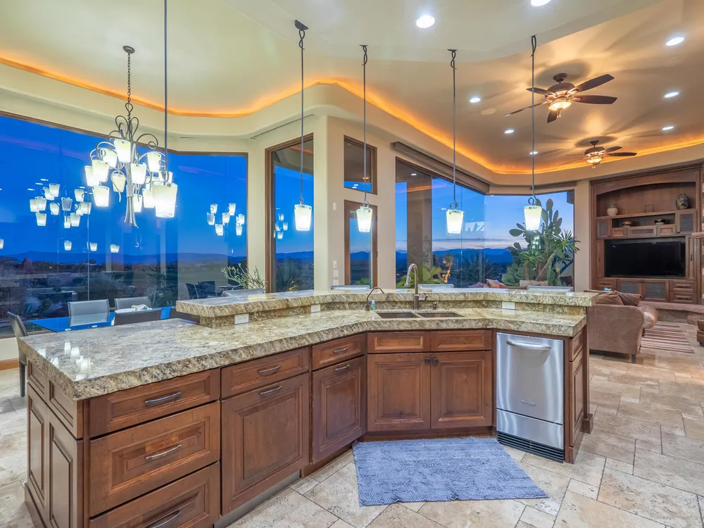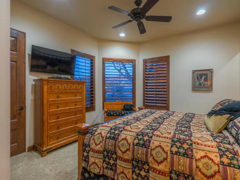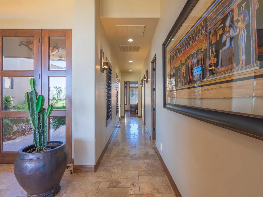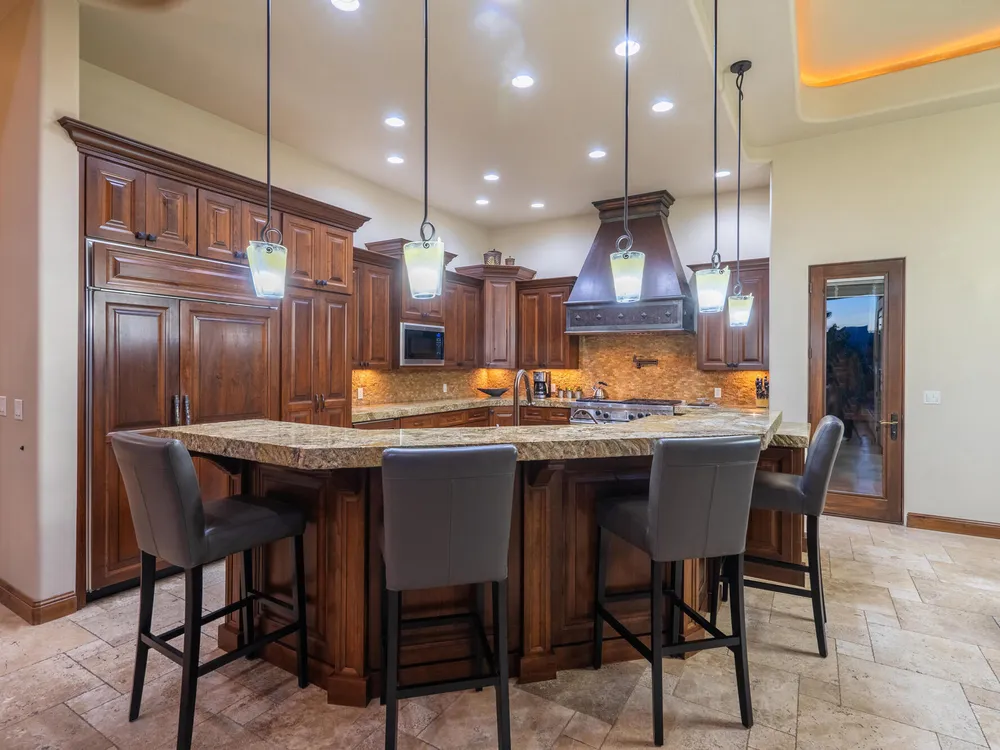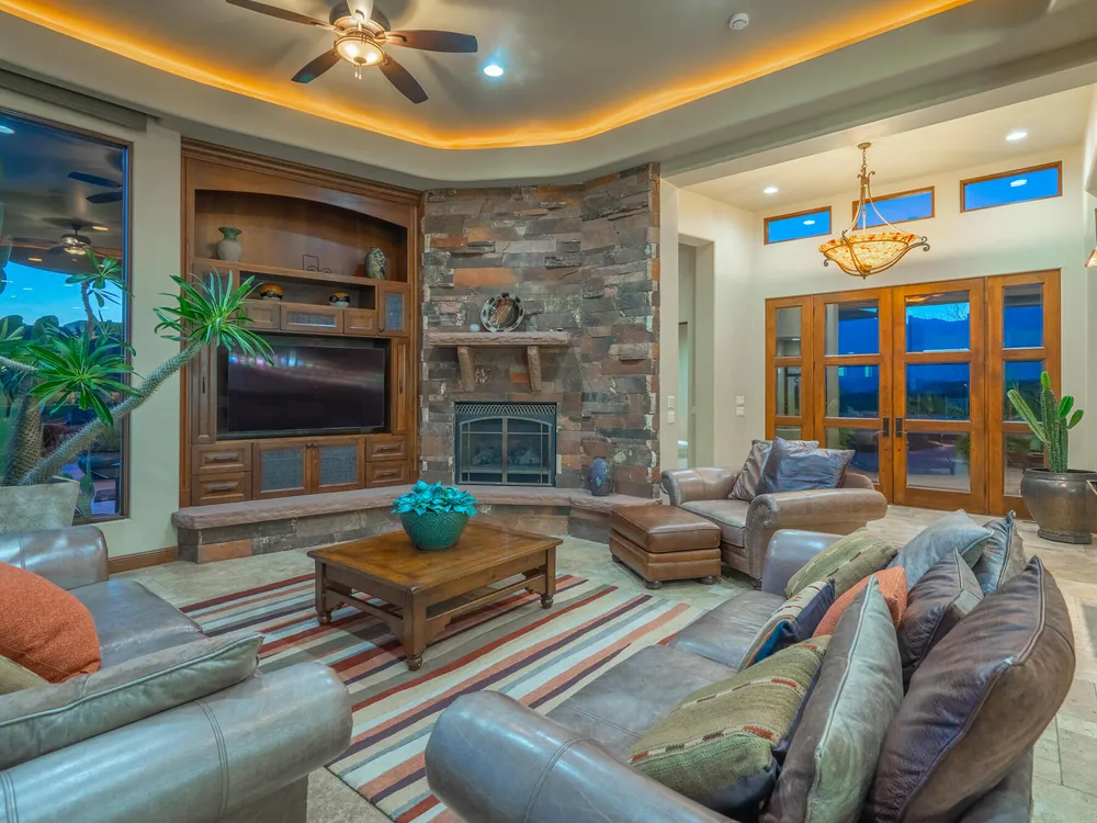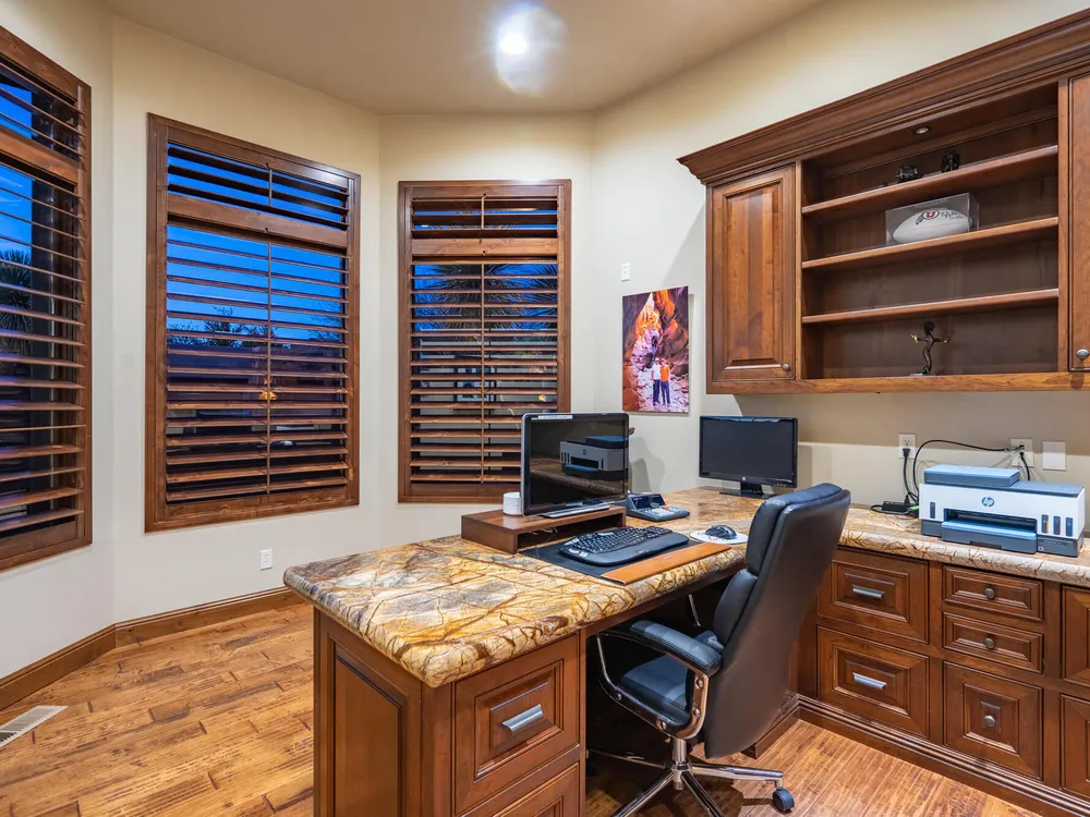 This is definitely a WOW home with STUNNING VIEWS of two fairways on the famous Entrada Golf Course! This home also boasts views of red rocks and Kachina Cliffs, Arizona Strip, Virgin River Gorge, and the western mountains from the main living area, dining area and kitchen, and master suite. Watch the shadows change on Red Mountain spanning around to Johnson Arch and the Scout Caves from the beautiful front courtyard. Amazing glass and wood front doors add to the luxury living and tasteful finishes of the home. As you enter, you will encounter those grand views again and the beauty of the main living area, stacked stone fireplace and entertainment center. The master suite also has floor to ceiling, wood clad, glass windows to enjoy the golf course and red rock views! Enjoy the ambience of stacked stone fireplace in master suite and wonderful master closet with access from garage to master bath and suite. Large master closet, too! The master bath has beautiful granite, large jetted tub and separate triple head shower to enjoy. The guest suites also enjoy privacy and access to the full bath on the east side of the home - separate from the main living area and master. WOW again on the executive office with wood floors and built-in book/trophy shelves with granite tops on lower cabinets. A closet has a safe, which is included in the price of the home. This area could be a wonderful craft room, too. The garage is extra deep and wide - plenty of room for toys and golf cart, along with 3 cars. FURNITURE INCLUDED. YOU HAVE TO EXPERIENCE THIS HOME AND VIEWS! Residents enjoy low HOA fees, which include access to a pool, tennis courts, and front yard maintenance. For those who join the Entrada Country Club, a variety of clubs and activities await, including pickle ball, tennis, swimming, yoga, and Pilates. Whether you're seeking outdoor adventures like hiking or exploring the area's breathtaking beauty, or simply wish to savor a meal at the on-site restaurant, Entrada offers something for everyone. It's a community where you can easily forge new friendships and create lasting memories. All property owners in The Cliffs of Entrada have the option to join the country club, which involves a monthly fee and an annual $800 food expense at the restaurant. Please note that golf membership is available at an additional cost.