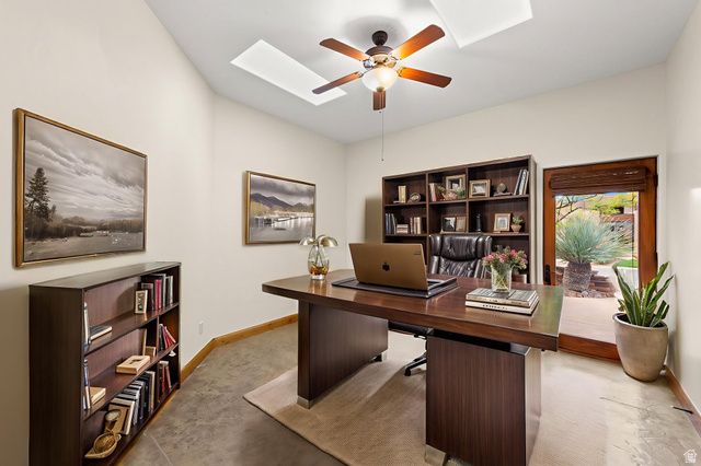 Located in the prestigious gated Cliffs of Snow Canyon community, this stunning home offers all the amenities of Entrada-without the required golf membership. Enjoy a private backyard and open floor plan; perfect for entertaining, featuring a spacious kitchen with abundant cabinetry, Bosch appliances, a Thermador refrigerator, and a high-end Cove dishwasher. The kitchen overlooks the inviting great room with a cozy gas fireplace. Enjoy breakfast at the kitchen table, or entertain dinner guests in the formal dining room. The primary suite is generously sized, while the additional bedrooms boast huge step-in closets. The epoxy-floored garage comes complete with a Bold Series cabinet system. Experience luxury, comfort, and convenience in one of Southern Utah's most sought-after communities!