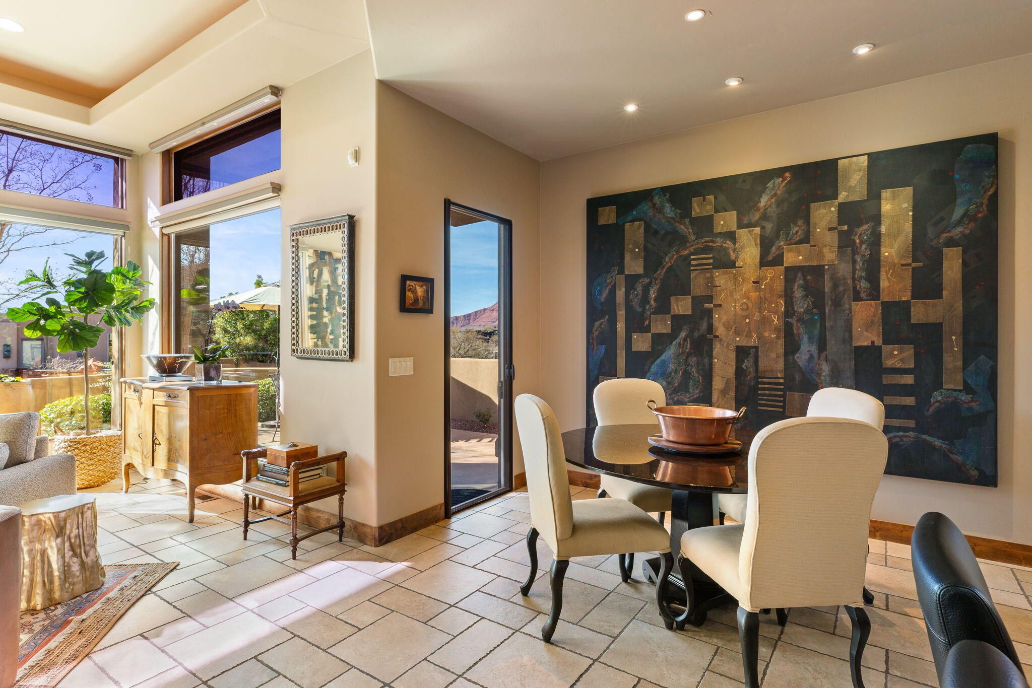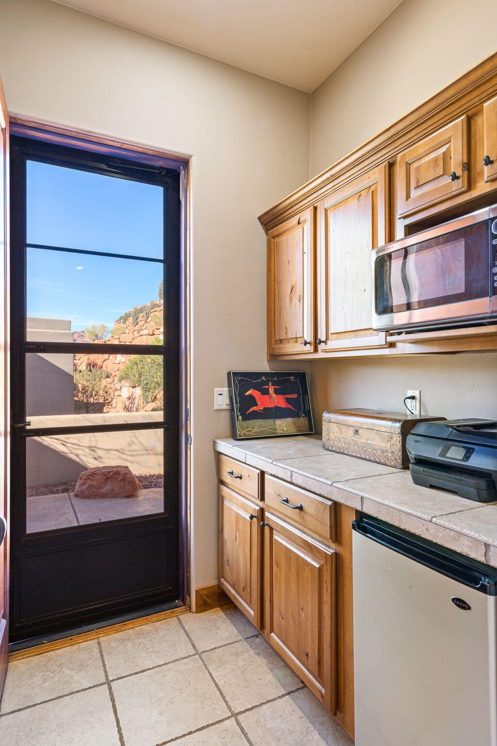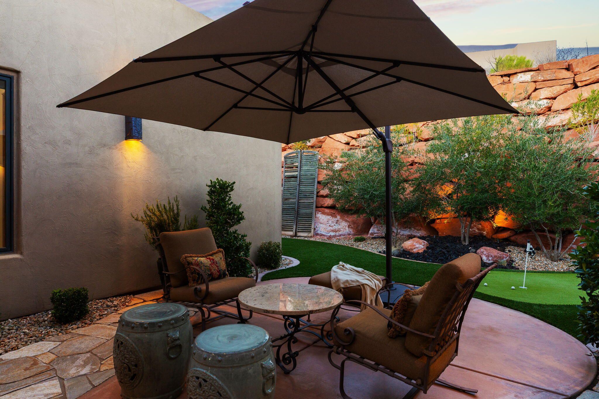 This gorgeous home blends indoors and outdoors with the many different patios around the home from the private backyard retreat to the beautiful views of Red Mtn from the spacious front patio. The inviting kitchen has Wolf appliances with a Sub Zero fridge, a walk in pantry plus views thru all the windows. The Primary suite is spacious with a wonderful bathroom and closet. 2 more guest rooms that share a bathroom invite guest to stay and enjoy the beauty of your home. All the windows throughout the home are double-pane Pella windows, there are invisible screens on all exit doors. The garage has floor to ceiling storage, an epoxy floor. New and updated landscaping outside. Dont' miss seeing this meticulously update and beautifully appointed home. The HOA dues cover the private roads, the front landscaping, the gates and the HOA pool and Jacuzzi, tennis court gym and welcome area. You can purchase a Social Membership to the Entrada Country Club for a one time fee of $15,000 that will give you acess to the Sports/Wellness Center and the Country Club with a monthly fee of $243. You can also purchase a golf membership if you choose for a one time fee of $125,000. Ask Kari Isaksen - Listing Agent for more information