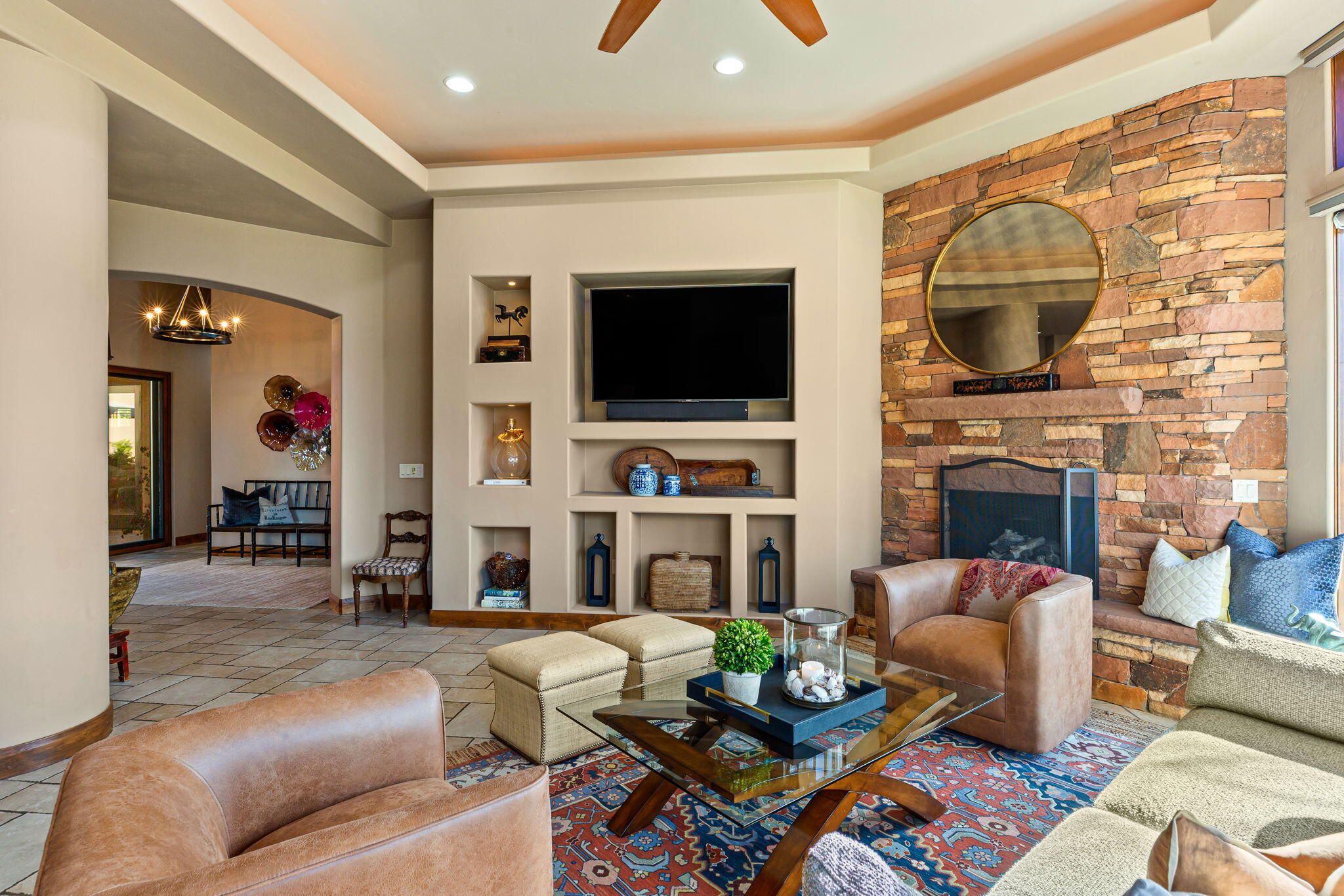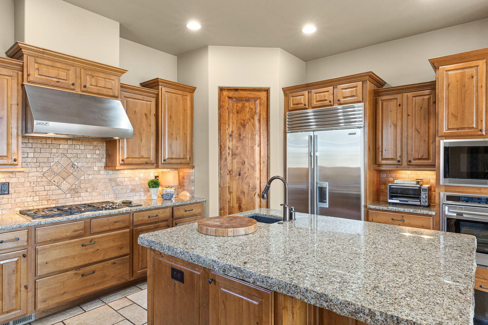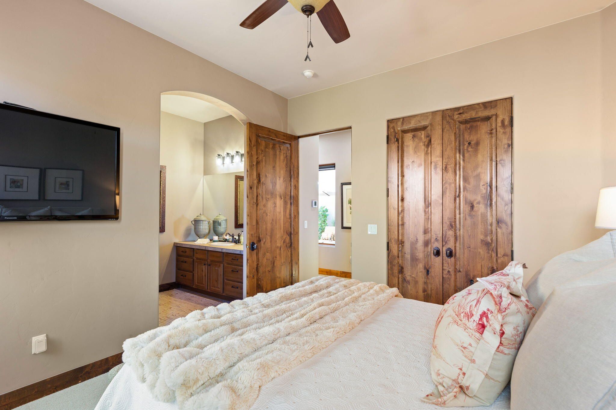 This gorgeous home blends indoors and outdoors with the many different patios around the home from the private backyard retreat to the beautiful views of Red Mtn from the spacious front patio. The inviting kitchen has Wolf appliances with a Sub Zero fridge, a walk in pantry plus views thru all the windows. The Primary suite is spacious with a wonderful bathroom and closet. 2 more guest rooms that share a bathroom invite guest to stay and enjoy the beauty of your home. All the windows throughout the home are double-pane Pella windows, there are invisible screens on all exit doors. The garage has floor to ceiling storage, an epoxy floor. New and updated landscaping outside. Dont' miss seeing this meticulously update and beautifully appointed home. The HOA dues cover the private roads, the front landscaping, the gates and the HOA pool and Jacuzzi, tennis court gym and welcome area. You can purchase a Social Membership to the Entrada Country Club for a one time fee of $15,000 that will give you acess to the Sports/Wellness Center and the Country Club with a monthly fee of $243. You can also purchase a golf membership if you choose for a one time fee of $125,000. Ask Kari Isaksen - Listing Agent for more information