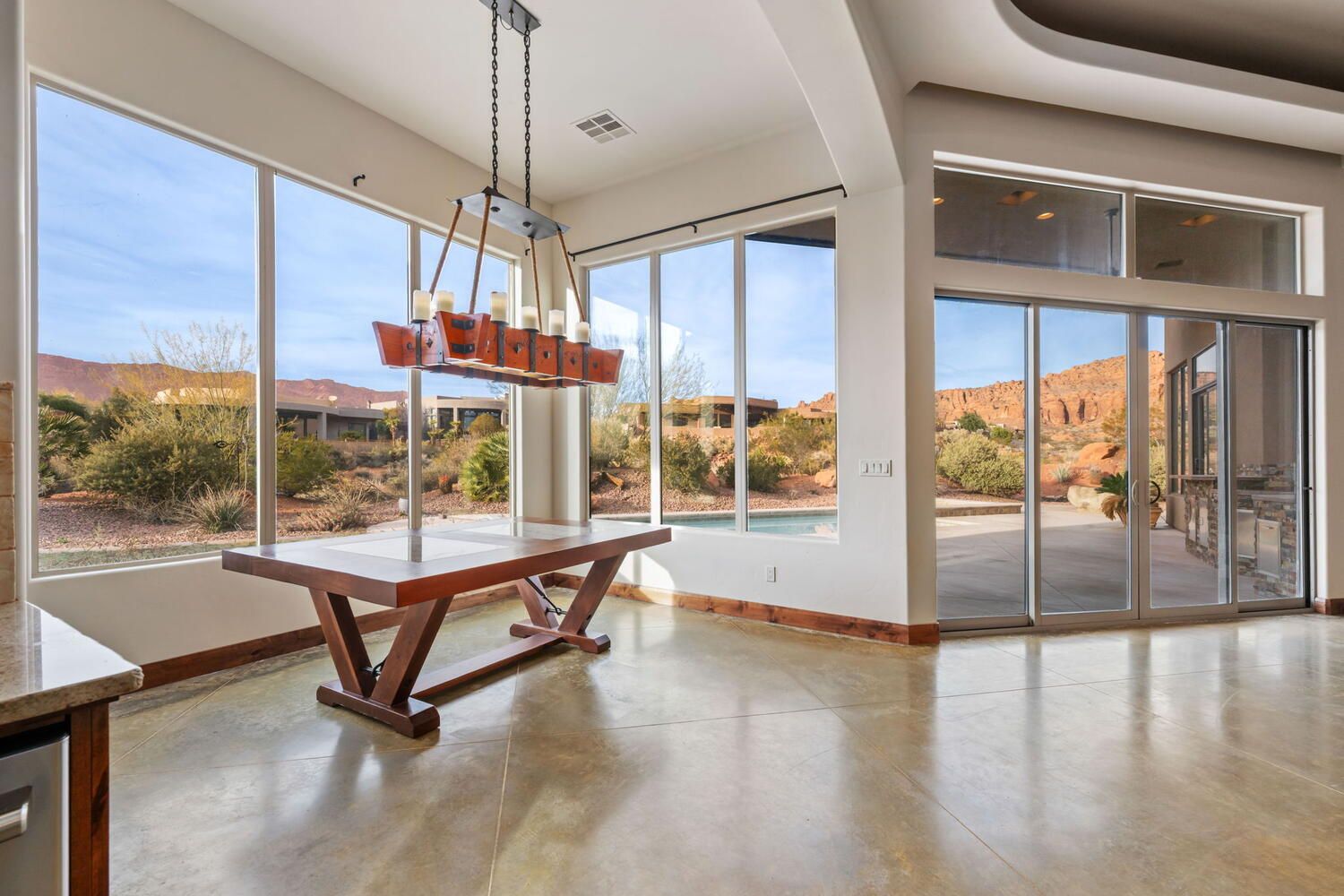 Located in the Cliffs of Entrada, this well-designed 3-bedroom, 4-bath home offers a great combination of comfort, privacy, and views. Set on a .35-acre lot backing to open space, the property enjoys beautiful scenery and a natural buffer from neighboring homes. The layout is functional and inviting, with quality finishes throughout and a detached casita that provides ideal space for guests or a private office. The kitchen features high-end appliances, custom cabinetry, and a large island that works well for everyday living and entertaining. Large windows bring in natural light and help connect the interior to the outdoor setting. Outdoor living is a highlight, with an in-ground pool and hot tub positioned to take in the views and gorgeous surroundings. An oversized 5 car garage adds flexibility for vehicles, storage, or hobbies. A solid, thoughtfully planned home in one of the areas most desirable neighborhoods - offering space, privacy, and a relaxed desert lifestyle.