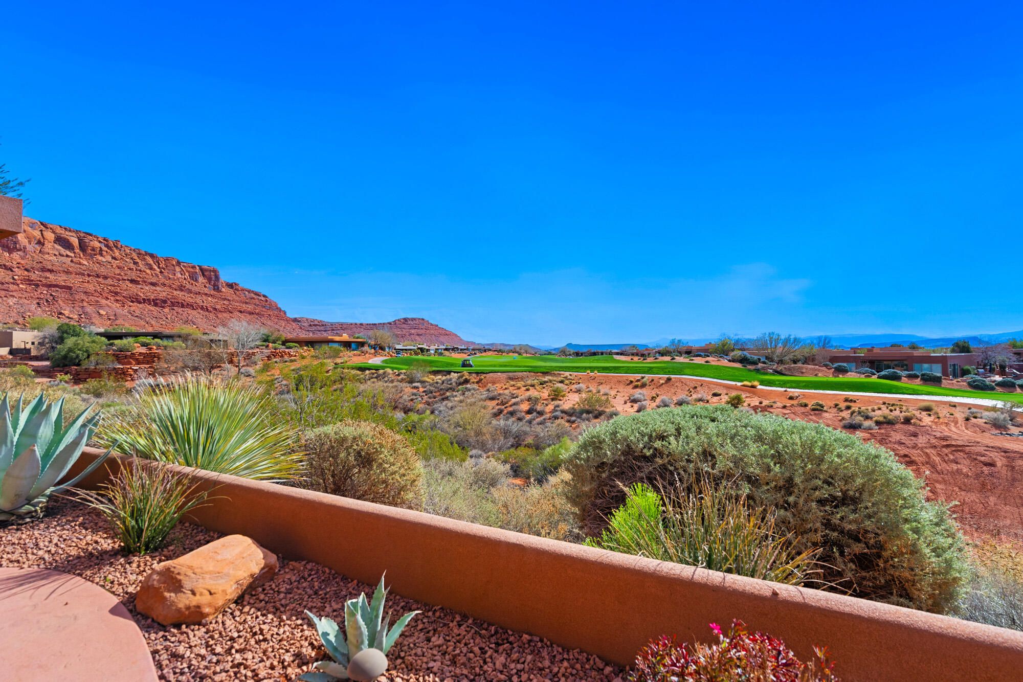 This home has stunning views of Kachina Cliffs, the Entrada Golf Course 7th and 8th fairways. Has common area to give you space and privacy from the golf course, too. These lots paid a higher premium when The Cliffs of Snow Canyon was being developed. Home has large living area, kitchen, bar - plenty of room to entertain and also enjoy the quiet ambience of views, and common area with beautiful landscaping and birds as they migrate in different seasons. This is a must see for anyone wanting to own property in The Cliffs of Snow Canyon! This subdivision has their own amenities: clubhouse, kitchen, entertaining area, exercise room with incredible views, pools, and hot tub. The Cliffs also has lower HOA's and the option to join The Entrada Country Club. Check with Jordan Barnes, Entrada Membership Director. The Cliffs of Snow Canyon has access to hiking trails, The Scout Caves -- just a ton of options with owning a home in this subdivision. It is highly sought after for lower HOA's and option to join The Entrada Country Club.
