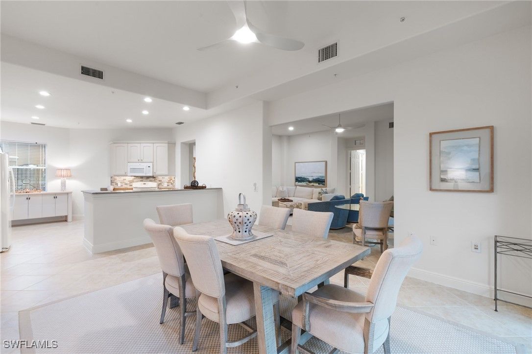 Experience effortless coastal living in this beautiful furnished 3-bedroom, 3-bath coach home. Every inch of the interior has been revitalized with freshly painted walls, trim, and ceilings, creating a bright, airy canvas for your new lifestyle. The thoughtfully curated coastal furnishings pair perfectly with natural driftwood-colored accents. A spacious eat-in kitchen with granite counters and soft taupe backsplash offering gas cooking and plenty of storage. The living room and dining room have large sliding doors to the screened lanai, which boasts a highly desirable southwest exposure. Designed for both luxury and peace of mind, the residence is equipped with full impact-resistant windows and doors, a newer roof, and a tankless water heater. The HOA is in the process of replacing all the sliding doors and windows in Marengo. The generous owner's suite serves as a private sanctuary, complete with two spacious walk-in closets and a spa-like ensuite bath featuring a double vanity, a deep soaking tub, and a separate walk-in shower. Residents of Marengo enjoy an unparalleled array of resort-style amenities at the Fiddler's Creek Club & Spa, including a state-of-the-art fitness center, full-service spa, and multiple dining options ranging from casual poolside fare at The Gator Grille to elegant fine dining at Caxambas. Stay active with a robust social calendar and world-class facilities for tennis, pickleball, and bocce. Ideally located just minutes from the white sand beaches of Marco Island, this coach home offers the perfect balance of serenity and high-end resort living.
