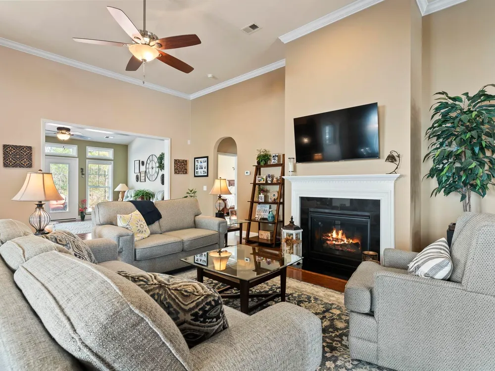 Located in the community of Berkshire Forest, this open-concept ranch style home features tall ceilings that are flooded with natural light and offers additional privacy situated on a wooded lot. As you enter, you are greeted by beautiful wood floors and a tasteful layout that includes a spacious living area with a stunning gas fireplace. To the left, there is a generous office with double doors for privacy. The formal dining area adjacent to the kitchen and living room is great for entertaining and hosting. The eat-in kitchen also has room for barstools along the counter. In addition to the master bedroom which showcases a double trayed ceiling and spacious ensuite bathroom, there are two additional bedrooms at the front of the house separated by a full bathroom. Enjoy the extended sunroom bathed in natural light, along with an extended patio in the back, ideal for summer barbecues and alfresco dining while overlooking the serene tree line. Additional storage is available in the two-car attached garage, which features shelving. The home also comes equipped with a sprinkler system to help keep the landscaping well-manicured. The desirable cul-de-sac location and close proximity to Carolina Forest schools enhance the appeal of this already remarkable property. Be sure to visit the amenity center, which includes a spacious pool, lazy river, tennis court, pickleball court, dog park for owners, and a clubhouse that has a consistent variety of activities. Make sure this one makes the list for your upcoming properties to check out!