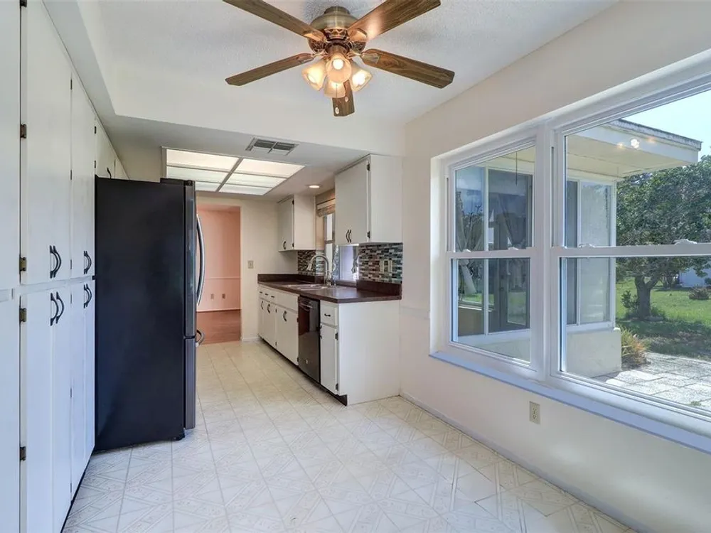 This wonderful three bedroom, two bath and two car garage home is now available! Located on a cul de sac and no flood zone, it’s the perfect place to call home! The floor plan offers a front screened porch, welcoming foyer, large formal living room, adjacent dining area, galley kitchen with breakfast nook, water filtration system, numerous pantry cabinetry, bright enclosed Florida room, primary suite with private bath and walk-in closet, guest bedroom with walk-in closet, guest or hall bath, office or 3rd bedroom with Murphy bed, inside laundry room, and 2-car garage. Freshly painted, wood laminate flooring in living spaces, most windows have been replaced (2019 and 2020), and plantation shutters. Both bathrooms are beautifully remodeled and offering wood cabinetry, quartz countertops, walk in shower with glass doors and new Moen fixtures. AC 2019, main roof 2011, New Panel box 2017, new flat roof (2025). Priced for cosmetic updating! Highland Lakes is a 55+ Retirement Community featuring incredible amenities featuring three 9-hole executive golf courses, a year-round temperature-controlled pool with whirlpool and pavilion area. Water aerobics, floor exercise, yoga and line dancing classes offered. Additional activities include pickleball, bocce, shuffleboard, cornhole, stained glass, ceramics, and a woodworking shop. Social groups are available for exercise, cards, sewing, reading, and photography and more. The Lodge, located on the shores of Lake Tarpon, has a second temperature-controlled pool, ping pong, horseshoe pits and an area with grills and tables for entertaining. Enjoy a resort lifestyle within minutes of world-class Gulf beaches, great restaurants & shopping, exciting pro sports, rich cultural resources, two international airports, and medical facilities.