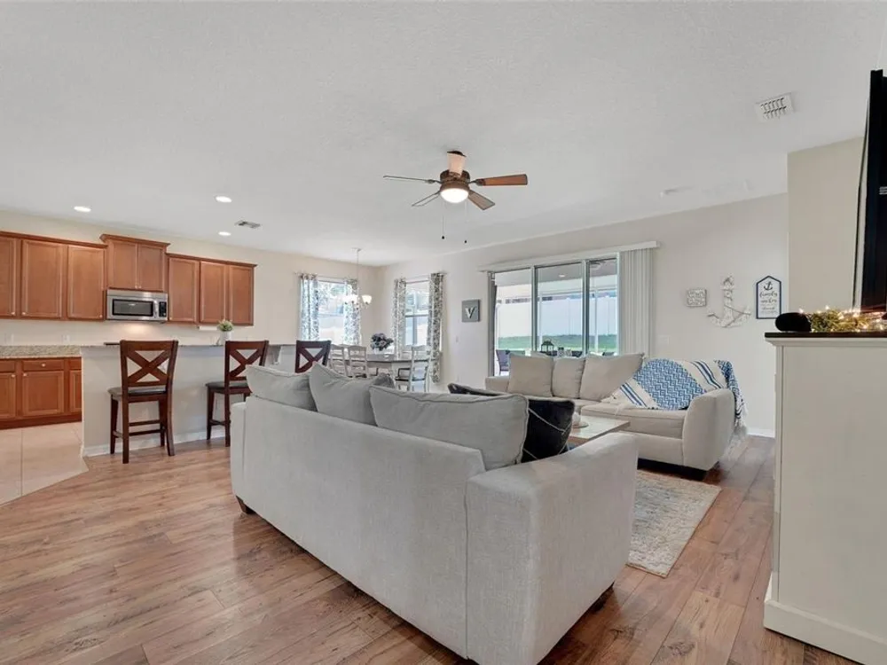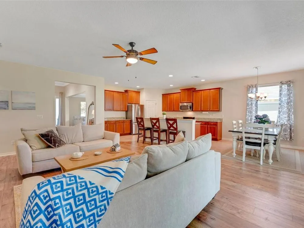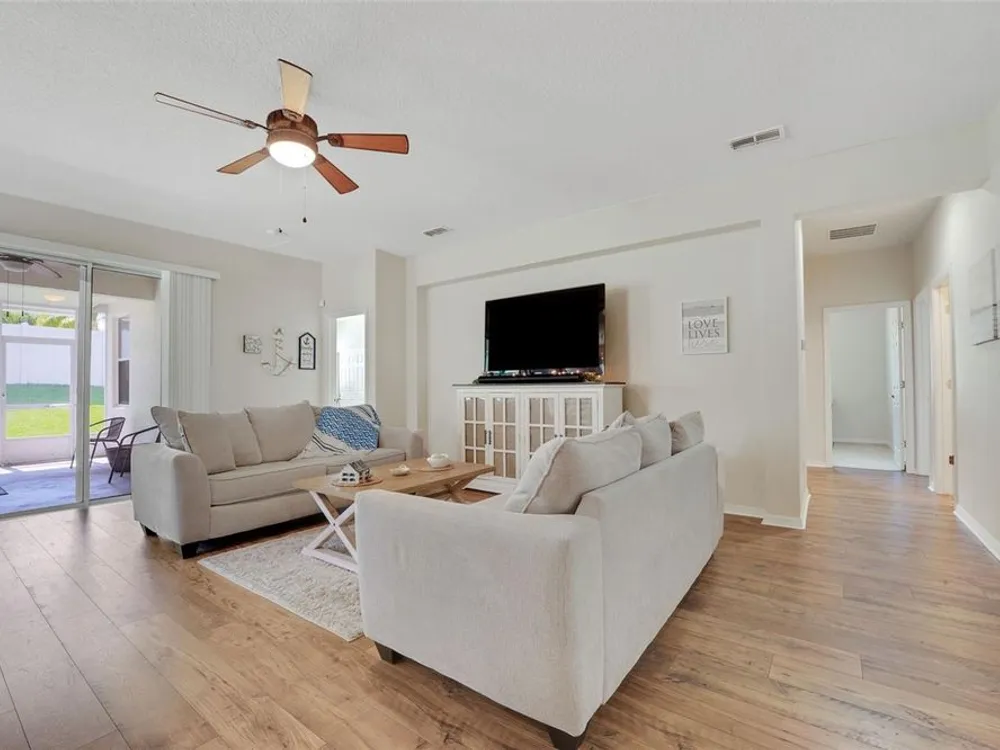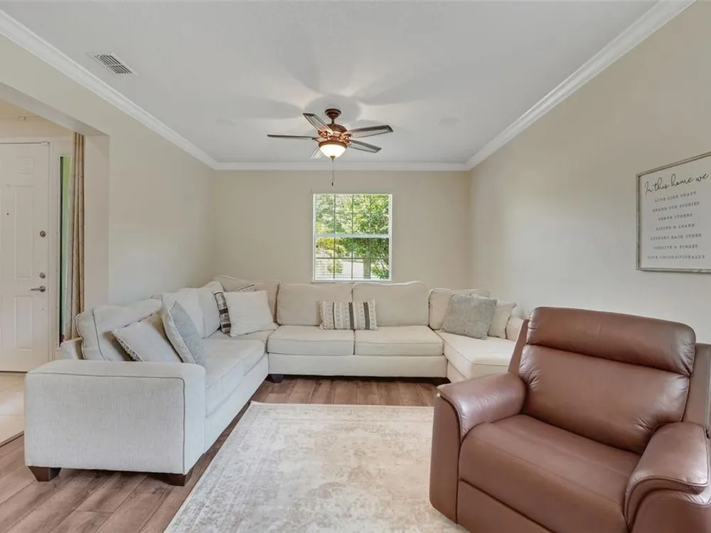 Welcome to 30532 Gidran Terrace, a warm and elegant 4-bedroom, 2-bath single-family home in the desirable gated Sullivan Ranch community of Mount Dora, Florida. This home offers 2,426 sq ft of open-concept living space situated on almost a 1/4 acre lot. The 3-car garage provide ample room for vehicles and storing odds and ins. Upon entering the home, you will find a large foyer area adorned with crown molding and will immediately notice the bright, airy atmosphere. Both the interior and exterior of the home was recently professionally painted making this home truly move-in ready. Just off the entry is a generous bonus room that's an ideal space for a second family room, home office, or formal dining area, offering flexibility to suit your lifestyle. The popular split floor plan was designed with privacy and practicality in mind. The entire HVAC system is brand new, ensuring efficient cooling and heating for years to come during the Florida summers. New luxury vinyl plank (LVP) flooring extends through the main living areas and into the master bedroom, creating a modern look that’s both stylish and easy to maintain. The living room and kitchen areas are precisely located in the center of the home, perfect for family gatherings or entertaining friends. The gourmet kitchen is a chef’s delight, featuring granite countertops, solid 42-inch wood cabinets for abundant storage, and a amazingly large center island perfect for prepping or socializing. Upgraded stainless steel appliances, including a new refrigerator and dishwasher, add elegance, style and convenience. The three additional guest bedrooms recently had brand new carpet installed. The oversized laundry room with built-in cabinets and an industrial-sized sink is just another additional bonus this home offers. The Owner's suite is a tranquil retreat. This spacious bedroom features beautiful flooring, an extra-large walk-in closet to accommodate an extensive wardrobe along with a smaller secondary closet. The en-suite bathroom provides a spa-like experience with dual vanities, a relaxing garden tub, a separate walk-in shower, a private water closet, and a generously sized linen closet. Step outside and enjoy the covered and screen-enclosed patio that invites Florida's weather all year-round. This expansive outdoor living area is perfect for morning coffee, weekend barbecues, or simply unwinding after a long day. The completely fenced backyard offers privacy and plenty of room for outdoor activities or gardening. Sullivan Ranch isn’t just a neighborhood, it’s a lifestyle. Enjoy an array of resort-style amenities, including an impressive 5,000 sq ft clubhouse, a fully equipped fitness center, a Junior Olympic-size swimming pool for laps or lounging, a playground complete with a splash pad, a fenced dog park for your four-legged friends, and miles of lighted walking trails flow throughout this picturesque community. Just minutes from historic downtown Mount Dora, this location allows you to enjoy the quaint shops, cafes, festivals, and lakefront charm of this beloved town. You'll also appreciate quick access to the 429 Expressway, which makes commutes to Orlando and beyond a breeze. Here, you can savor the tranquility of a tight-knit community while staying connected to everything Central Florida has to offer. This stunning home truly offers the best of comfortable living, modern convenience, and a vibrant community lifestyle.
