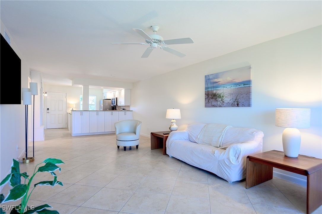 Welcome to your new lake-front home in the Moorings! The Camelot club is perfectly positioned between Park Shore and Olde Naples, West of 41, All ages, No Land-Lease, and is one of the friendliest communities in town! This TURNKEY 2 Bedroom, 2 Bathroom, fully renovated top-floor condo with elevator, complete with in-unit laundry (rare to find!) and new tile flooring is waiting for a new owner. Covered carport parking space and hurricane impact glass all around make this unit stand out amongst the rest. Join the exclusive Moorings Beach Club with your new Moorings address! Open your glass sliders from your enclosed patio with optional plantation shutters, and enjoy the breeze overlooking sparking Lake Suzanne while you sip your morning coffee or have a toast as the sunsets with SW Exposure. Barn door style sliders into the primary bedroom with custom California closets and renovated bathroom featuring light up mirrors. This 3-story building has undergone all surveys and certifications, passed with flying colors with no assessments including a new roof! Perfectly manicured grounds with a gorgeous swimming pool overlooking the lake. Cable, Internet, Water, Sewer, Trash all included your quarterly HOA dues. New owners cannot lease right away when purchasing, which is why the building has so many long term owners and neighbors. You will not find a better deal in this sought after part of beautiful Naples Florida! Owner will provide either a guest bed or office/desk in 2nd bedroom, buyer's choice!