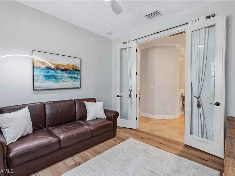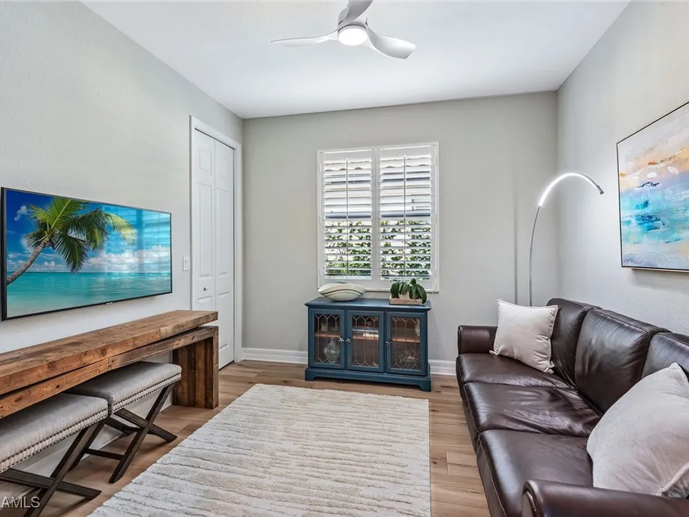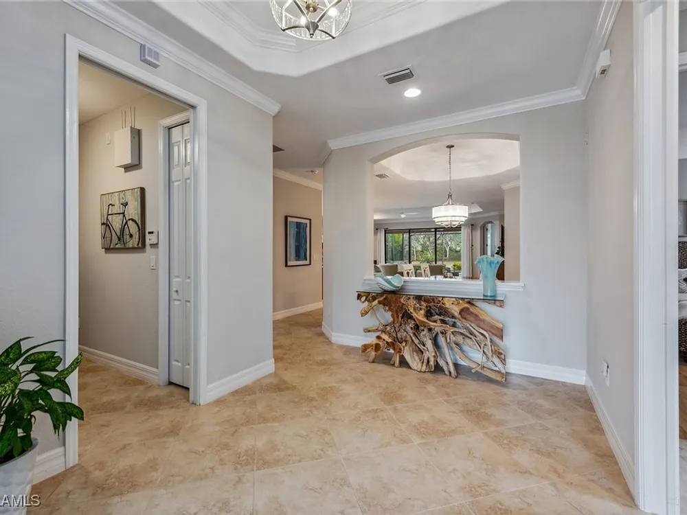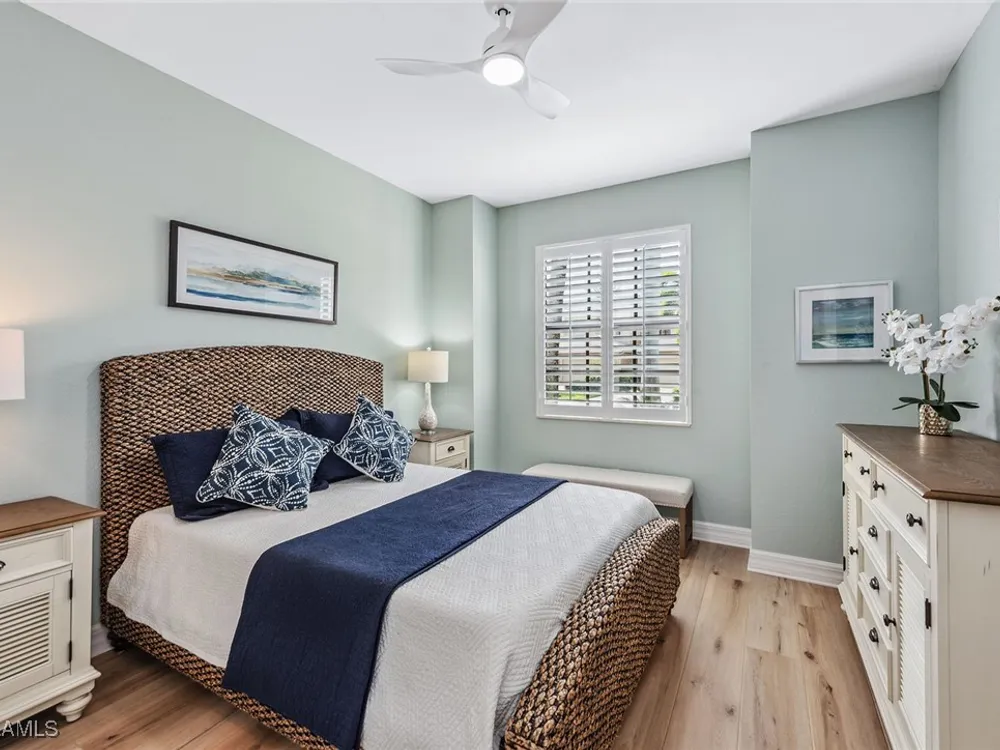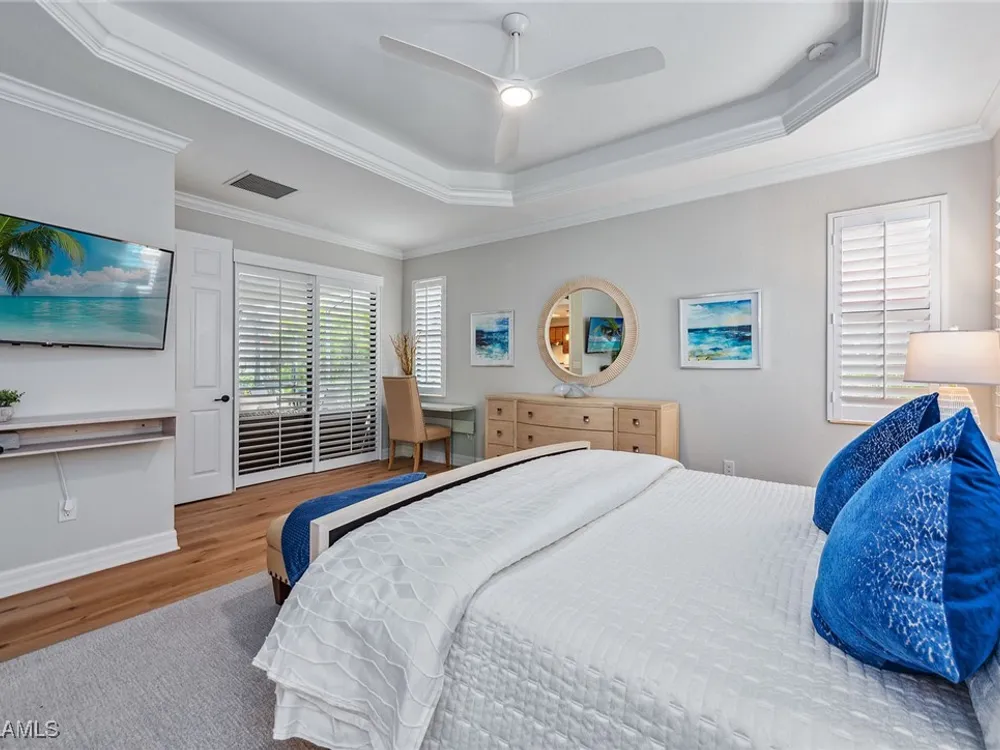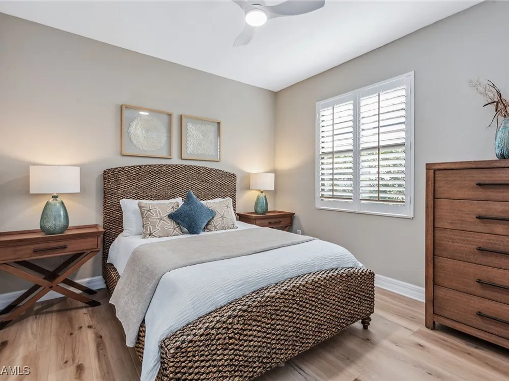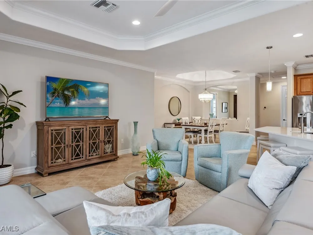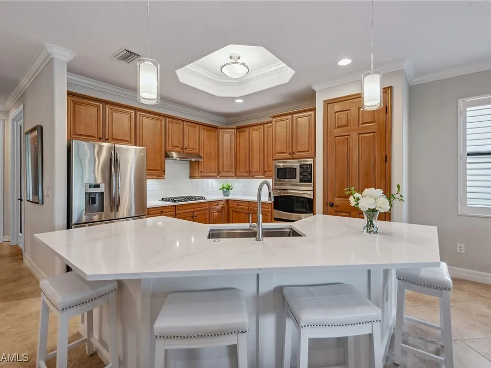 The buyer has the option to have the kitchen cabinets painted white, offering an opportunity to personalize the space to their taste. Dreaming of a stunning single-story Naples home with breathtaking lake views? Set within the prestigious resort-lifestyle gated community of Fiddler’s Creek, this exquisite three-bedroom, two-full-bath residence in the Millbrook neighborhood offers an unparalleled blend of sophistication and comfort. Beautiful exterior stonework, a paver driveway, and vibrant landscaping enhance the impressive curb appeal, while the tile roof adds timeless durability. Includes a new generator in 2023 and impact glass windows and sliders throughout. Pass through the artisanal glass door entry into an expansive foyer, where detailed crown moldings, tray ceilings, and designer lighting create a refined atmosphere that continues throughout the abode. Its split-floor layout seamlessly connects the generous living area to the dining alcove, illuminated by an elegant chandelier, ideal for intimate dinners or festive gatherings. The entertainer’s kitchen is a masterpiece, displaying gleaming quartz countertops, stainless steel appliances, a natural gas cooktop, wall oven and an updated sink. A generous kitchen island with seating and a walk-in pantry makes this space stylish and functional. The wood-floored bedrooms offer a tranquil retreat, with the primary suite featuring twin closets, direct patio access and a spa-like en suite complete with dual sinks, a frameless glass shower, a soaking tub and a private water closet. A set of double glass doors opens to a bonus room, ideal for a remote office, study, personal gym or overnight visitor accommodations. Venture outside to the enclosed saltwater heated pool and spa, where you can unwind while enjoying a serene lake backdrop. An outdoor kitchen makes entertaining effortless, ensuring every get-together is one to remember. Notable highlights include an attached two-car garage, plantation shutters and a laundry room with new washer and new dryer along with a sink and cabinets for convenience. Fiddler’s Creek offers an exclusive resort lifestyle, featuring a top-of-the-line fitness center with trainers, fitness classes, active tennis and pickleball programs, and scenic sidewalks for walking, running and biking. Optional golf, beach and marina memberships let you add more perks, including use of its new golf clubhouse and renovated championship course. Relax at the pristine pool with its slides, waterfalls, hot tub, sauna and steam room, or savor gourmet meals at the elegant restaurant or poolside bar and grill. A robust activity and event calendar ensures there’s exciting interactions to enjoy. Conveniently a short distance from Marco Island and Old Naples, you’ll have easy access to unsullied beaches, marinas, yacht clubs, upscale boutiques, cafes, parks, executive airport and outdoor adventures such as kayaking and paddleboarding. A must-see for those seeking luxury and comfort!