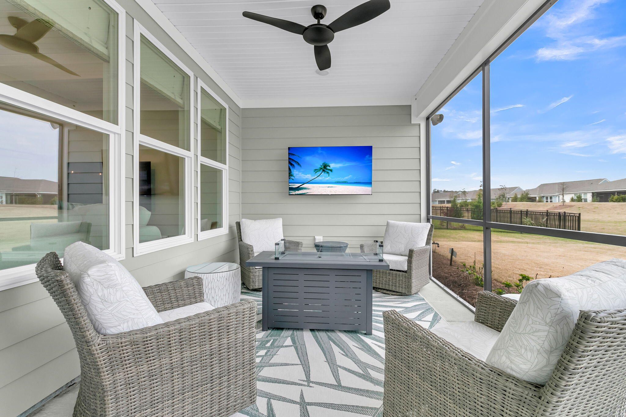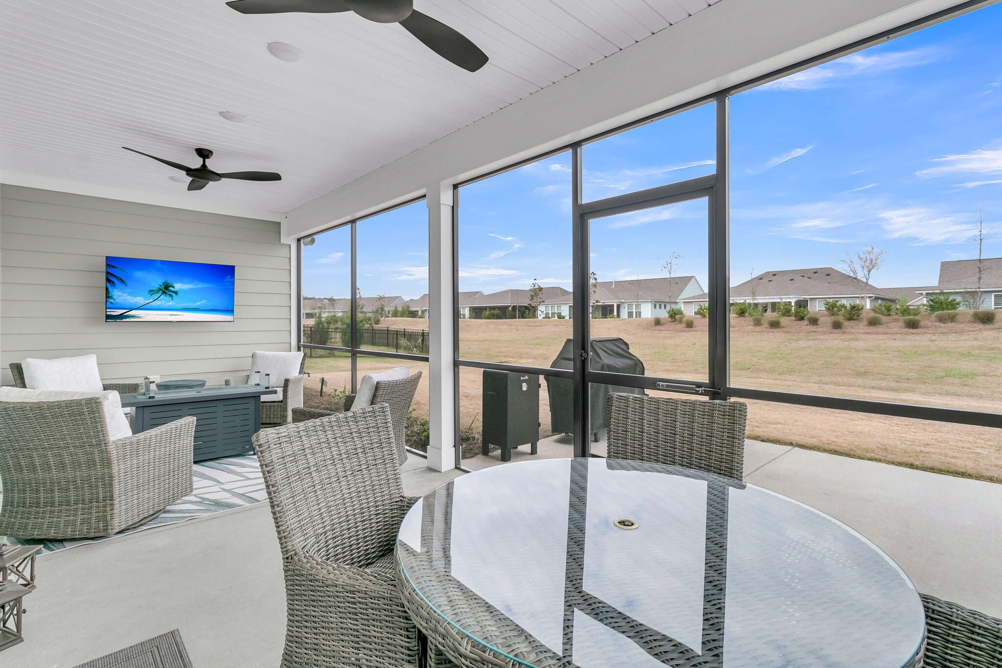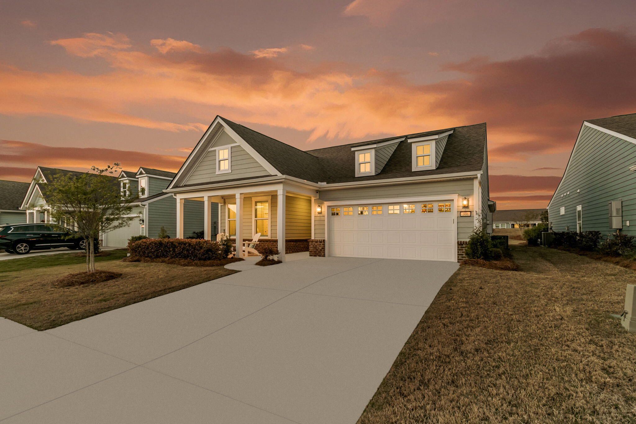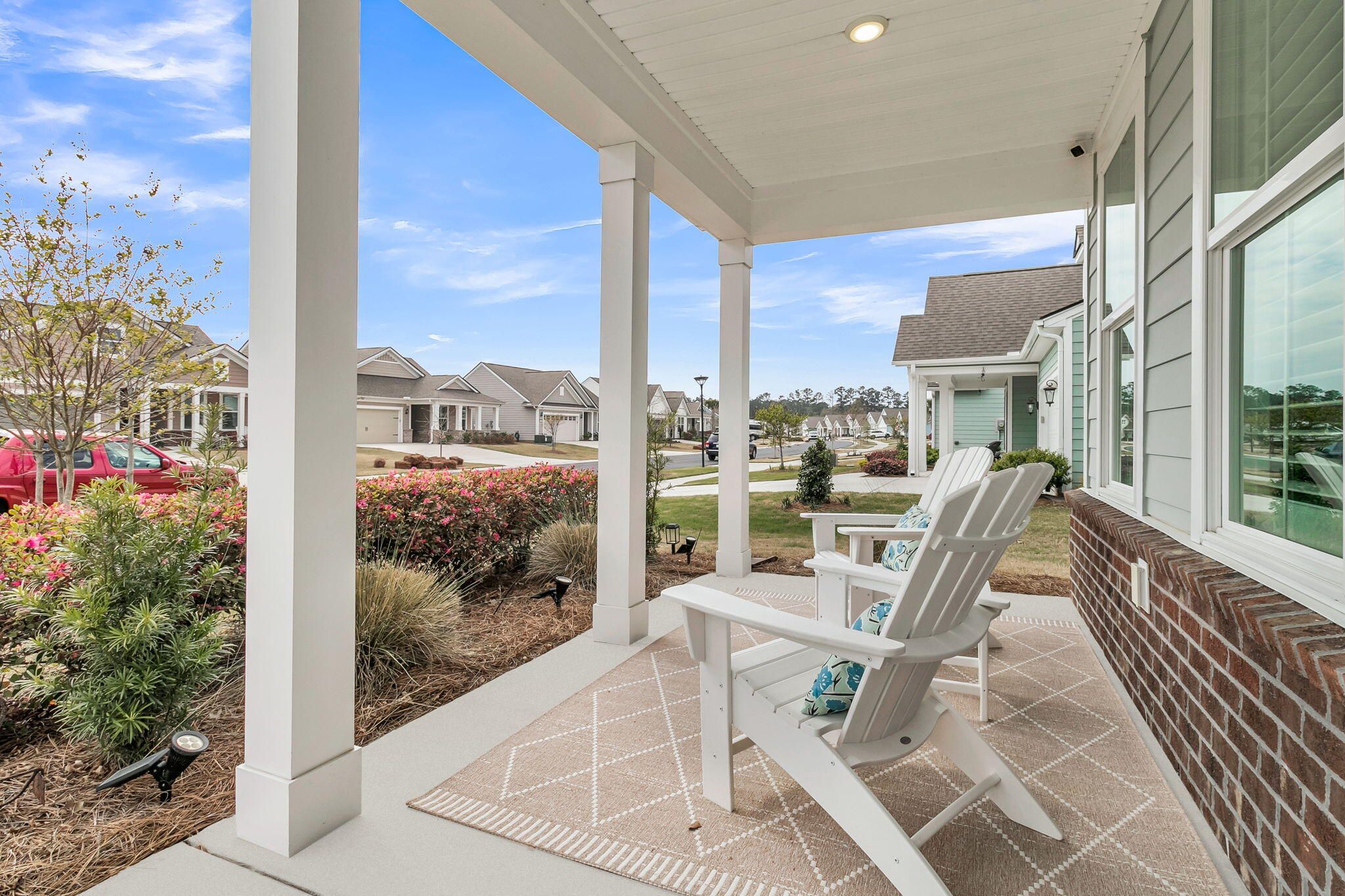 Gorgeous Palmary model just built in 2023 in perfect move-in ready condition! Featuring 2 bedrooms, 2 baths, a flex room/office space, screened-in porch, and extended garage, you'll have all the space you're looking for. A full front porch, Hardiplank siding, and brick accents give an inviting curb appeal. Step inside to find Luxury Vinyl Plank floors extending throughout the living areas and bedrooms - NO CARPET! Craftsman trim, custom moldings, plantation shutters, and woven grass shades provide touches of elegance at every turn. The island kitchen offers white and burlap finished cabinetry with soft closing doors & drawers and double tray pull out storage, KitchenAid stainless steel built in appliances with a five-burner gas cooktop, built-in wall oven & microwave, hooded vent, and.....included Bosch refrigerator, a Reverse Osmosis water filtration system, designer cabinet hardware, kitchen faucet, and soap dispenser, under-cabinet and custom pendant lighting, and large walk-in pantry. The gathering room and cafe sit underneath a beautiful tray ceiling with LED lighting and designer fan and chandelier. Step outside to the elongated screened-in porch with dual fans and separate patio space overlooking a private wooded berm. You'll enjoy ample space from neighbors with the 20' easement on the left side of the home. Back inside, the Owner's Suite offers a tray ceiling and ensuite with with 12" x 24" tile floors, a double sink vanity with burlap cabinetry, Cambria quartz countertops, and rectangular sinks, a luxury spa shower with tile walls and floors, built-in bench, and separate handheld shower head, and a large walk-in closet. A second bedroom and full bath sit down their own hallway, providing ample privacy for owners and visitors alike. The flex room can be used as an office, den, or spare room for guests. Additional home appointments include painted walls and ceilings with quality Sherwin Williams and Benjamin Moore paint, wallpaper accent in the foyer, a custom drop zone to store of all of life's 'extras,' and laundry room with built-in cabinetry and laundry sink with quarts top. Don't miss the garage space - with its 4' additional length, painted walls, and attic storage above. Be part of the Charleston area's premier 55+ lifestyle community, Del Webb Nexton. Just a short golf cart ride to two grocery stores, restaurants, Pickleball bar, shopping, and so much more! Only five minutes to charming historic downtown Summerville and 25 minutes to Charleston! A 27,000 square foot amenities center with indoor and outdoor pools, sport courts, and fitness center, plus a full-time lifestyle director with clubs and planned community events. Additional community amenities are being added and will include a new 30,000 sf gymnasium and event hub with a built-in stage to host large-scale events like community parties and concerts, an indoor sport courts, and walking track. A poolside bar & grill will be added as well as additional outdoor pickleball courts. This community has it all! Skip the hassle of building and the additional move-in costs, this home is turn key with refrigerator, window treatments, ceiling fans, and attached lighting included. Please book your showing today!
