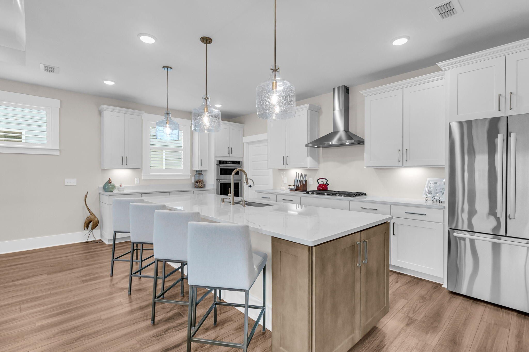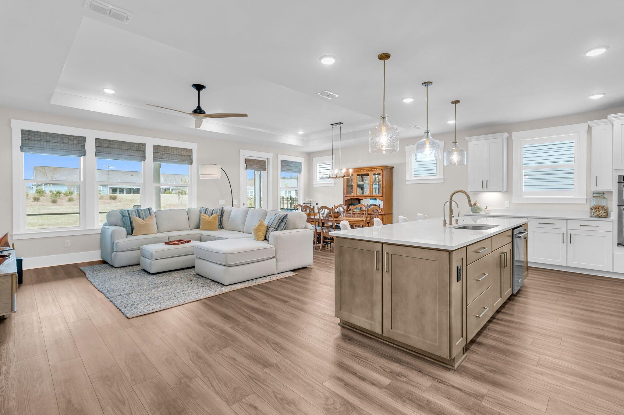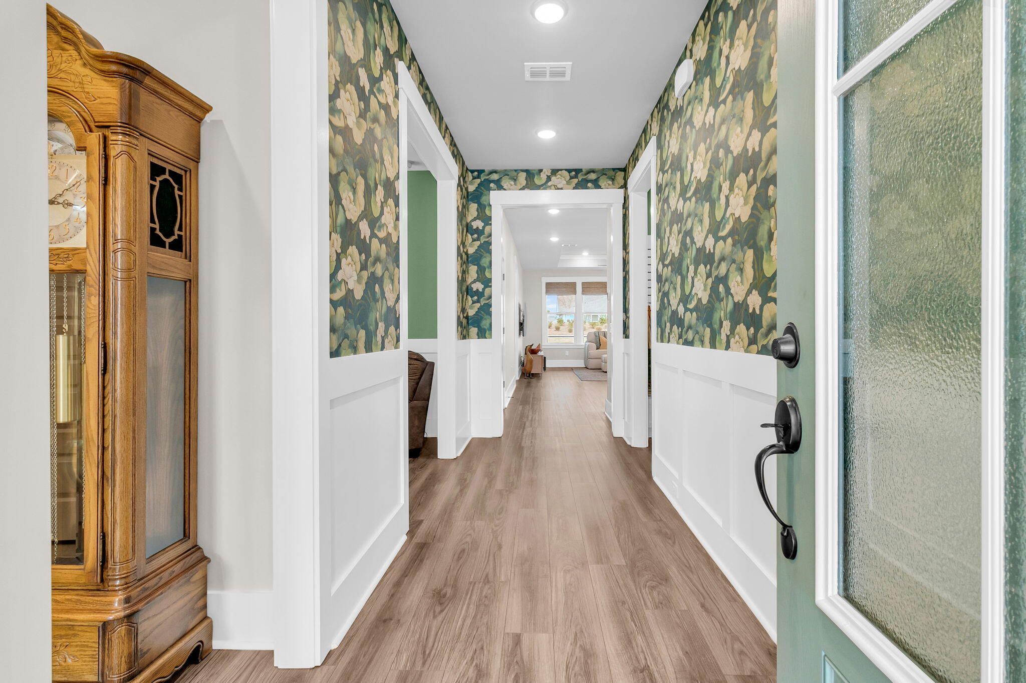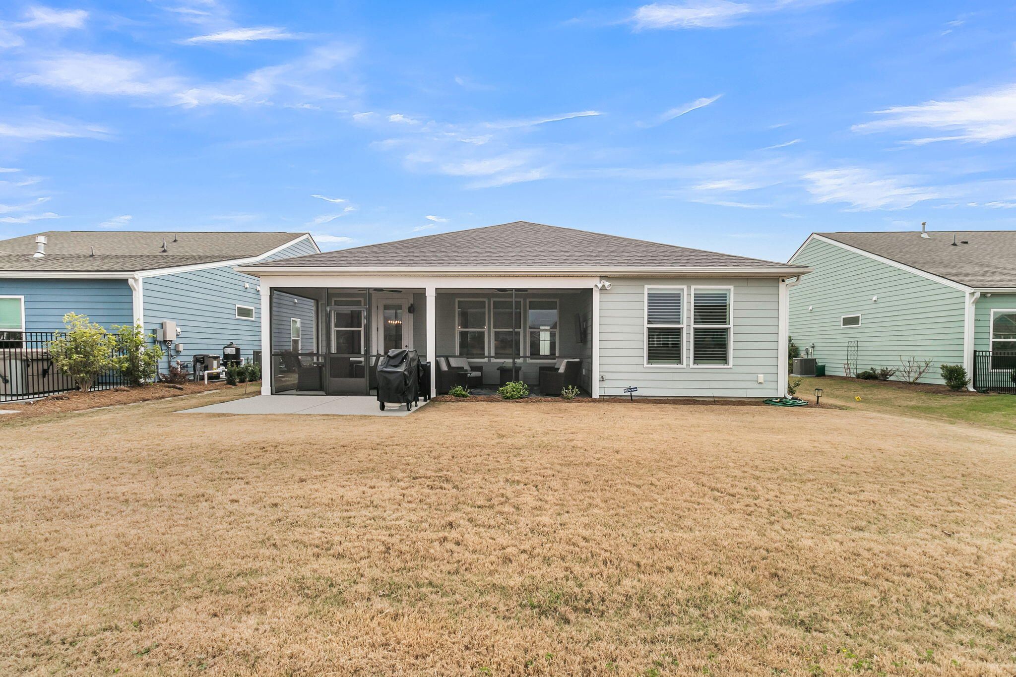 Gorgeous Palmary model just built in 2023 in perfect move-in ready condition! Featuring 2 bedrooms, 2 baths, a flex room/office space, screened-in porch, and extended garage, you'll have all the space you're looking for. A full front porch, Hardiplank siding, and brick accents give an inviting curb appeal. Step inside to find Luxury Vinyl Plank floors extending throughout the living areas and bedrooms - NO CARPET! Craftsman trim, custom moldings, plantation shutters, and woven grass shades provide touches of elegance at every turn. The island kitchen offers white and burlap finished cabinetry with soft closing doors & drawers and double tray pull out storage, KitchenAid stainless steel built in appliances with a five-burner gas cooktop, built-in wall oven & microwave, hooded vent, and.....included Bosch refrigerator, a Reverse Osmosis water filtration system, designer cabinet hardware, kitchen faucet, and soap dispenser, under-cabinet and custom pendant lighting, and large walk-in pantry. The gathering room and cafe sit underneath a beautiful tray ceiling with LED lighting and designer fan and chandelier. Step outside to the elongated screened-in porch with dual fans and separate patio space overlooking a private wooded berm. You'll enjoy ample space from neighbors with the 20' easement on the left side of the home. Back inside, the Owner's Suite offers a tray ceiling and ensuite with with 12" x 24" tile floors, a double sink vanity with burlap cabinetry, Cambria quartz countertops, and rectangular sinks, a luxury spa shower with tile walls and floors, built-in bench, and separate handheld shower head, and a large walk-in closet. A second bedroom and full bath sit down their own hallway, providing ample privacy for owners and visitors alike. The flex room can be used as an office, den, or spare room for guests. Additional home appointments include painted walls and ceilings with quality Sherwin Williams and Benjamin Moore paint, wallpaper accent in the foyer, a custom drop zone to store of all of life's 'extras,' and laundry room with built-in cabinetry and laundry sink with quarts top. Don't miss the garage space - with its 4' additional length, painted walls, and attic storage above. Be part of the Charleston area's premier 55+ lifestyle community, Del Webb Nexton. Just a short golf cart ride to two grocery stores, restaurants, Pickleball bar, shopping, and so much more! Only five minutes to charming historic downtown Summerville and 25 minutes to Charleston! A 27,000 square foot amenities center with indoor and outdoor pools, sport courts, and fitness center, plus a full-time lifestyle director with clubs and planned community events. Additional community amenities are being added and will include a new 30,000 sf gymnasium and event hub with a built-in stage to host large-scale events like community parties and concerts, an indoor sport courts, and walking track. A poolside bar & grill will be added as well as additional outdoor pickleball courts. This community has it all! Skip the hassle of building and the additional move-in costs, this home is turn key with refrigerator, window treatments, ceiling fans, and attached lighting included. Please book your showing today!