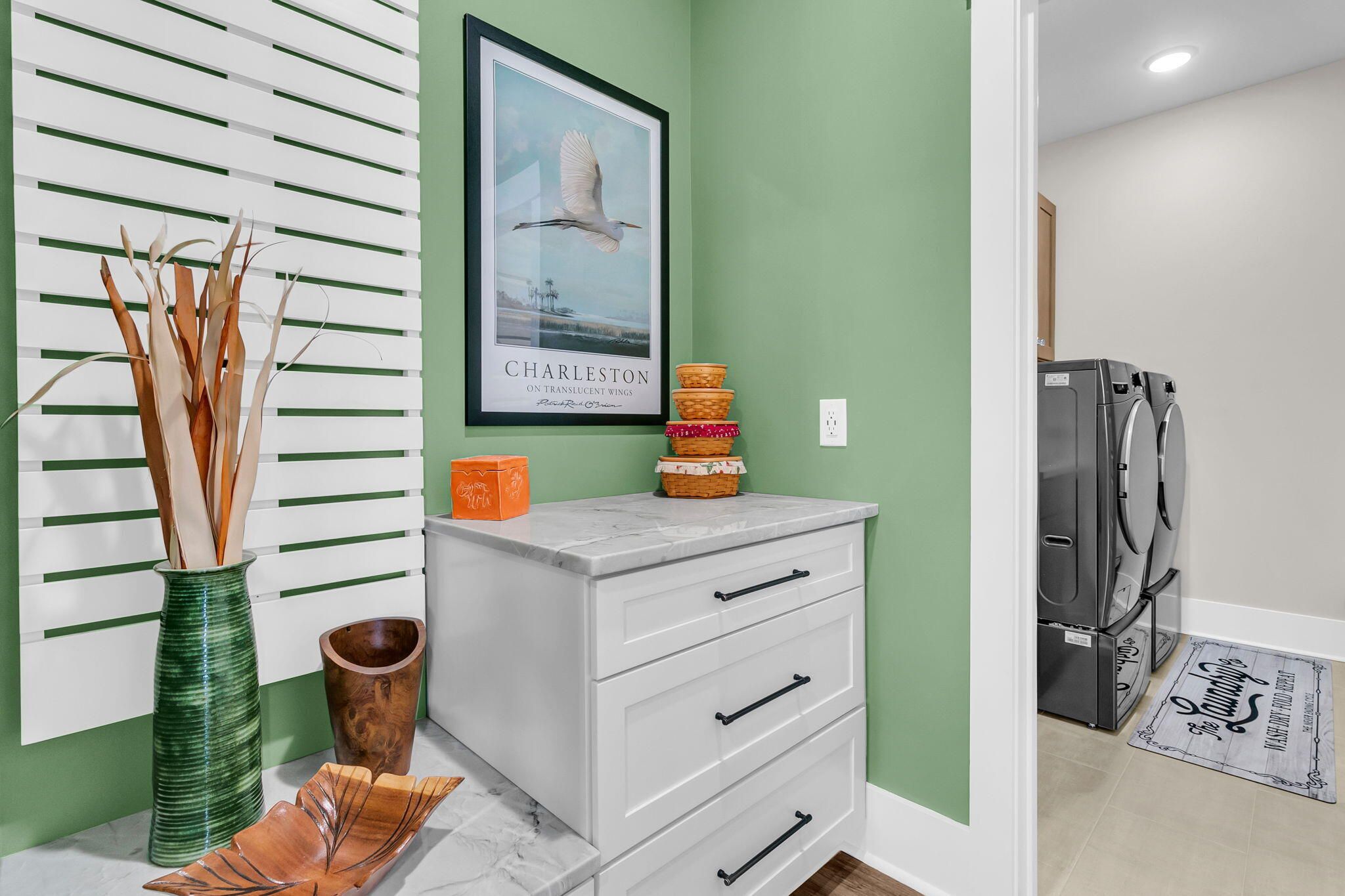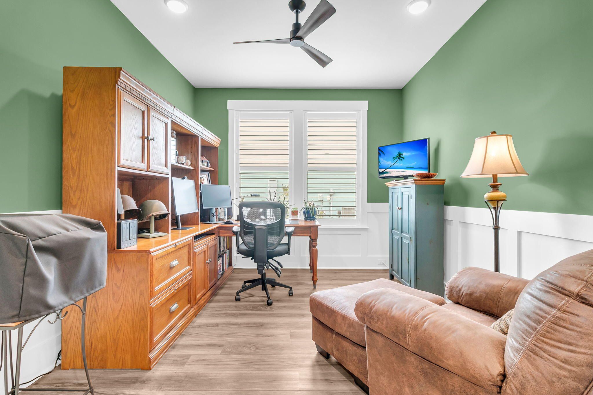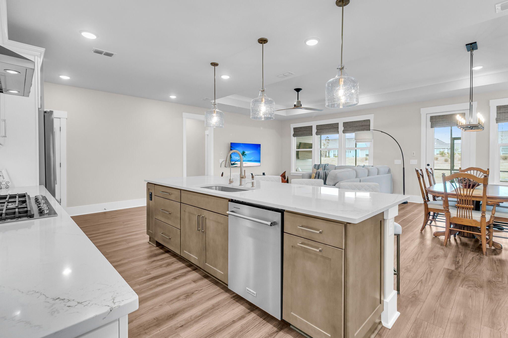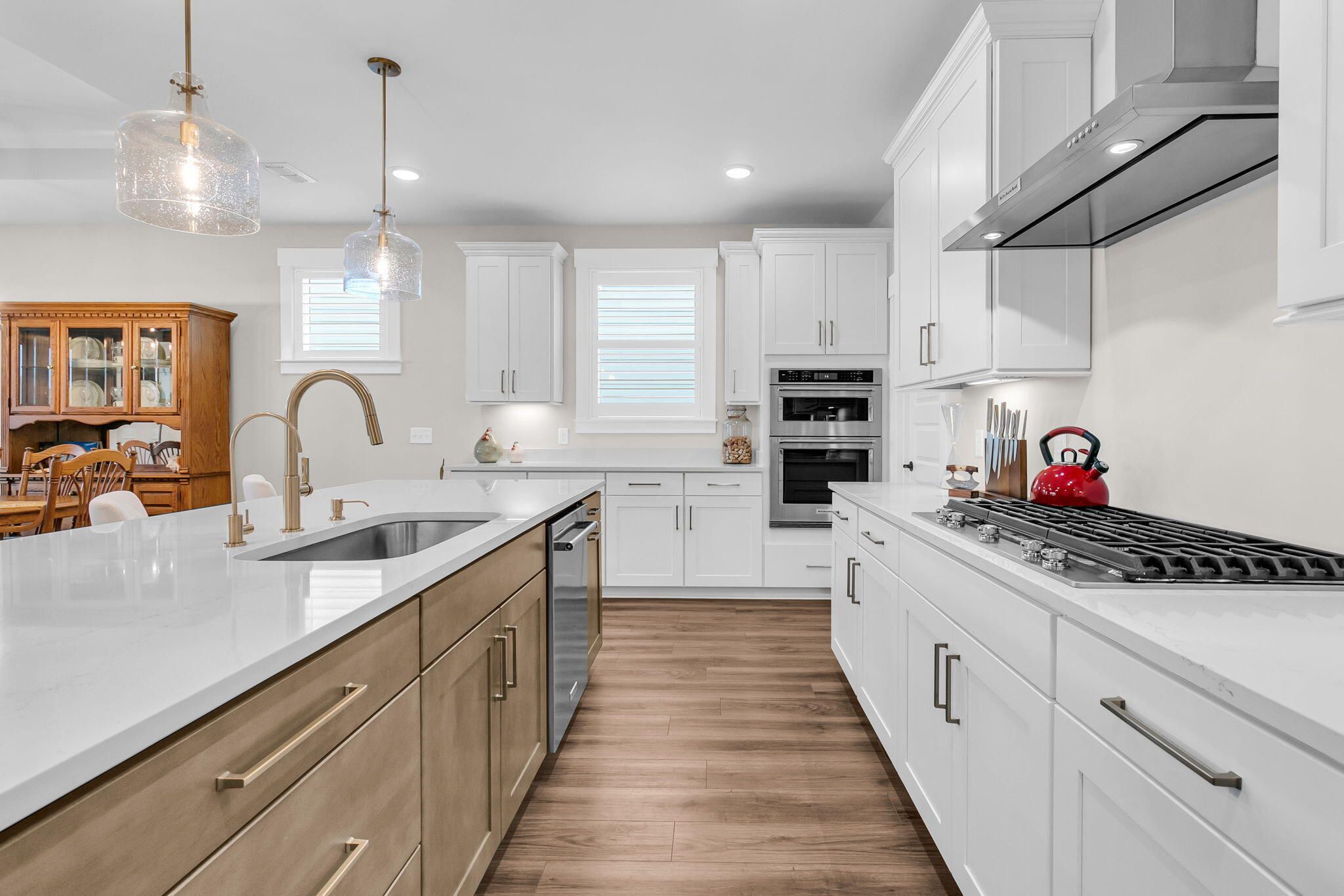 Gorgeous Palmary model just built in 2023 in perfect move-in ready condition! Featuring 2 bedrooms, 2 baths, a flex room/office space, screened-in porch, and extended garage, you'll have all the space you're looking for. A full front porch, Hardiplank siding, and brick accents give an inviting curb appeal. Step inside to find Luxury Vinyl Plank floors extending throughout the living areas and bedrooms - NO CARPET! Craftsman trim, custom moldings, plantation shutters, and woven grass shades provide touches of elegance at every turn. The island kitchen offers white and burlap finished cabinetry with soft closing doors & drawers and double tray pull out storage, KitchenAid stainless steel built in appliances with a five-burner gas cooktop, built-in wall oven & microwave, hooded vent, and.....included Bosch refrigerator, a Reverse Osmosis water filtration system, designer cabinet hardware, kitchen faucet, and soap dispenser, under-cabinet and custom pendant lighting, and large walk-in pantry. The gathering room and cafe sit underneath a beautiful tray ceiling with LED lighting and designer fan and chandelier. Step outside to the elongated screened-in porch with dual fans and separate patio space overlooking a private wooded berm. You'll enjoy ample space from neighbors with the 20' easement on the left side of the home. Back inside, the Owner's Suite offers a tray ceiling and ensuite with with 12" x 24" tile floors, a double sink vanity with burlap cabinetry, Cambria quartz countertops, and rectangular sinks, a luxury spa shower with tile walls and floors, built-in bench, and separate handheld shower head, and a large walk-in closet. A second bedroom and full bath sit down their own hallway, providing ample privacy for owners and visitors alike. The flex room can be used as an office, den, or spare room for guests. Additional home appointments include painted walls and ceilings with quality Sherwin Williams and Benjamin Moore paint, wallpaper accent in the foyer, a custom drop zone to store of all of life's 'extras,' and laundry room with built-in cabinetry and laundry sink with quarts top. Don't miss the garage space - with its 4' additional length, painted walls, and attic storage above. Be part of the Charleston area's premier 55+ lifestyle community, Del Webb Nexton. Just a short golf cart ride to two grocery stores, restaurants, Pickleball bar, shopping, and so much more! Only five minutes to charming historic downtown Summerville and 25 minutes to Charleston! A 27,000 square foot amenities center with indoor and outdoor pools, sport courts, and fitness center, plus a full-time lifestyle director with clubs and planned community events. Additional community amenities are being added and will include a new 30,000 sf gymnasium and event hub with a built-in stage to host large-scale events like community parties and concerts, an indoor sport courts, and walking track. A poolside bar & grill will be added as well as additional outdoor pickleball courts. This community has it all! Skip the hassle of building and the additional move-in costs, this home is turn key with refrigerator, window treatments, ceiling fans, and attached lighting included. Please book your showing today!