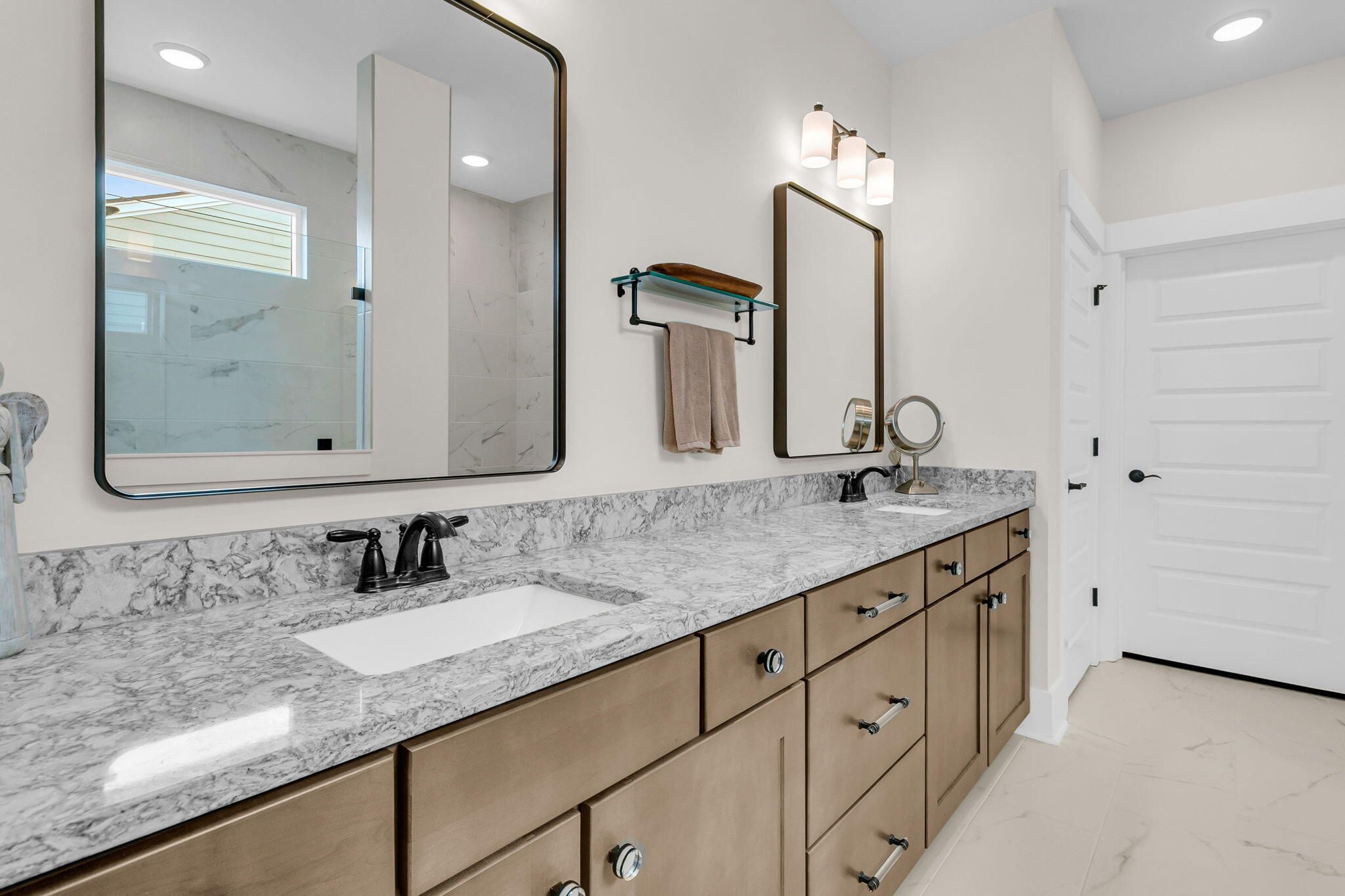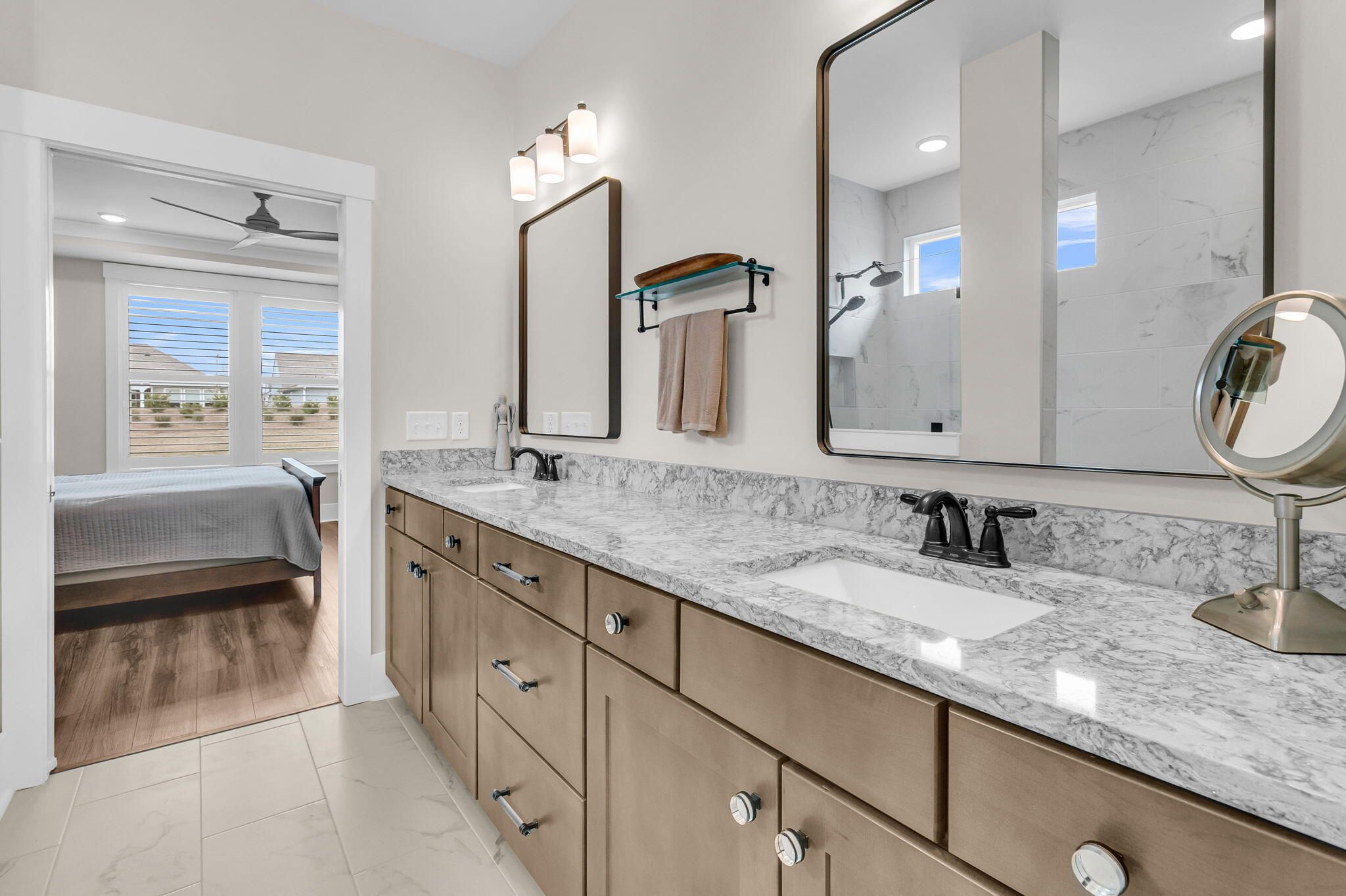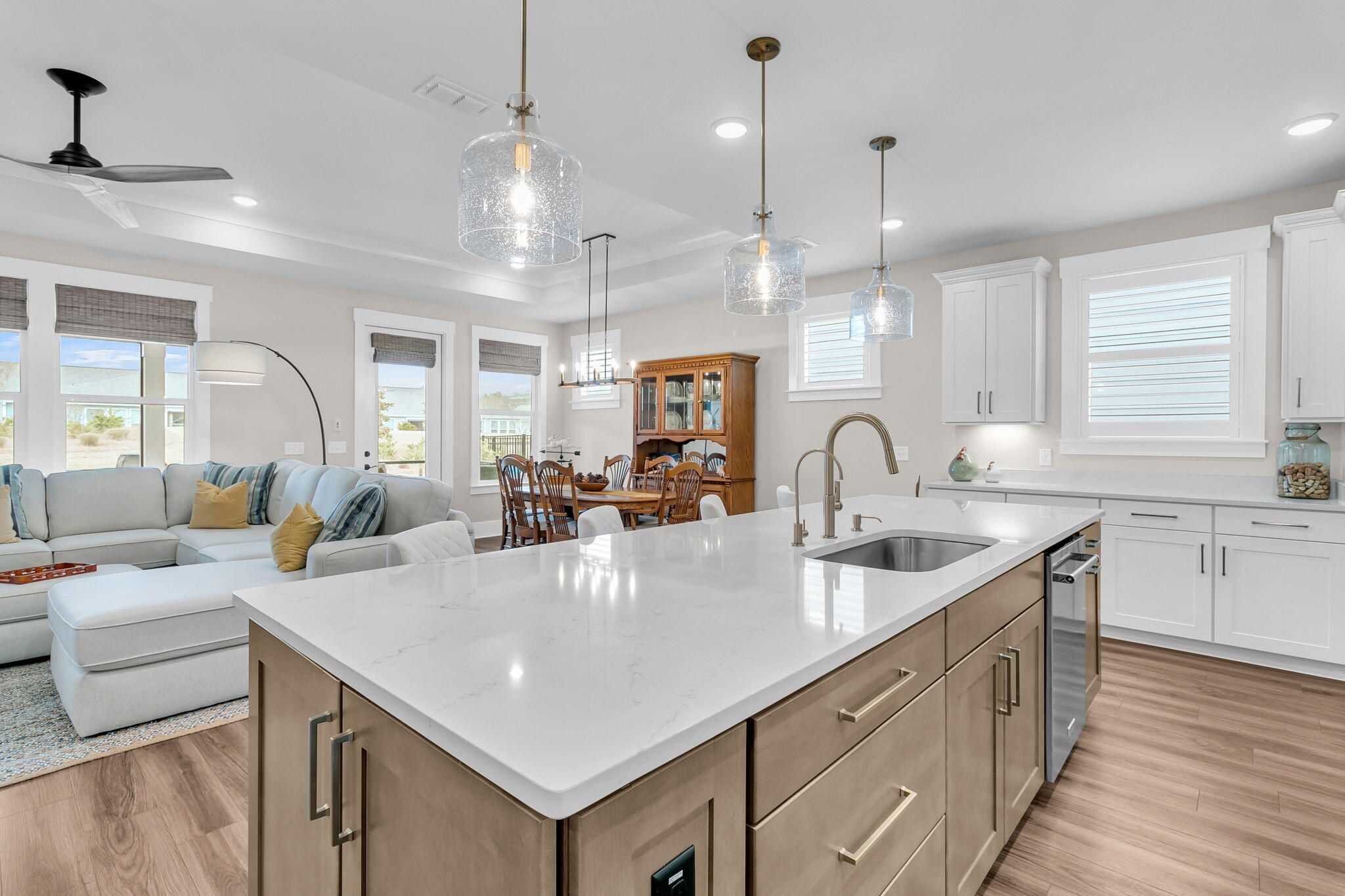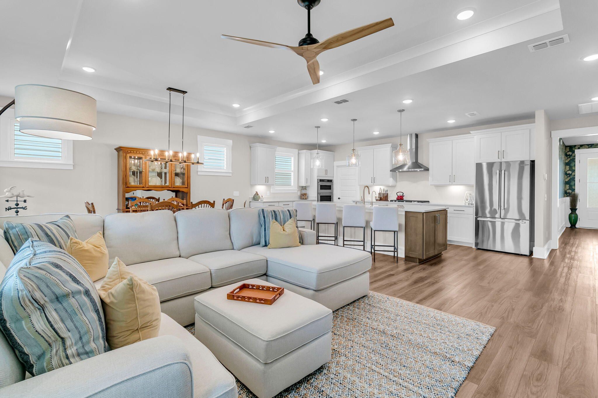 Gorgeous Palmary model just built in 2023 in perfect move-in ready condition! Featuring 2 bedrooms, 2 baths, a flex room/office space, screened-in porch, and extended garage, you'll have all the space you're looking for. A full front porch, Hardiplank siding, and brick accents give an inviting curb appeal. Step inside to find Luxury Vinyl Plank floors extending throughout the living areas and bedrooms - NO CARPET! Craftsman trim, custom moldings, plantation shutters, and woven grass shades provide touches of elegance at every turn. The island kitchen offers white and burlap finished cabinetry with soft closing doors & drawers and double tray pull out storage, KitchenAid stainless steel built in appliances with a five-burner gas cooktop, built-in wall oven & microwave, hooded vent, and.....included Bosch refrigerator, a Reverse Osmosis water filtration system, designer cabinet hardware, kitchen faucet, and soap dispenser, under-cabinet and custom pendant lighting, and large walk-in pantry. The gathering room and cafe sit underneath a beautiful tray ceiling with LED lighting and designer fan and chandelier. Step outside to the elongated screened-in porch with dual fans and separate patio space overlooking a private wooded berm. You'll enjoy ample space from neighbors with the 20' easement on the left side of the home. Back inside, the Owner's Suite offers a tray ceiling and ensuite with with 12" x 24" tile floors, a double sink vanity with burlap cabinetry, Cambria quartz countertops, and rectangular sinks, a luxury spa shower with tile walls and floors, built-in bench, and separate handheld shower head, and a large walk-in closet. A second bedroom and full bath sit down their own hallway, providing ample privacy for owners and visitors alike. The flex room can be used as an office, den, or spare room for guests. Additional home appointments include painted walls and ceilings with quality Sherwin Williams and Benjamin Moore paint, wallpaper accent in the foyer, a custom drop zone to store of all of life's 'extras,' and laundry room with built-in cabinetry and laundry sink with quarts top. Don't miss the garage space - with its 4' additional length, painted walls, and attic storage above. Be part of the Charleston area's premier 55+ lifestyle community, Del Webb Nexton. Just a short golf cart ride to two grocery stores, restaurants, Pickleball bar, shopping, and so much more! Only five minutes to charming historic downtown Summerville and 25 minutes to Charleston! A 27,000 square foot amenities center with indoor and outdoor pools, sport courts, and fitness center, plus a full-time lifestyle director with clubs and planned community events. Additional community amenities are being added and will include a new 30,000 sf gymnasium and event hub with a built-in stage to host large-scale events like community parties and concerts, an indoor sport courts, and walking track. A poolside bar & grill will be added as well as additional outdoor pickleball courts. This community has it all! Skip the hassle of building and the additional move-in costs, this home is turn key with refrigerator, window treatments, ceiling fans, and attached lighting included. Please book your showing today!