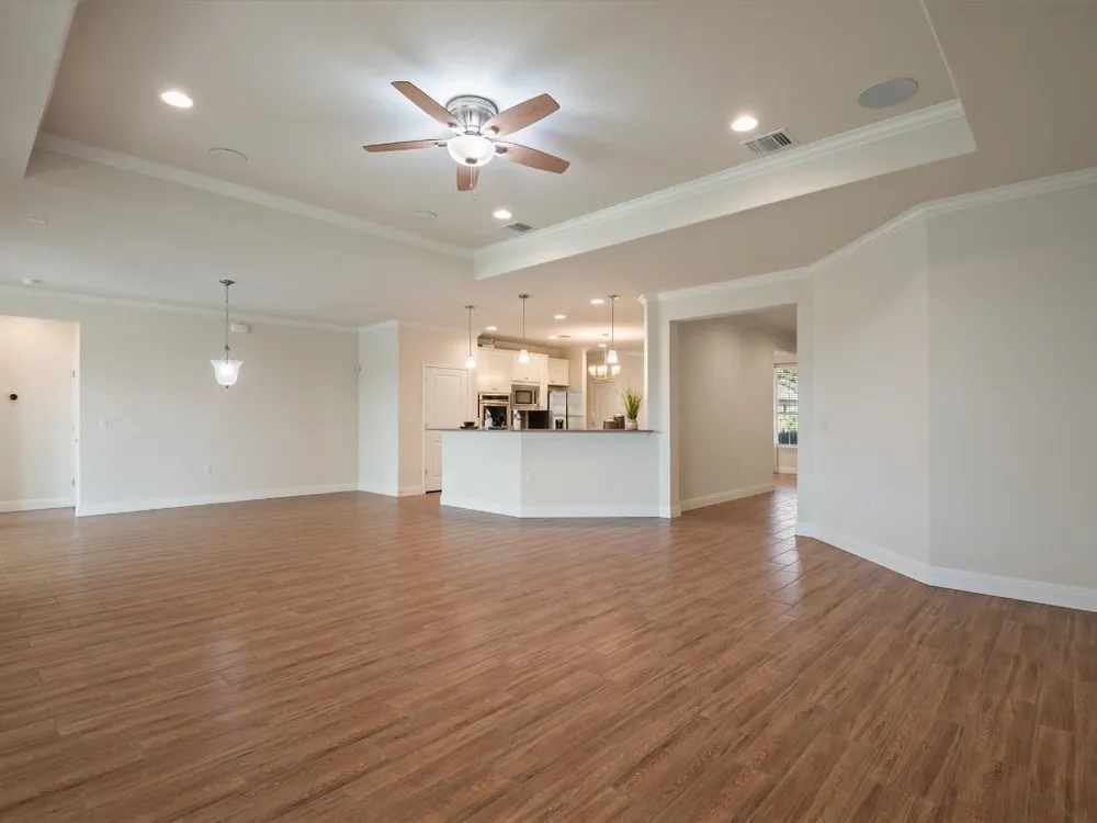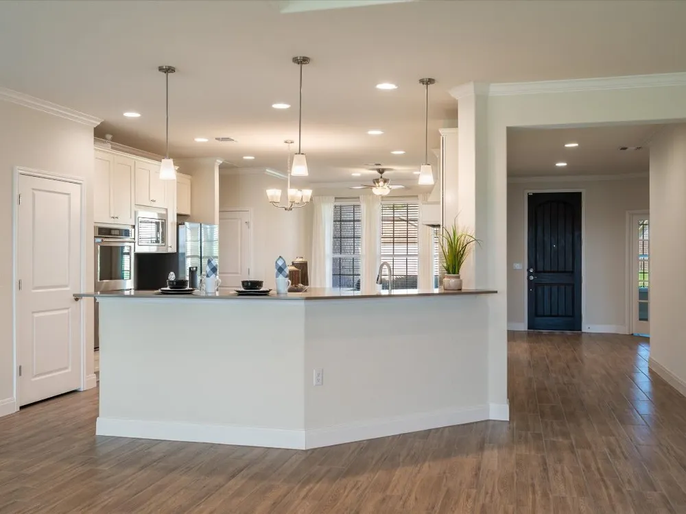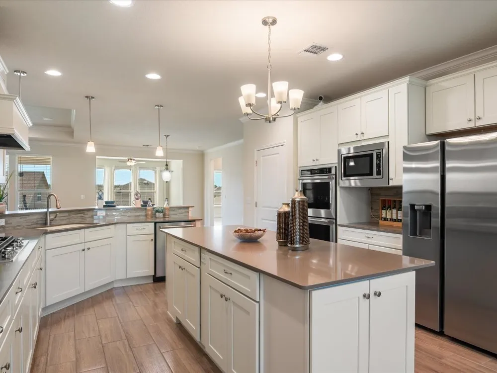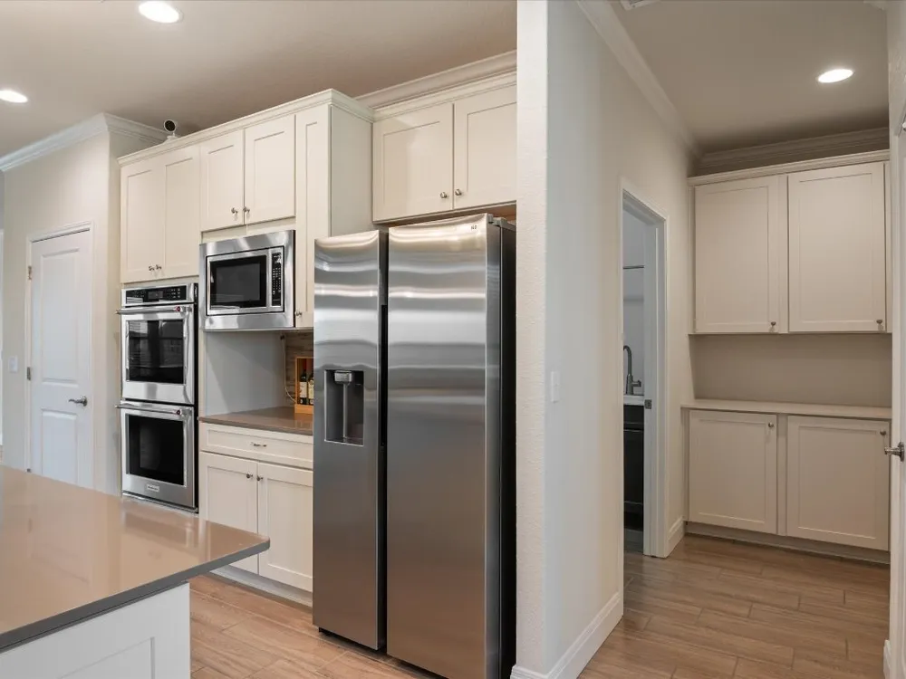 - Tray Ceiling(s), Ceiling Fan(s), Crown Molding, Separate/Formal Dining Room, Double Vanity, Eat-in Kitchen, French Door(s)/Atrium Door(s), In-Law Floorplan, Kitchen Island, Multiple Living Areas, Multiple Dining Areas, Multiple Primary Suites, NoInteriorSteps, Open Floorplan, Pantry, Quartz Countertops, Recessed Lighting, Walk-In Closet(s)
