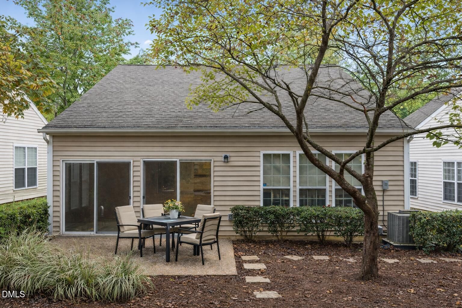 Welcome home to easy, resort-style living in the heart of Carolina Preserve — Cary's premier 55+ Del Webb community. This beautifully maintained 2-bedroom, 2-bath home offers a bright, open layout designed for comfort and low-maintenance living. Highlights include a light-filled floor plan with approximately 1,376 sq ft of living space; a spacious kitchen with Corian countertops and center island; Open dining and living area that leads to wooded views in the back. The primary bedroom features a walk-in closet, a ceiling fan and crown molding, while the primary bathroom has a walk-in shower and ''convenient height'' dual-sink vanity. The second bedroom is perfect for guests and/or an office/craft room, etc. The backyard has a patio and trees...perfect for relaxing after a fun day on the greenway trails, nearby shopping, or hanging out at the amenity center, Bradford Hall. Speaking of Bradford Hall, it is a 35,000 square foot clubhouse offering everything from fitness to fun. There are indoor and outdoor pools, a spa and a fitness center. Fancy some competition? There are tennis and pickleball courts, bocce, and a putting green. Looking for something a little more relaxing? There are Arts and Crafts studios, a library, billiards and even a ballroom with a full kitchen. Want to get to know your neighbors? There are more than 120 resident clubs and social events. And, of course, Carolina Preserve itself has scenic walking trails, ''specialty'' parks, and so much more to explore! What a great place to call home!