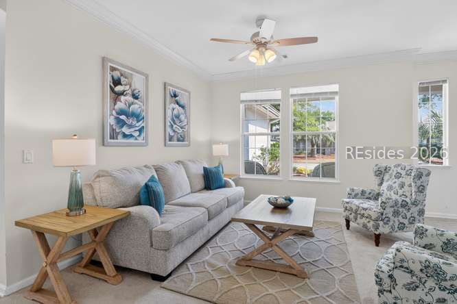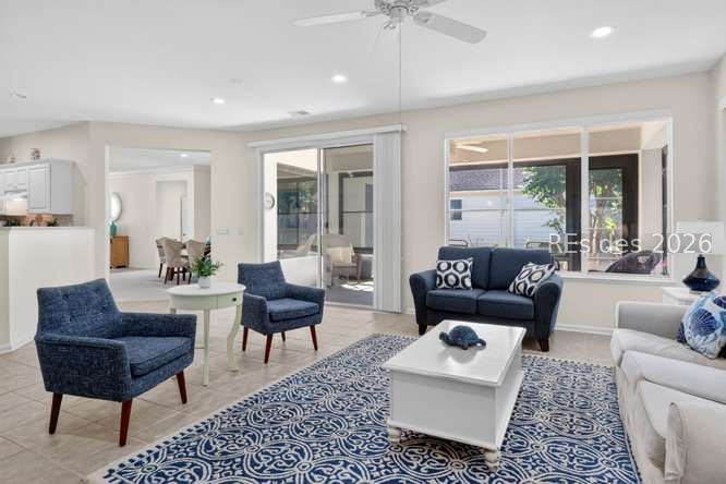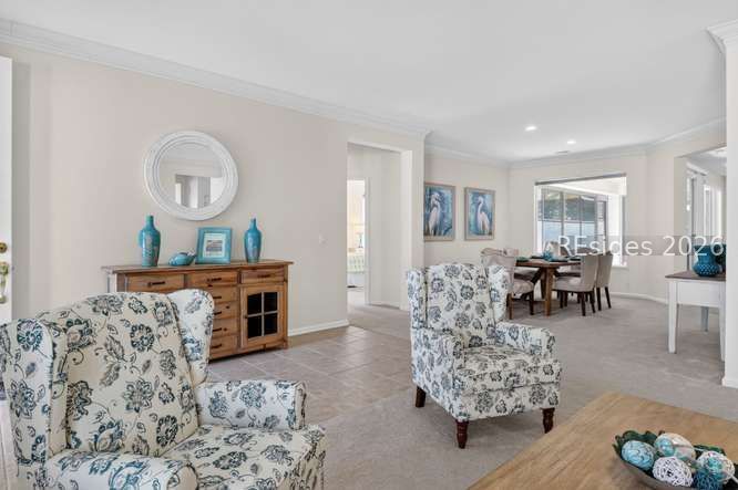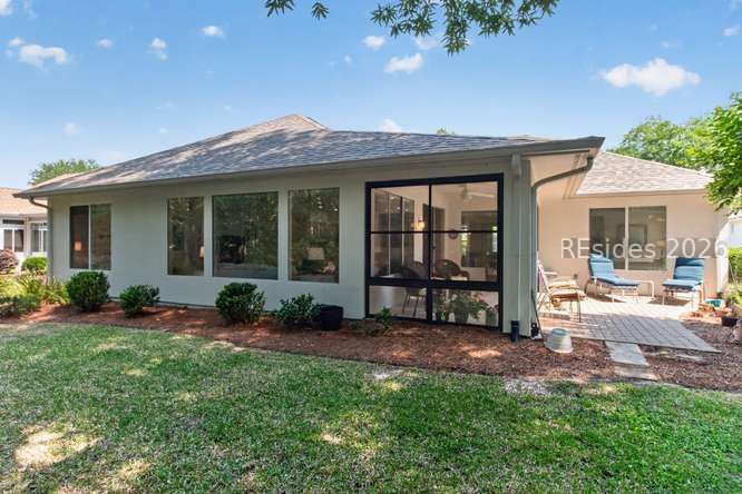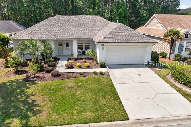 Discovеr thiѕ mеticulously maіntained, incredibly vеrsаtile Longleaf model in Sun City Hilton Head! Featuring three bedrooms PLUS a dedicated office with custom bookcases. Enjoy stunning, private wooded views from the comfort of your home. The spacious layout boasts elegant crown molding in the formal living and dining rooms, plus a bright Carolina room perfect for relaxing. This model is so versatile, you can use the spaces in multiple different ways from formal to casual, swap the living room and dining area around if you like. Or make this your everyday living space. You decide! The heart of the home is a massive kitchen with a long breakfast bar plus an island. At the end of a long day relax on the screen porch overlooking a tranquil wooded view. The vinyl windows make this porch a year-round space to enjoy. How lovely it will be to enjoy the porch after playing golf, swimming, Pickleball or tennis, playing cards or painting, doing ceramics, the activities are endless. You will look forward to retreating to the primary suite featuring a luxurious garden tub and a massive, 20 foot walk-in closet! The split floor plan provides privacy for you and your guests. Your guests will enjoy the updated bath with a new shower insert (2024). Don't miss this blend of style, space, and functionality. This home is move-in ready with significant updates: New Roof (Fall 2025), Exterior Paint (2024), and HVAC (2014). Enjoy year-round comfort in the screened porch with new vinyl windows (2024), leading to a private paver patio-ideal for entertaining. Bonus! The garage refrigerator and freezer convey! Clean stucco report. Ideally located close to the many amenities that make Sun City Hilton Head one of the region's most sought-after active adult communities. Don't miss this one, this is a rare opportunity to own one of the most versatile floor plans and locations Sun City has to offer. Sun City Hilton Head has currently completed a $50 million expansion. This new phase features a state-of-the-art amenity center, & a 40,000+ sq ft Clubhouse. A Two-Story Fitness Center has 15,000+ sq. ft. facility with an indoor walking track & a multi-sports court. There is a15,000 sq. ft. pool, featuring a lazy river, pool side food bar, Baja sun deck, & poolside cabanas + Indoor four-lane lap pool,12 outdoor & 4 indoor pickleball courts, 3 outdoor & 2 indoor tennis courts and so much more!