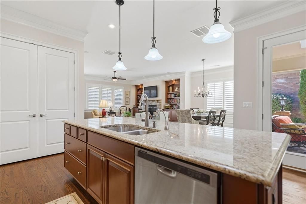***Welcome to Cadence---Cherokee County's Premiere Active Adult Community*** Situated in the stunning , gated Cadence community, this beauty stands out for its exceptional features and location. This amazing home, on an interior lot, has been meticulously maintained .From the moment you enter you will find John Wieland quality in every room. The open concept living area includes the kitchen/dining and family room. Details like generous crown moldings, real hardwood flooring and detailed wood cabinetry are just some of the sought after features you'll experience in this lovely home. The stacked stone fireplace and custom wood cabinetry and shelves complete this exquisite gathering space. The Chef's Kitchen offers a large island, granite countertops and stainless steel appliances. The Master suite boasts a large Master bedroom overlooking the tranquil back yard. The spa bath includes dual vanities, a dedicated make-up vanity, over sized shower, his and hers closets and skylights for natural lighting. Additionally there is a guest bedroom and full bath and a dedicated office/flex space situated on the main level. Upstairs is your second living space which could be used as a media room, game room or study, etc. , a third bedroom and full bath and lots of walk-in storage. There are two dedicated outdoor spaces. The first is a covered paver patio with skylights and overhead fan where you can enjoy a meal or your morning coffee. This outdoor oasis overlooks the garden area. The second outdoor space is a patio in the back to enjoy the tranquility of the private back yard. Cadence is known for the high-end finishes in the residences and also for the amazing amenities, which include a stunning clubhouse, outdoor fireplace area, community pool, lake, walking trail, and fitness room. Residents have the option to join Woodmont Golf and Country Club with 2 restaurants, tennis and pickleball courts, two pools, AND the Robert Trent Jones, Jr. 18 hole Golf Course. All yard maintenance, mulch and pine straw are included in your HOA fees and your home is painted for you every 7 years!! Be sure to make your appointment to view this exceptional home ASAP. These homes just do not last long!