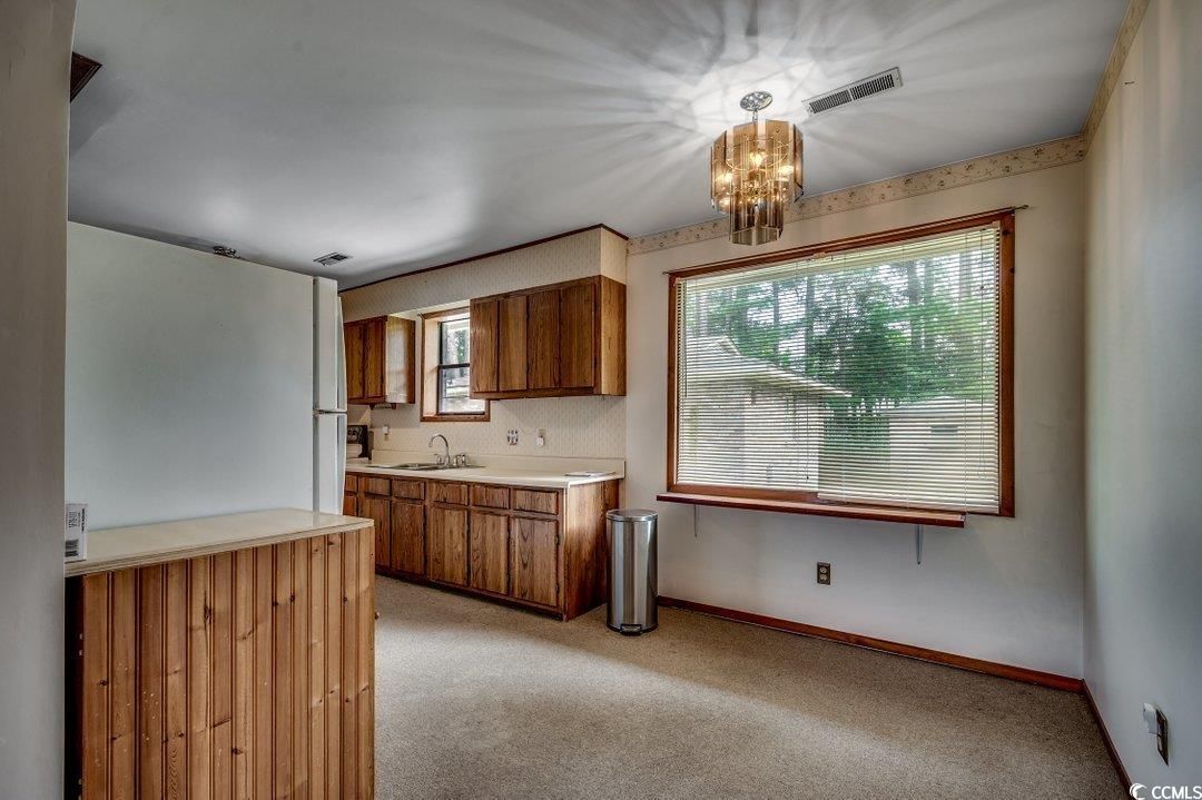 All brick home situated on a corner lot that is approximately 1/3 of an acre. Fenced yard, detached 2-car garage with lean to & separate storage building. Property constructed in 1988 with only 1 owner. Great bones in need of some updating. Convenient to area beaches, shopping and Murrells Inlet. St. James schools an added bonus. Great opportunity-large lot; brick construction; location, location, location; primed for your finger prints...look today without delay! Square footage is approximate and not guaranteed. Buyer is responsible for verification.