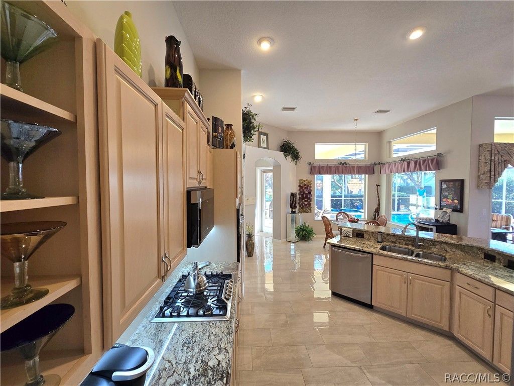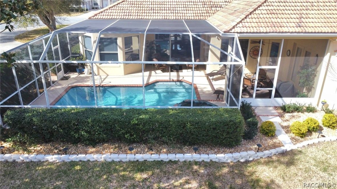 LOADED w/upgrades & designed for luxury living, this FULLY FURNISHED contemporary Mediterranean styled home is equipped w/POOL & SPILLOVER JETTED SPA w/heater, GAS FIREPLACE, JACUZZI JET TUB, SMART HOME FEATURES, RETRACTABLE GARAGE SCREEN & FRIGIDAIRE GALLERY APPLIANCES (furnishings list upon request) … Elevated at 167.5' above sea level w/underground power, equipped w/clay tile roof & hard-wired LED landscape lights. 4 bed, 3 bath, 2633 sq. ft. w/volume & tray ceilings, niches & columns w/neutral color palette & private lanai w/2 spacious verandas. Marvel at the open- concept layout of great room, dining room, kitchen & breakfast nook all w/12' ceilings & panoramic view of pool, private verandas & gas fireplace. In the Chef's kitchen you'll find large bar, granite countertops lit w/under cabinet diffused LED lighting, pull-out shelves & soft close doors, Frigidaire Gallery (Electrolux) stainless appliances, a double deep basin sink, gas cooktop, custom built-in wine rack & a grand reach-in pantry w/ bi-fold doors. All atop a dreamy polished porcelain tile! You'll find these stunning glossy tiles wind throughout the breakfast nook, laundry, hall & pool bath. Escape to the expansive master retreat tucked behind double doors w/ private sitting area, newer laminate flooring, stunning pool view w/direct lanai access, 2 large mirrored his & hers closets in the hall, w/hers being a walk-in. Melt away in the deep soaking Jacuzzi jet tub or in the vast open walk-in shower. Separate expansive quartz covered dual vanities & full wall mirrored linen closet creating a dressing-room style experience. A private water closet & porcelain floor tiles. Opposite side of home are 2 beautiful, private, Jack & Jill bedrooms w/ large mirrored closets, newer laminate flooring that connect to a large bright stylish bath w/quartz counter, mirrored wall, glass door bath/shower, commode nook & linen closet. Back corner of the home is a massive, multi-purpose suite featuring double door entry & elegant French doors that lead to lanai, a dedicated closet, & a full wall of sophisticated custom-built ins. This versatile space perfectly adapts as a luxurious carpeted bedroom, a private executive office, or a grand lounge, offering unparalleled flexibility to suit your lifestyle. Large laundry room, utility sink, granite counter, w/ample cabinets lead to the 2 plus car garage. All baths feature undermount sinks & waterfall faucets. Many app-enabled smart home features such as SimpliSafe Monitored Home Security System, Resideo Thermostat, G Home lighting outlet adapters & wall switches, LED Pool Cage lights & RACHIO Irrigation controller. A wired internal communication system w/ 5 sub-stations, a voice activated entry & connected stereo. Also, a Bluetooth controlled Denon/Bose Acoustimass hard wired audio system in great room & Klipsch speakers on the lanai. Truly way too much to list. A HOT OPPORTUNITY PRICED AT AN OUTSTANDING VALUE. The retreat home is located in the prestigious gated & amenity rich community of TERRA VISTA