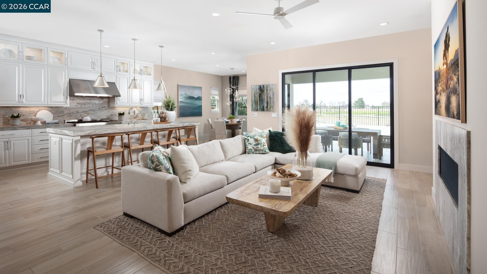 Active Adult 55+ Gated Community. Welcome to Regency at Tracy Lakes, where luxury living takes center stage. Three picturesque lakes, this community has a fishing dock, 1-acre garden and dog park. A wealth of amenities, including clubhouse, indoor and outdoor pools, cabanas, a yoga studio, fitness center, bocce ball, and pickleball courts, every day here is an opportunity for relaxation and recreation. Onsite lifestyle director ensures there’s always something to look forward to; from fitness classes to comedy shows and wine nights. Stunning lakefront home location will make you feel you're on vacation year-round. Great room with a cozy fireplace and a casual dining area, leads to luxurious outdoor living space. The kitchen is expertly designed, complete with stainless steel appliances, 48" gas range, a large center island with breakfast bar. Primary bedroom suite is defined by an expansive walk-in closet and a spa-like primary bath. Create your ideal living space with a generous flex room. Thoughtfully designed interior finishes include elegant craftsmanship with 10-foot ceilings, 8-foot doors, 5 1/4" baseboards. Convenient powder room and laundry. Energy saving solar panel system (photos not of actual home or yard, this is the model home)