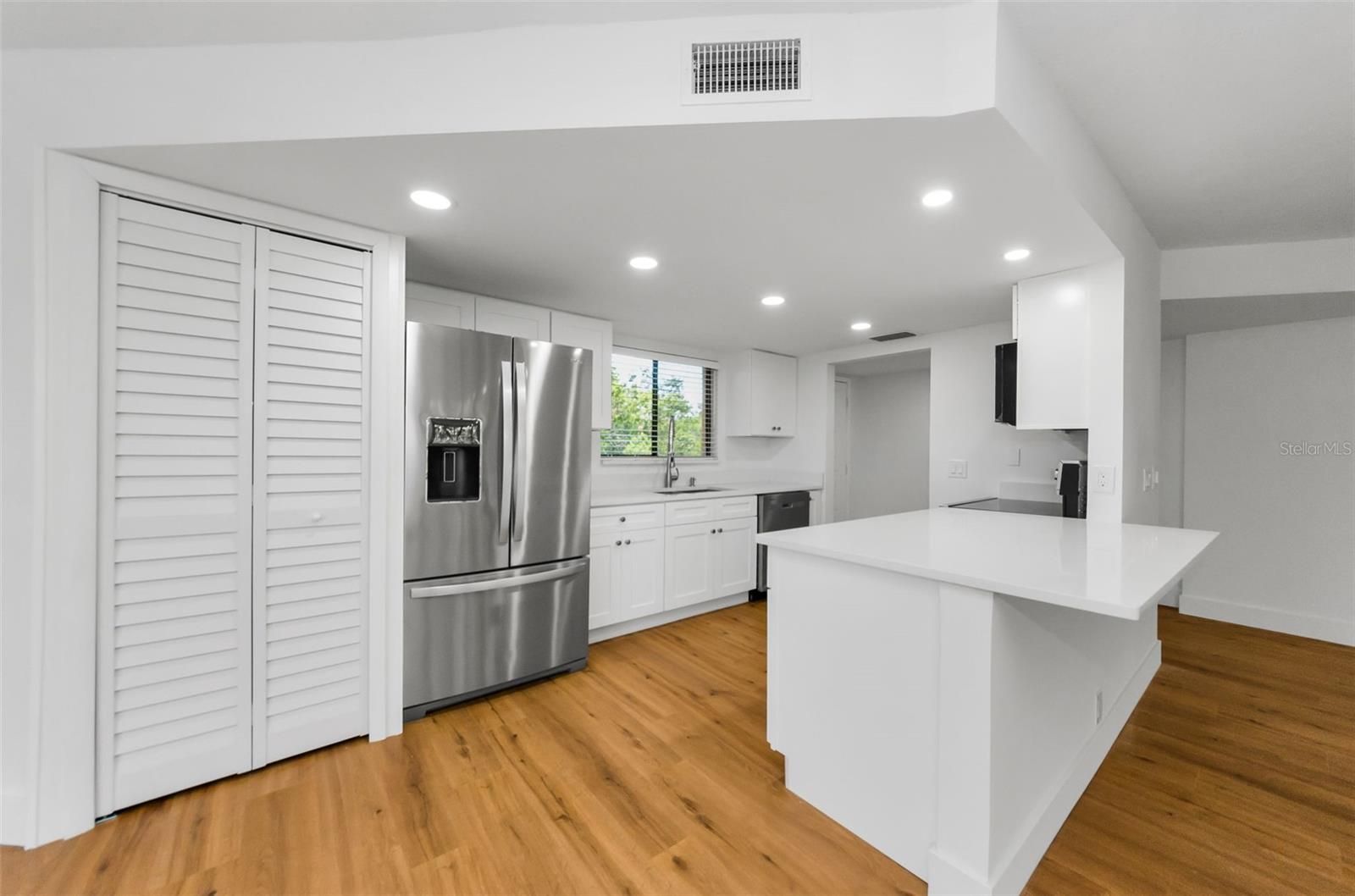 Welcome to one of the largest and most exquisitely renovated residences in Imperial Pines - a prestigious community offering resort-style living with a pool, spa and clubhouse. This spacious 2 bedroom, 2 bath unit has been thoughtfully reimagined with high end finishes and timeless elegance throughout. Step inside the beautifully redesigned kitchen featuring brand new cabinetry, gleaming quartz countertops, and a suite of stainless steel appliances. The open floor plan showcases new flooring throughout, creating seamless and sophisticated flow from room to room. The expansive Primary suite offers a spa-like ensuite bathroom with dual sinks, a modern quartz countertop, fully updated shower with upscale fixtures. The Guest bath has also been fully remodeled with new vanity, flooring, tile and fixtures. Enjoy your morning coffee or evening glass of wine on the charming wrap around lanai! Beautiful sliding doors from the Dining area, Primary suite and Living room let in tons of natural light! Don't miss this opportunity to own a turn-key luxury residence in one of Clearwater's most desirable 55+ communities! Condo exterior hallways & lobby spaces are all being renovated with new textured concrete for a modern look!