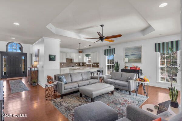 - Master Downstairs, Walk-In Closet(s), Tray Ceiling(s), Entrance Foyer, Kitchen Island, Ceiling Fan(s), Pantry, Walk-In Shower, Blinds