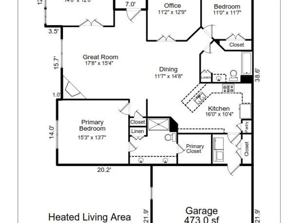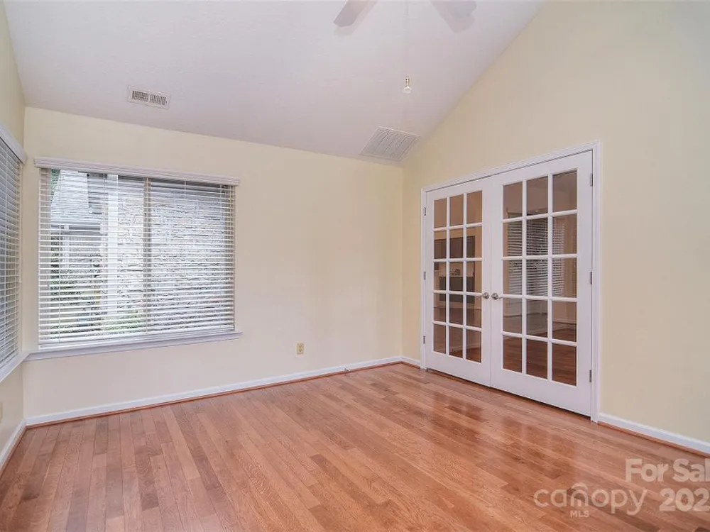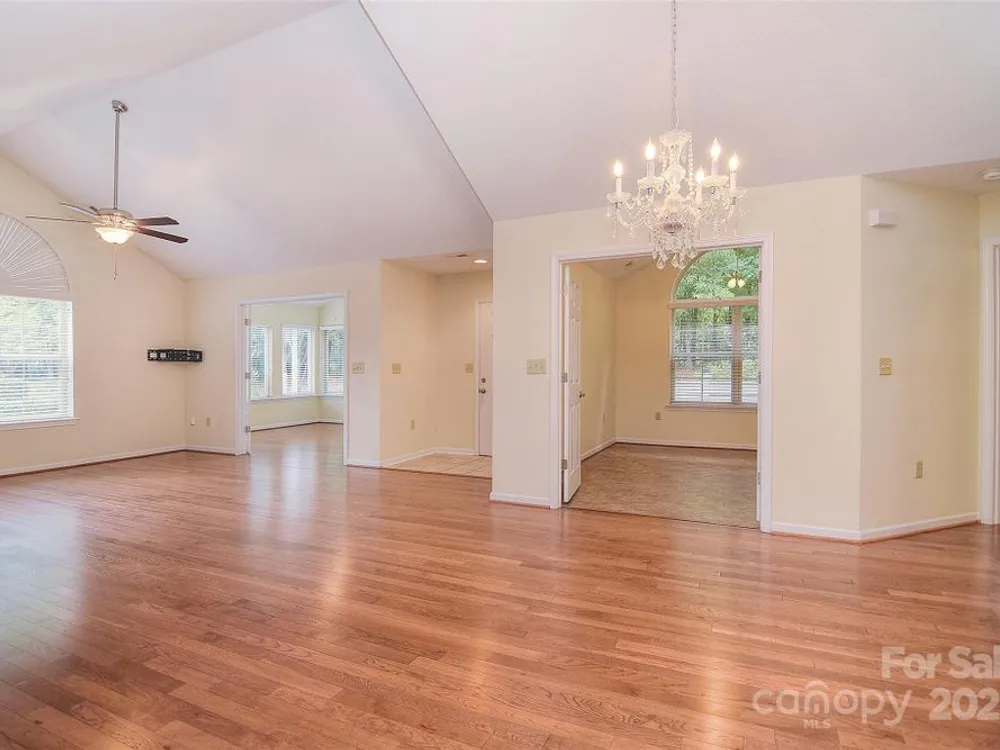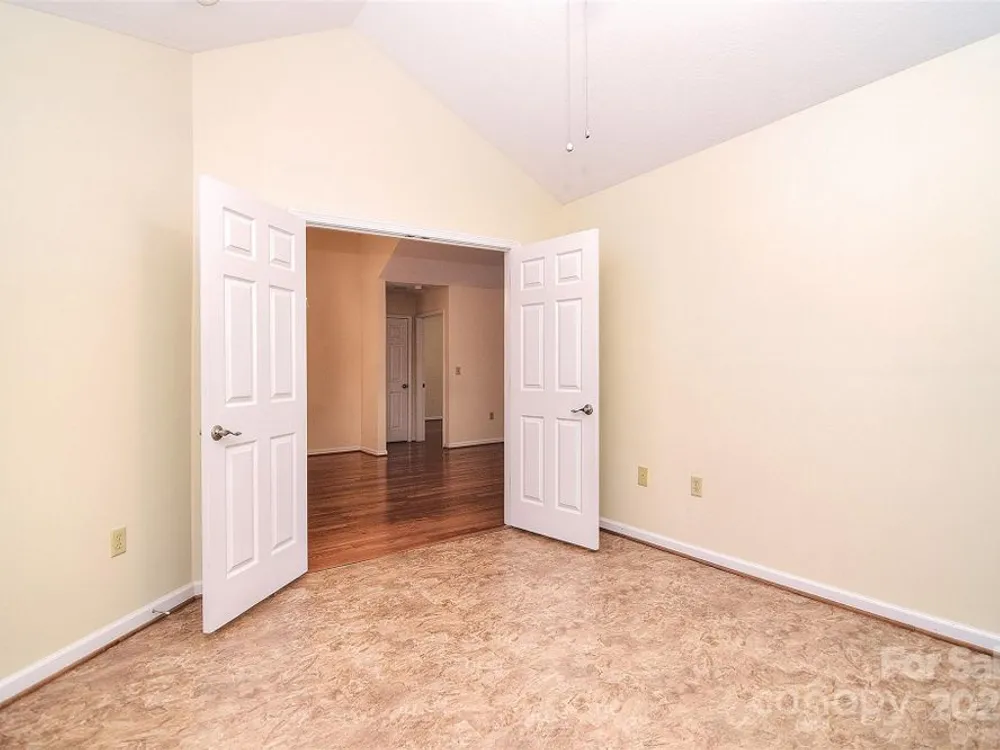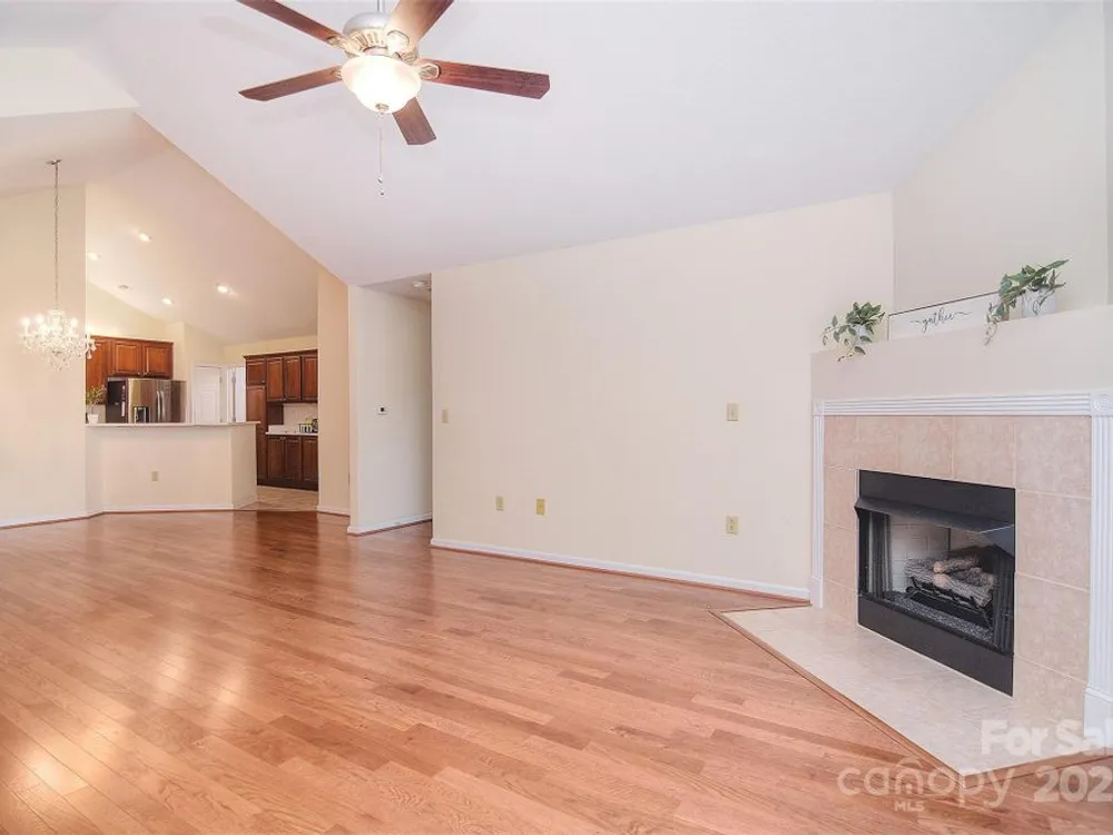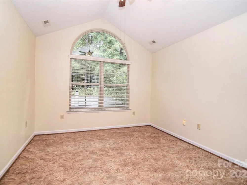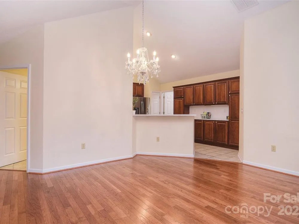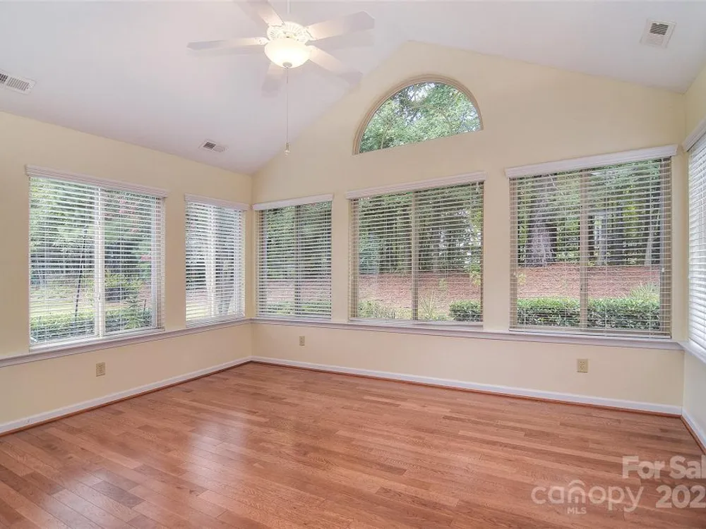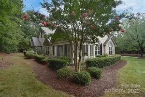 More than meets the eye—while officially a 2-bedroom, this home includes a sunroom and office, providing flexible space for work, relaxation, or guests. Tucked at the end of the cul-de-sac offering extra parking, beautiful landscaping, and privacy. Inside, enjoy an open, spacious layout w/ no carpet. Vaulted ceilings enhance the airy feel throughout the home. The great room offers a corner fireplace and a large palladium window. The dining area showcases a beautiful chandelier w/ additional seating at the breakfast bar. The upgraded kitchen w/ quartz counters, tile backsplash, ample cabinets, S/S appliances and a built-in sidebar. The primary suite features vaulted ceilings, large WIC, and a private en'suite bath w/ dual vanity. You’ll love the serene sunroom overlooking the woods and the quiet indoors—thanks to the front-loading garage buffering road noise. HVAC new in 2020. Large 2-car garage, washer/dryer, and refrigerator all convey. Convenient to Matthews, shopping, and more!