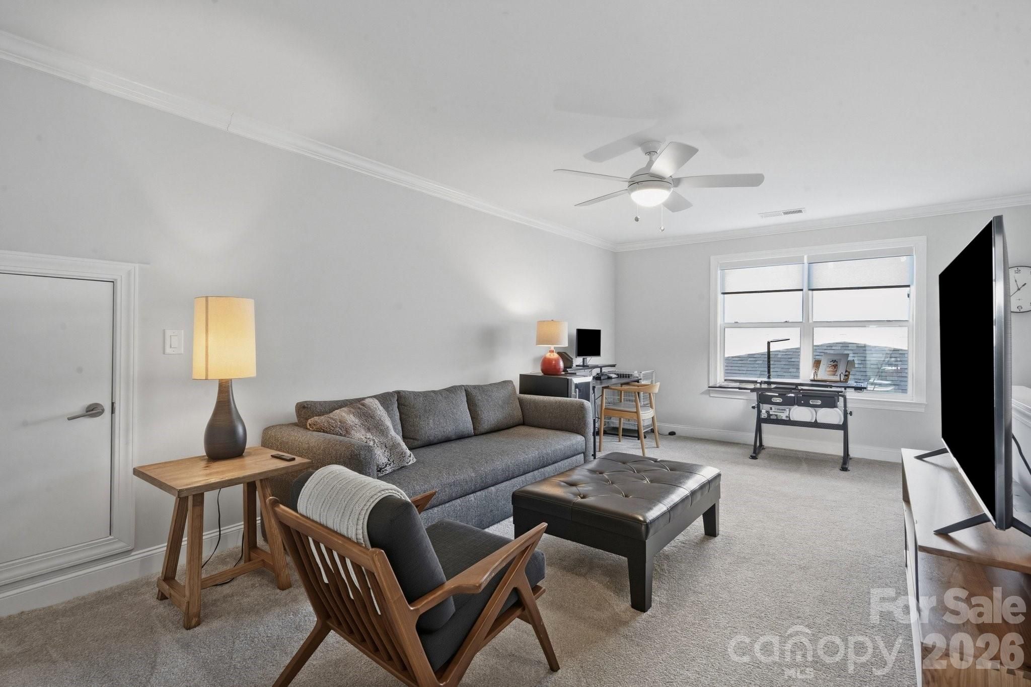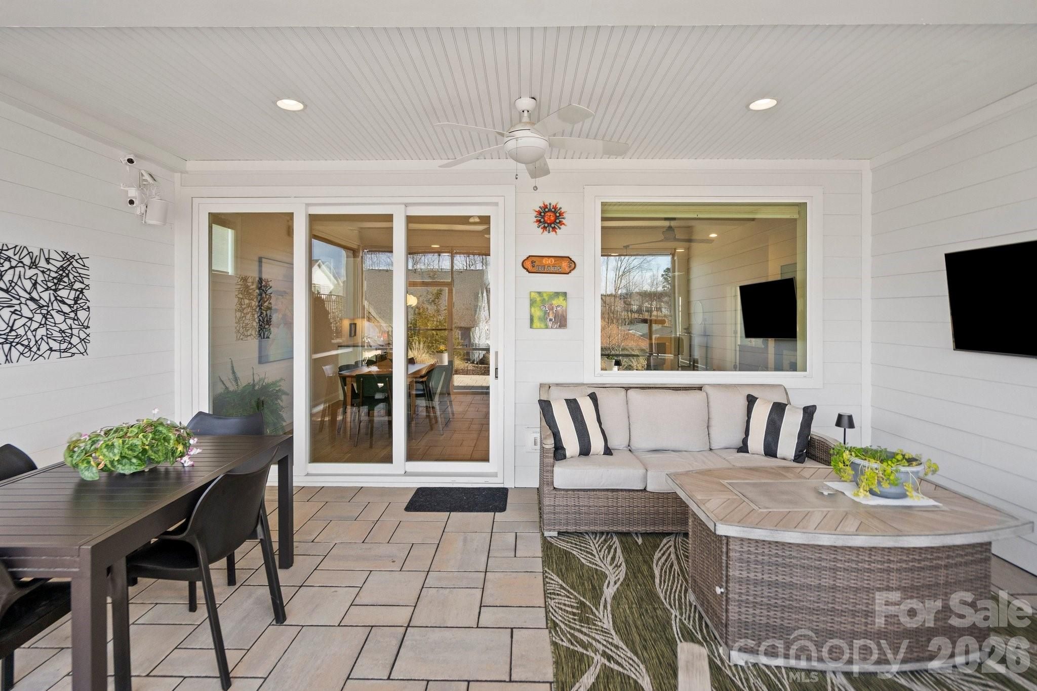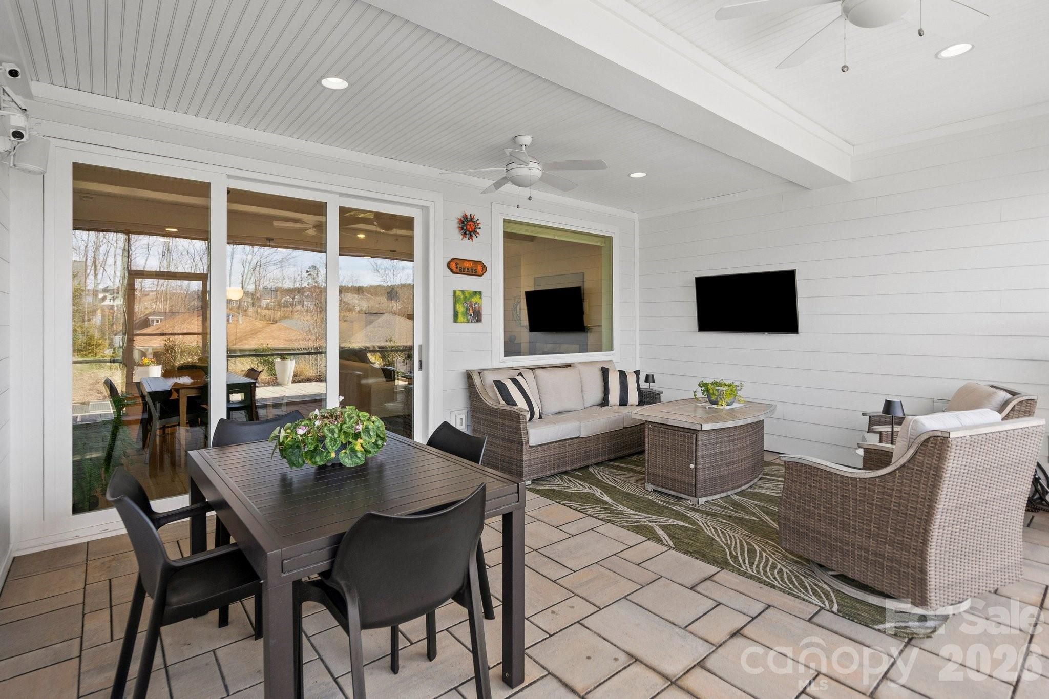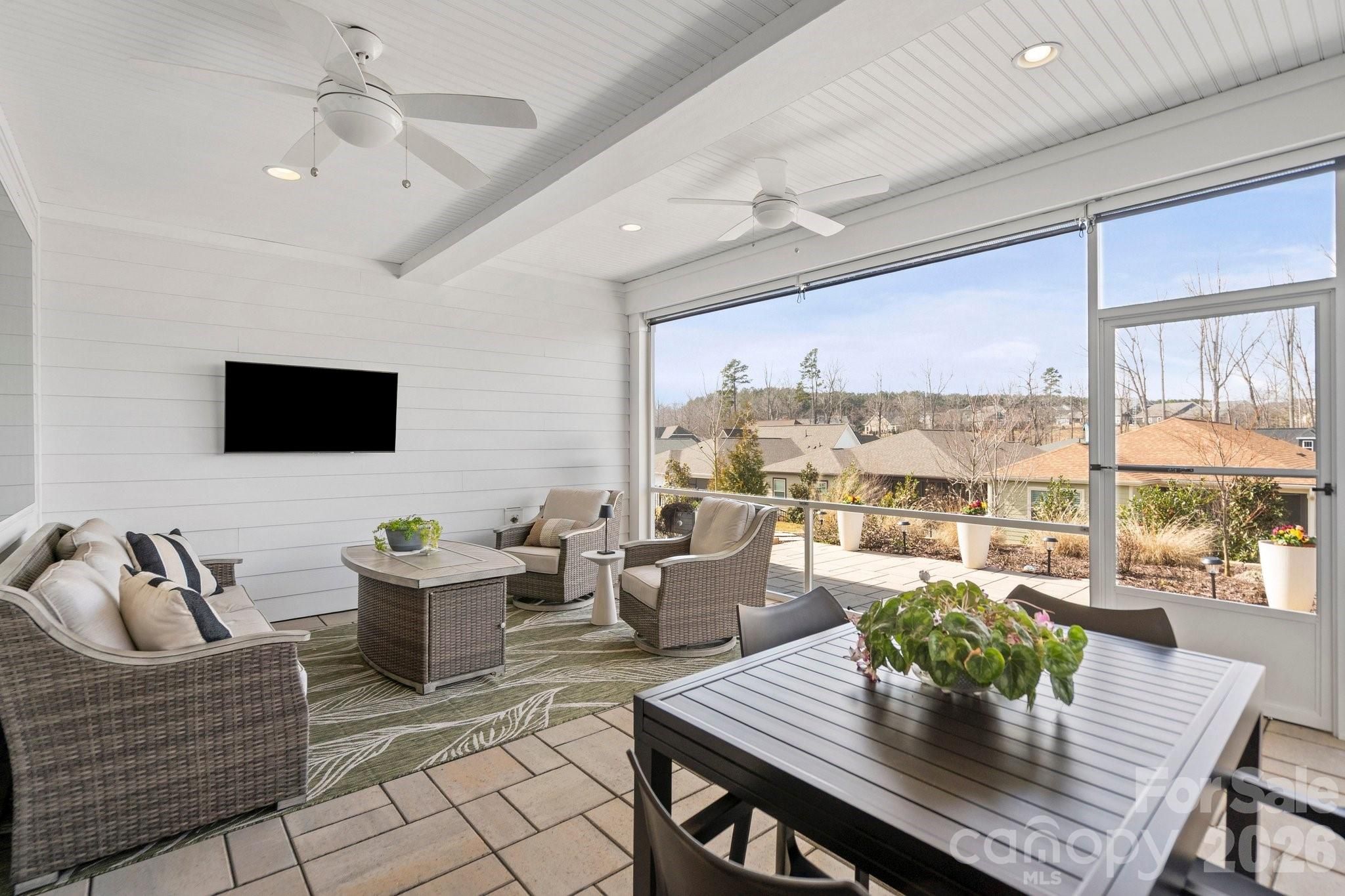 This truly custom Connect/Loft has been thoughtfully designed with a meticulous attention to detail. Barely lived in, this multi-purpose floor plan offers many different living configurations. Exceptional culinary heaven features SS KitchenAid appliances, amazing storage and counter space, 5 burner gas cook-top, convection wall oven, tile back splash, under cabinet lighting, refrigerator, beverage refrigerator and island serving bar. Dining area for large gatherings is adjacent to the wall of glass that opens to the extended screened private lanai that flows to the paver patio for added entertaining options. Great room is highlighted with a full glass picture window, gas log fireplace flanked with a custom walnut cabinet, multi-mode recessed & designer lighting plus custom blinds. The multi-use office/flex area has glass doors for added privacy. Serene primary suite and bath with dual sink vanity, extended make up counter area and a generous custom closet & tiled shower. 2 spacious guest bedrooms with central bath and laundry (washer and dryer included) complete this level. Upstairs is highlighted with an additional guest suite and full bath, 2 walk in closets providing excellent storage and a family room area to spread out and relax. Low maintenance wood and tile flooring main level and carpet upstairs. Whole house hot water recirculation system. The extended garage is wired for a car charger (220v, 50 AMP) and reconfigurable storage shelving. Trilogy is a 5-Star Active Adult Resort Community that includes the Freedom Boat Club on Lake Norman plus award winning amenities!
