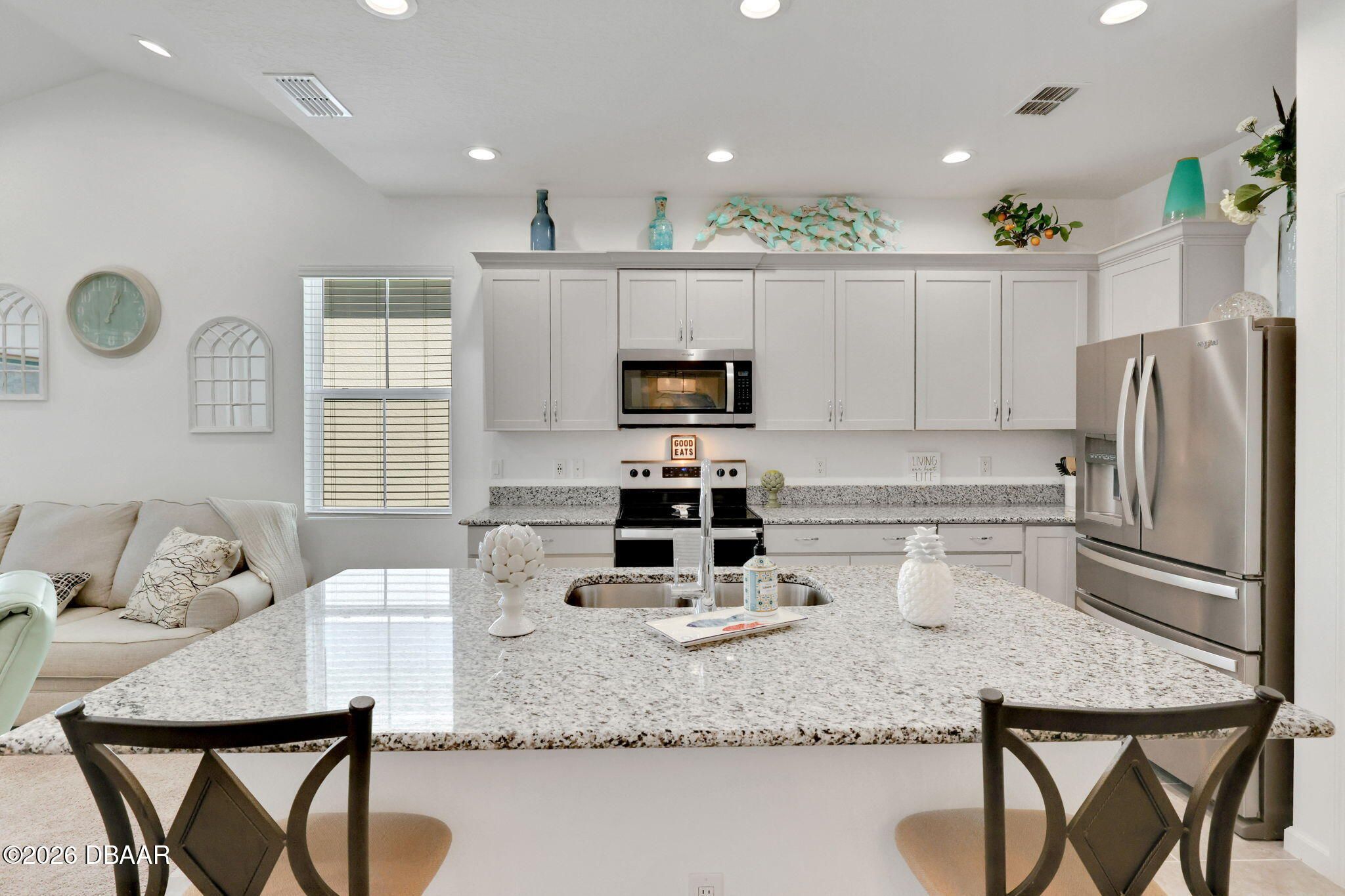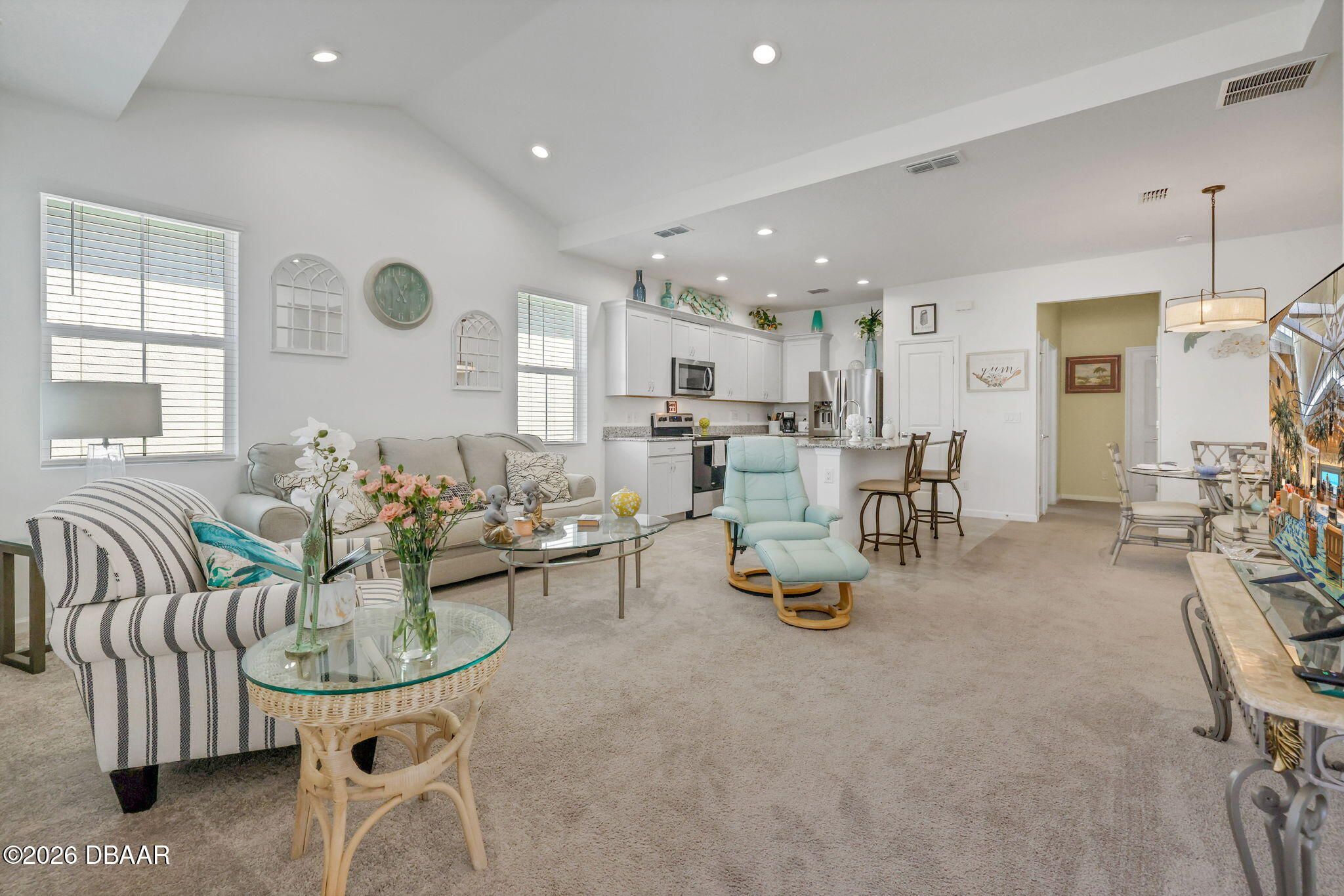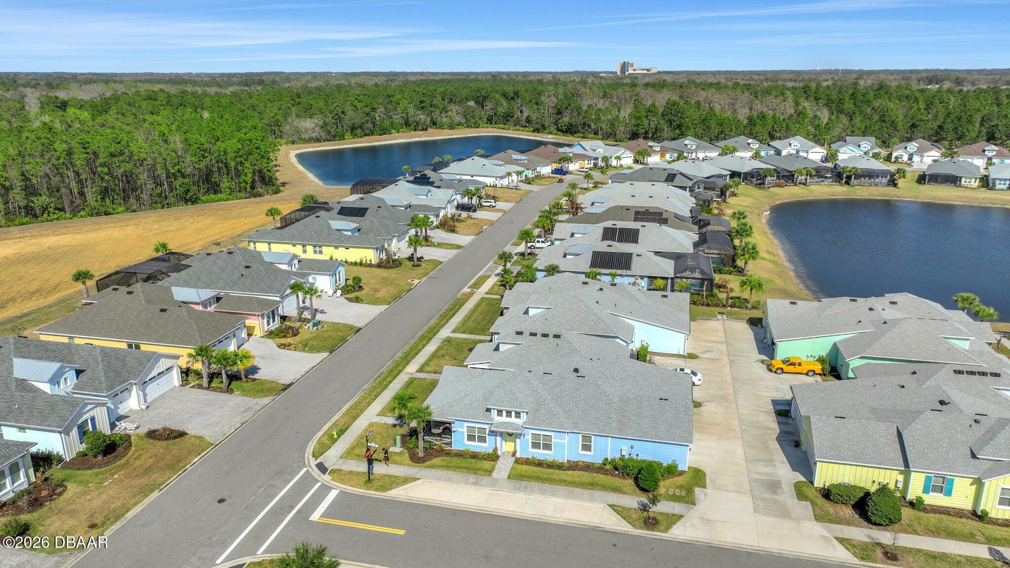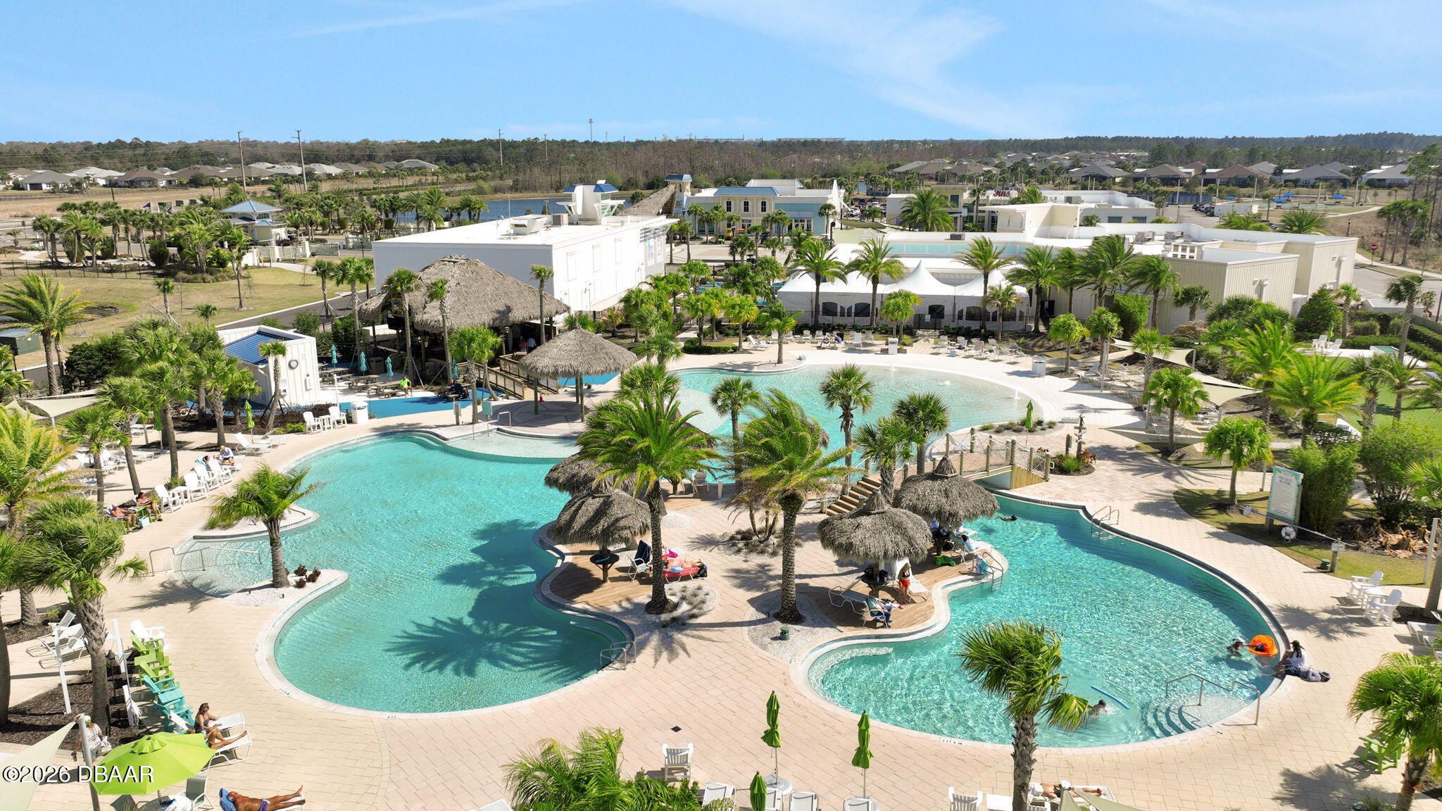 Experience the ultimate resort lifestyle with this stunning Bamboo model cottage in the world renowned Latitude Margaritaville Daytona Beach. This premier 55 plus gated community is designed for those who want a daily vacation inspired by the music and spirit of Jimmy Buffett. Best of all, this home can come completely furnished, making it a truly turn key opportunity to start living your best life the moment you receive the keys. The Bamboo, a jewel of the Conch Cottages Collection, is designed for those who want low maintenance living without sacrificing luxury. This bright and airy floor plan features two spacious bedrooms, two full baths, and a two car garage. With 1,160 square feet of open concept living, you'll enjoy high ceilings, a large kitchen island perfect for entertaining, and a charming front porch where you can sip your morning coffee or evening margarita. The amenities here are truly world class. You'll have access to the Paradise Pool, a massive resort style lagoon with beach entry and tiki huts, as well as the state of the art Fins Up! Fitness Center which includes a relaxing spa and a dedicated indoor lap pool. For those who stay active, the pickleball and tennis courts are legendary. Your furry friends are treated like VIPs too, with a dedicated pet shop and Barkaritaville amenities on site. The Workin' N' Playin' Center even features a barber shop and hobby rooms to keep your social calendar full. In this community, your golf cart is your primary mode of transportation. Leave the car in the garage and join the parade of carts heading to the vibrant Town Square. Drive over to the Latitude Bar & Chill for a cheeseburger in paradise, then head to the Town Square Bandshell for nightly live music and dancing under the stars. Location and security are paramount here. Enjoy the benefit of 24/7 manned gated security and the ultimate convenience of a Publix located right outside the community gates. It is perfectly accessible by golf cart for a quick grocery run. You also have access to the private oceanfront beach club via a community shuttle. Stop dreaming and start living the lifestyle you earned. This Bamboo model is your ticket to a community where the sun is always shining, the music is always playing, and the next party is just a golf cart ride away.
