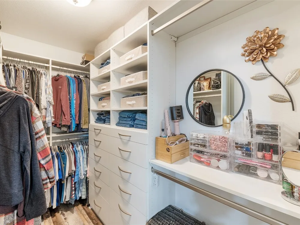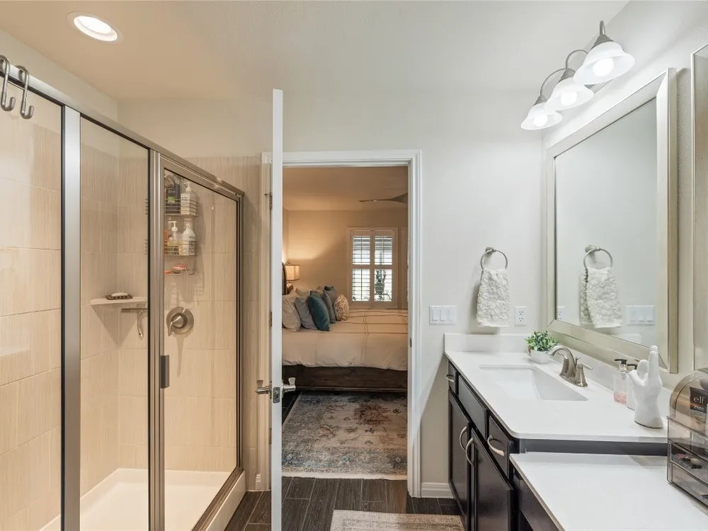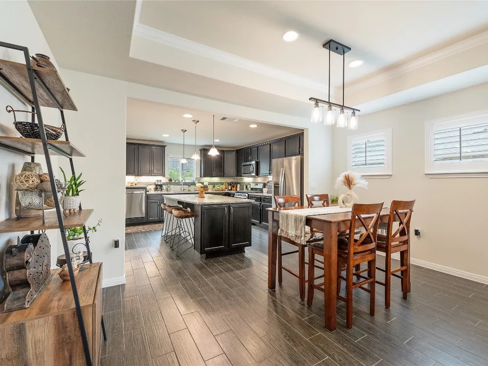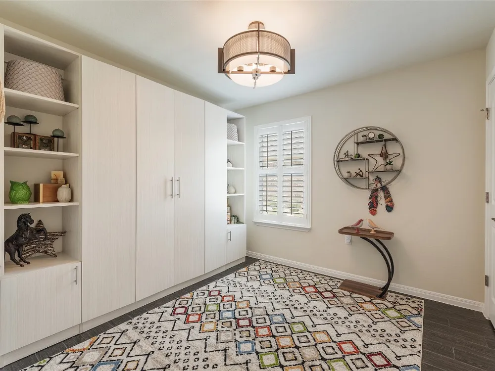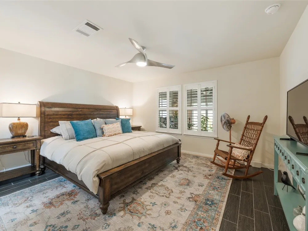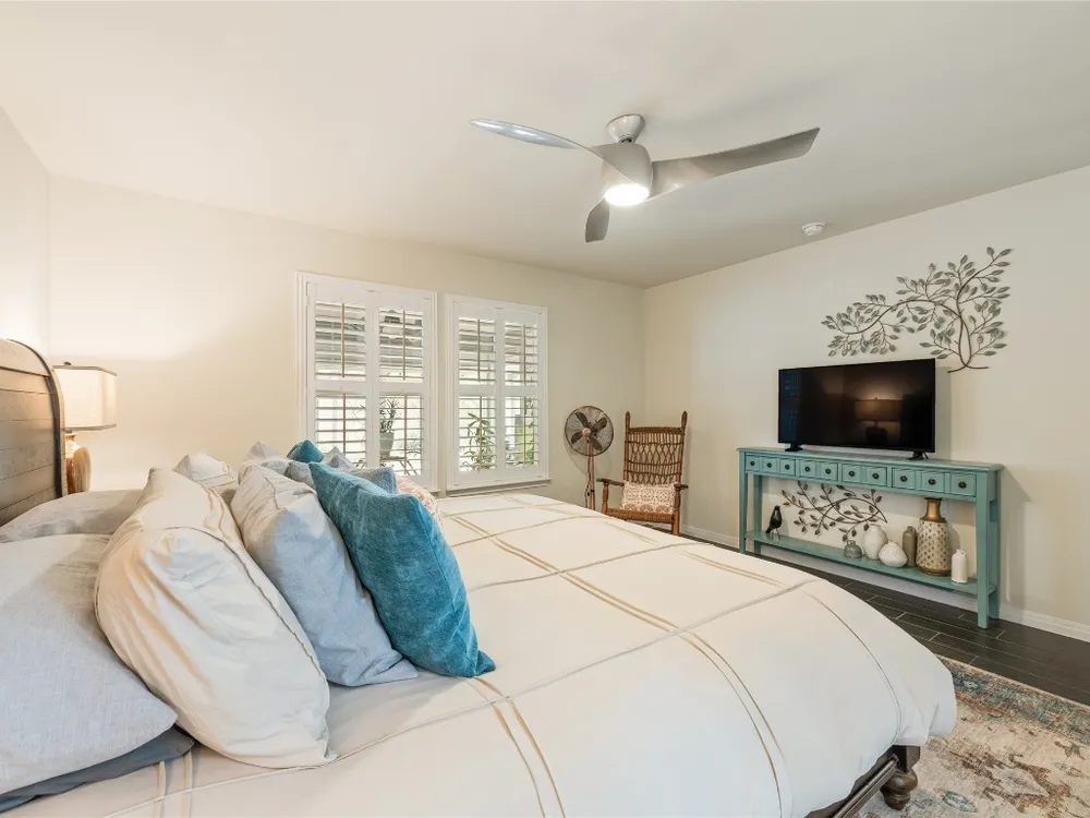 - Tray Ceiling(s), Ceiling Fan(s), Chandelier, Crown Molding, Double Vanity, Granite Counters, Kitchen Island, Multiple Living Areas, Main Level Primary, MurphyBed, NoInteriorSteps, Open Floorplan, Recessed Lighting, Walk-In Closet(s), High Speed Internet