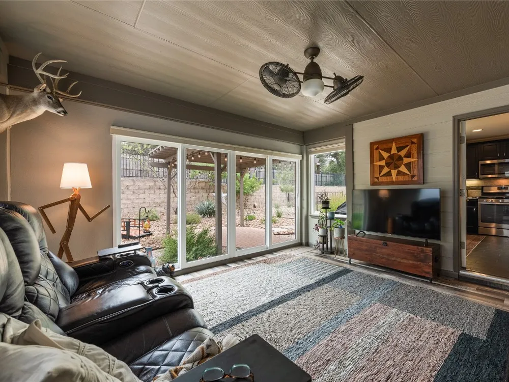 EVERY UPGRADE IMAGINEABLE!! If you're looking for the perfect Sun City home that has every upgrade you could imagine already, this is it!! From the xeriscape yards to the air-conditioned sun room, this house is incredible! Walking in you'll immediately notice the wood-like tile flooring, trayed ceilings with crown molding and recessed lighting. The home has 2 bedrooms, 2 baths, a dedicated office, family room, & an enclosed sun-room with a mini-split for heat/air. The plantation shutters offer privacy and beauty. Even the garage has epoxy flooring, built-in cabinetry, drop down storage racks, and a water softener. The secondary bedroom has a murphy bed for added flexibility. Both front and back yards are xeriscape. The backyard is fully fenced, has a paver patio and a pergola. You have to come see this one!! Come live the Sun City life with 3 golf courses, pickle ball, fishing ponds, a wood shop, community garden, and so much more! MAKE SURE TO SEARCH THE ADDRESS ON YOUTUBE FOR A VIDEO TOUR!!