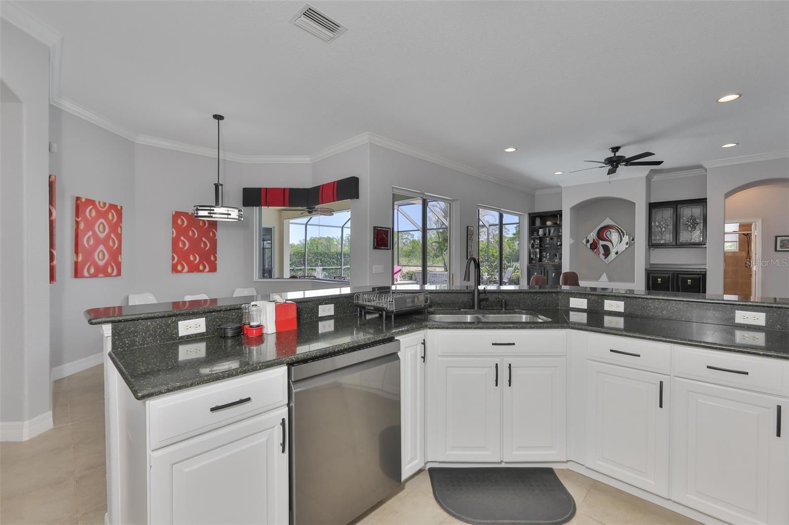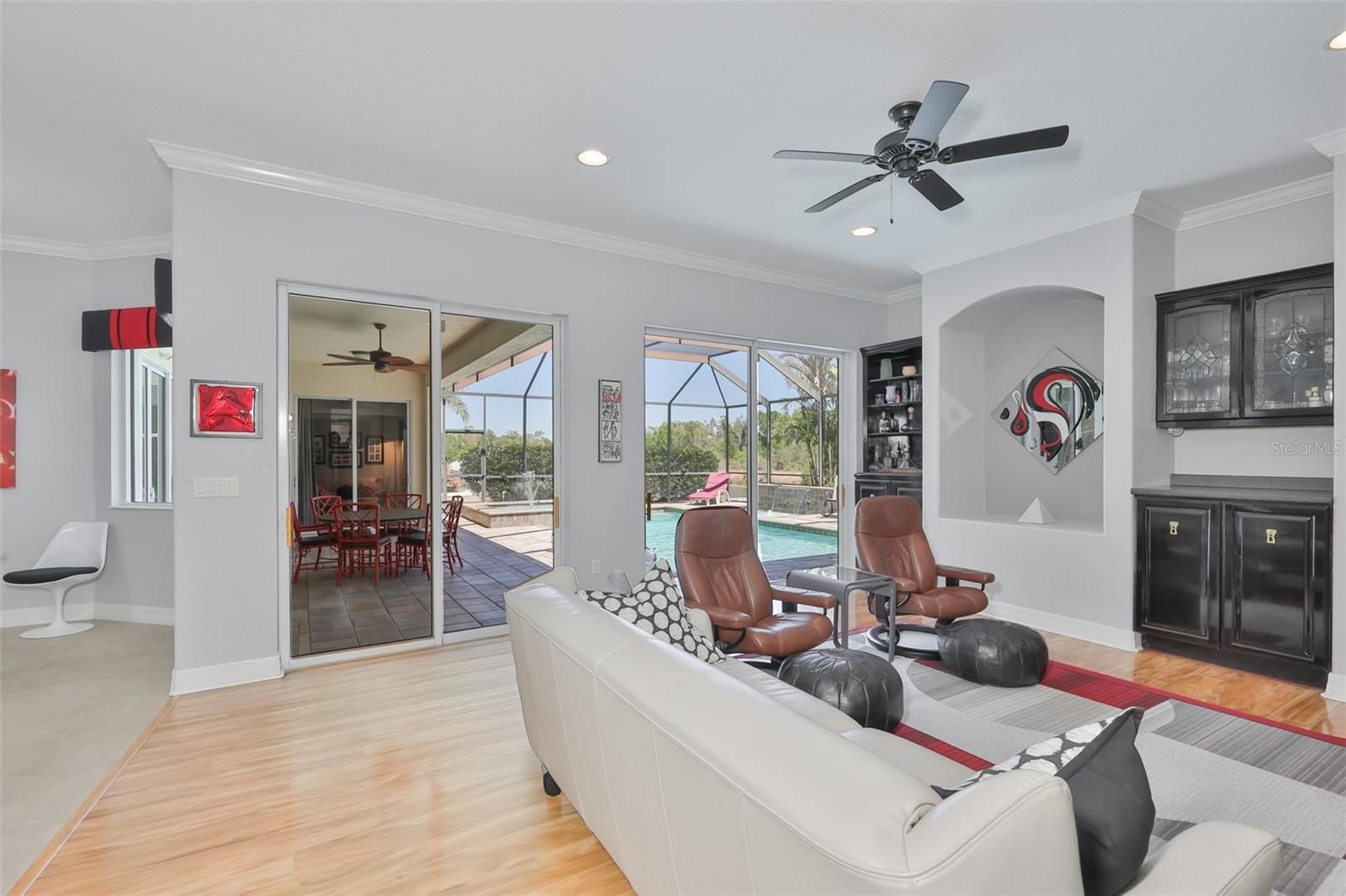 Click On Interactive 3D Tour Above ----- SPECTACULAR EXECUTIVE HOME W/RESORT-STYLE POOL, SPA & WATERFALL, ON A UNIQUE PREMIUM WATER VIEW LOT W/NO BACKYARD NEIGHBORS! Welcome to this immaculate and perfectly maintained designer home with UPGRADES GALORE. nestled within a quiet cul de sac in the premier resort-style 55+ community of Renaissance. Step inside the serene front entryway, through CUSTOM ETCHED GLASS/ART DECO DOUBLE DOORS, and be awed by the astounding WATER VIEWS ALL ACROSS THE REAR OF THE HOME! The elegant living room/dining room combo, with vaulted ceilings and custom tile flooring, is the perfect space for entertaining, with a wall of siders for easy access to the amazing covered & screened lanai & pool area. This home was built for entertaining, with a fabulous UPGRADED EAT-IN KITCHEN (2023). A chef's dream featuring 42 inch cabinets w/sleek hardware, top-of-the-line stainless appliances including convection oven, natural gas cooktop grille and 17 ft of dramatic, black bull-nosed granite counter & serving space! The spacious family room has a custom built-in bar w/wine storage cabinets and pullouts, glass doors and another wall of double sliders leading to the lanai & pool. The EXTENDED owner's suite has its own sitting area w/private entrance to the lanai & pool, a luxurious ensuite bathroom w/walk-in shower, oversized tub, upgraded vanities, lighting & mirrors (2023) and Moen fixtures (2026). The other 3 SPACIOUS BEDROOMS & 2 FULL BATHROOMS, INCLUDING POOL BATH, are on the opposite side of the home for privacy, one currently used as an office & the other a dance studio. The extraordinary lanai boasts an oversized, unique heated pool w/spa, waterfall and sunbathing deck. Other home upgrades include HVAC (2026), SOFTWARE CONTROL (2026), POOL PUMP (2025), WATER SOFTENER (2025), WHOLE HOUSE GENERATOR (2025), SOLAR PANELS FOR POOL (2024), WATER HEATER (2022), CUSTOM LAMINATE FLOORING IN FAMILY ROOM & BEDROOMS 2, 3 & 4 (2021), WHOLE HOUSE ADT SECURITY SYSTEM, PLUS OVERSIZED GARAGE W/3 CEILING STORAGE LOFTS. This home is just a short golf cart ride to the neighborhood Club Renaissance where you can enjoy dining, drinks, spa, fitness classes, social activities and so much more. So come and view this beauty today and discover why you'll want to call it home!