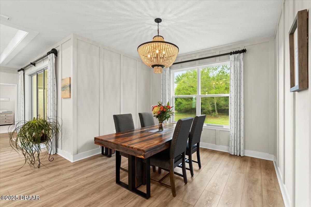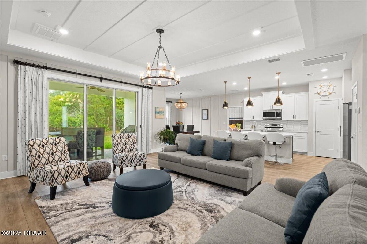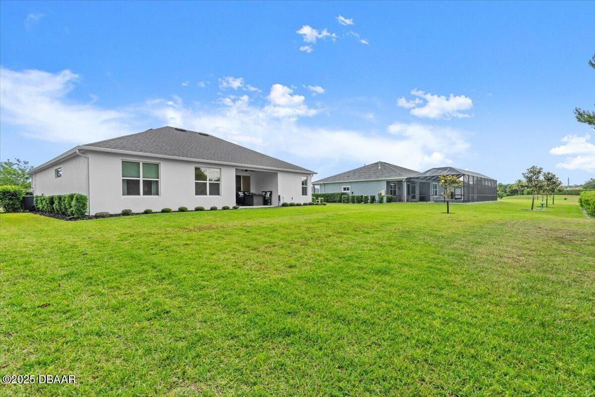Welcome to 3070 Silvermines Avenue—an upgraded, move-in-ready home nestled in the sought-after Halifax Plantation community. Originally the builder's model, this 2021-built residence offers a thoughtfully designed split floor plan with four bedrooms, three bathrooms, a versatile flex room, and a spacious three-car garage. Inside, you'll find 10-foot ceilings, upgraded lighting, and subtle custom touches like added trim and millwork in the main living areas and primary suite—adding just the right amount of character. The open-concept layout is light and airy, anchored by a stylish two-tone kitchen with a contrasting island, 42'' upper cabinets, soft-close drawers, quartz countertops, a tile backsplash, and a large walk-in pantry with extra storage space. The bathrooms each showcase unique tile selections paired with quartz countertops and upgraded light fixtures, giving every space its own personality. The primary suite features a tray ceiling, custom drapery, and a well-appointed en-suite bathroom with wood cabinetry, quartz countertops, a frameless walk-in shower with a transom window, and a spacious walk-in closet. A second en-suite bedroom offers a private retreat, featuring its own upgraded bathroom with glass tile flooring, a tiled walk-in shower, quartz countertops, and a vanity with cabinet storage below. Sliding glass doors from the main living area lead to a covered lanai, offering a seamless transition to outdoor living and peaceful views of Tee Box 16, providing a quiet, green backdrop with no rear neighbors. Tucked within the scenic, oak-lined community of Halifax Plantation, this home enjoys access to a semi-private lifestyle with golf, clay tennis courts, a junior Olympic-size pool, fitness center, and dining at The Tavern and Pub. Located just minutes from the beaches of Ormond by the Sea and Flagler Beach, as well as the natural beauty of Tomoka, Bulow Creek, and North Peninsula State Parks, this home offers both convenience and connection to the best of Florida's coastal lifestyle. Welcome home! Roof 2021 | HVAC 2021 | Hot Water Heater 2021 Square footage received from tax rolls. All information recorded in the MLS intended to be accurate but cannot be guaranteed.