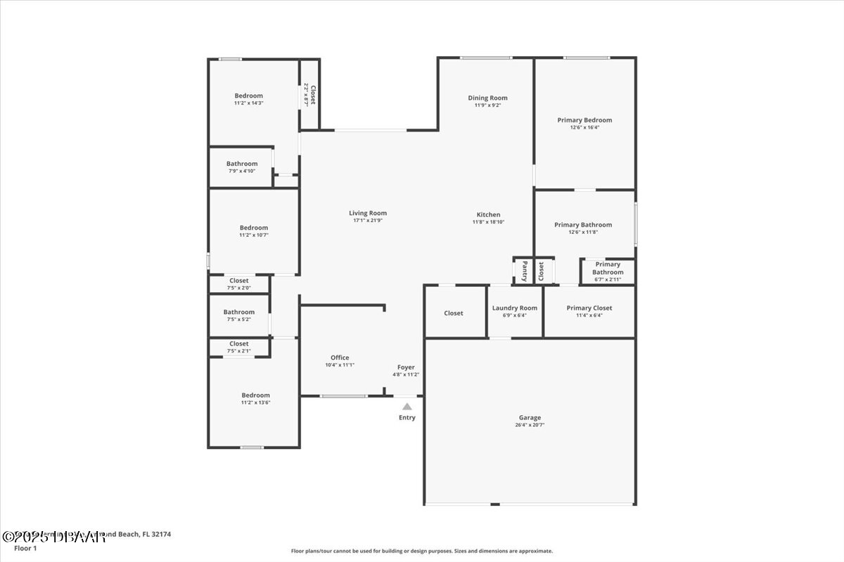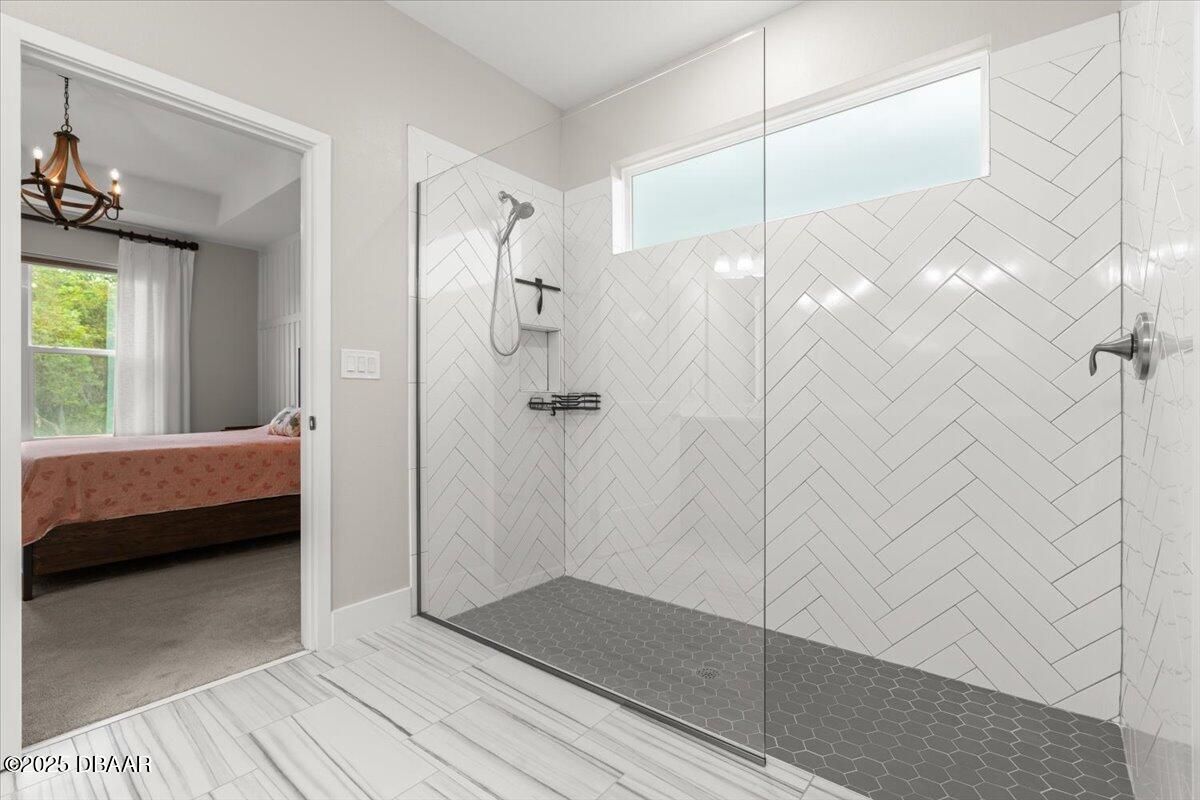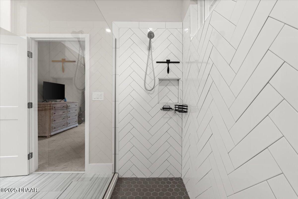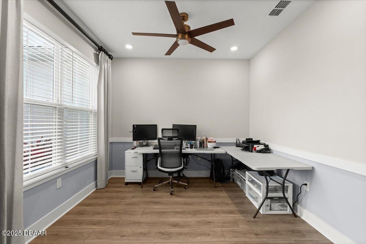 Welcome to 3070 Silvermines Avenue—an upgraded, move-in-ready home nestled in the sought-after Halifax Plantation community. Originally the builder's model, this 2021-built residence offers a thoughtfully designed split floor plan with four bedrooms, three bathrooms, a versatile flex room, and a spacious three-car garage. Inside, you'll find 10-foot ceilings, upgraded lighting, and subtle custom touches like added trim and millwork in the main living areas and primary suite—adding just the right amount of character. The open-concept layout is light and airy, anchored by a stylish two-tone kitchen with a contrasting island, 42'' upper cabinets, soft-close drawers, quartz countertops, a tile backsplash, and a large walk-in pantry with extra storage space. The bathrooms each showcase unique tile selections paired with quartz countertops and upgraded light fixtures, giving every space its own personality. The primary suite features a tray ceiling, custom drapery, and a well-appointed en-suite bathroom with wood cabinetry, quartz countertops, a frameless walk-in shower with a transom window, and a spacious walk-in closet. A second en-suite bedroom offers a private retreat, featuring its own upgraded bathroom with glass tile flooring, a tiled walk-in shower, quartz countertops, and a vanity with cabinet storage below. Sliding glass doors from the main living area lead to a covered lanai, offering a seamless transition to outdoor living and peaceful views of Tee Box 16, providing a quiet, green backdrop with no rear neighbors. Tucked within the scenic, oak-lined community of Halifax Plantation, this home enjoys access to a semi-private lifestyle with golf, clay tennis courts, a junior Olympic-size pool, fitness center, and dining at The Tavern and Pub. Located just minutes from the beaches of Ormond by the Sea and Flagler Beach, as well as the natural beauty of Tomoka, Bulow Creek, and North Peninsula State Parks, this home offers both convenience and connection to the best of Florida's coastal lifestyle. Welcome home! Roof 2021 | HVAC 2021 | Hot Water Heater 2021 Square footage received from tax rolls. All information recorded in the MLS intended to be accurate but cannot be guaranteed.