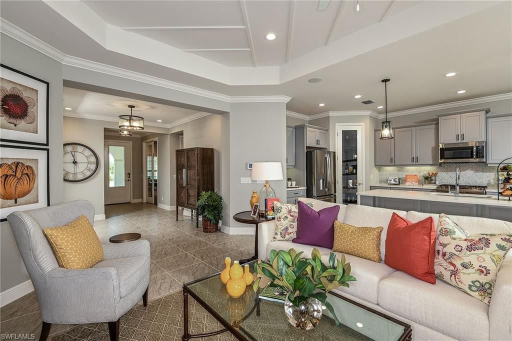This beautifully designed Starlight floor plan home by Neal Communities is currently under construction in the gated, resort-style community of Heritage Preserve at Verandah. Positioned on Homesite 228, this home features impact-resistant glass for enhanced safety and peace of mind. This beautifully designed residence features 8-foot interior doors, and wood-look tile flooring throughout the main living areas. The spacious kitchen includes GE stainless steel appliances, Bianco Dolomite quartz countertops, a center island, 42” upper cabinets with dovetail construction, soft-close drawers and doors, roll-out shelves, and a striking herringbone mosaic tile backsplash. The great room and primary bedroom are enhanced with a recessed ceiling package, adding an elegant touch. A screened-in lanai provides the perfect space for outdoor relaxation. Verandah is a natural gas, gated lifestyle community offering exceptional amenities, including 36 holes of championship golf designed by Jack Nicklaus and Bob Cupp (full golf membership is optional). The mandatory social membership includes limited golf privileges, club dining at the River House Bar & Grill and Blossoms on the Orange River, kayaking, over nine miles of trails and boardwalks, a club pool with lap lanes, five clay tennis courts, pickleball courts, and access to five golf professionals. Residents also enjoy a staffed fitness center with locker rooms and optional classes such as yoga, spin, and water aerobics. The community is patrolled, features two gatehouses, and is ideally located just 12 minutes from downtown Fort Myers, 10 minutes to Walmart/Target shopping, 20 minutes to the airport, and 4 minutes to Boathouse 31 and the marina on the Orange River. Please note: images are not an exact representation of the feature home and the home will not be sold furnished, nor will the home be sold with a pool.