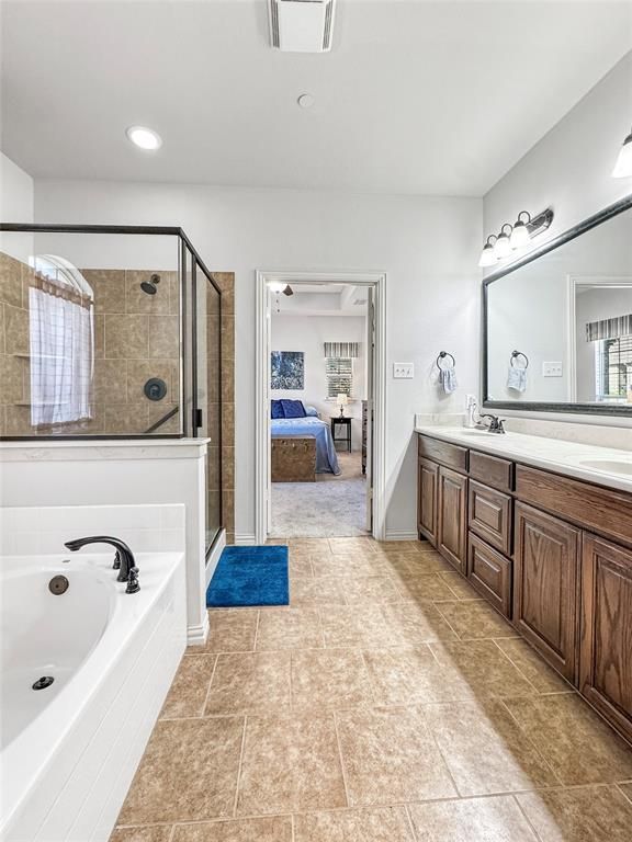 Effortless living meets timeless comfort in this beautifully designed one-story condo in the heart of McKinney, nestled within the highly sought-after Frisco ISD. With 2 spacious bedrooms, 2 full baths, and a 2-car garage, this 1,473 sq. ft. condo blends open-concept living with thoughtful details throughout.The gated community takes care of the details, from all yard and landscaping maintenance to access to the amenity center with pool, workout room, and outdoor grilling areas. Residents also enjoy full access to Stonebridge Ranch amenities, offering endless opportunities for recreation and connection.Life here comes with more than just comfort—it’s a lifestyle. From neighborhood dinners and coffee groups to bridge, mahjong, Texas Hold’em, Mexican Trail, and community luncheons, there’s always something happening and someone to share it with.Vaulted ceilings and plantation shutters create an airy, light-filled atmosphere, while the large kitchen offers generous counter space and cabinetry—perfect for everyday living or hosting friends. The living room flows seamlessly to a private gated patio, offering a cozy retreat ideal for casual gatherings or quiet mornings.The primary suite is a true haven with a large walk-in closet and an ensuite bath featuring both a soaking tub and a separate shower. A dedicated pocket office area provides a convenient workspace, and the in-unit laundry room adds extra ease. With abundant closet storage throughout, there’s a place for everything and everyone.