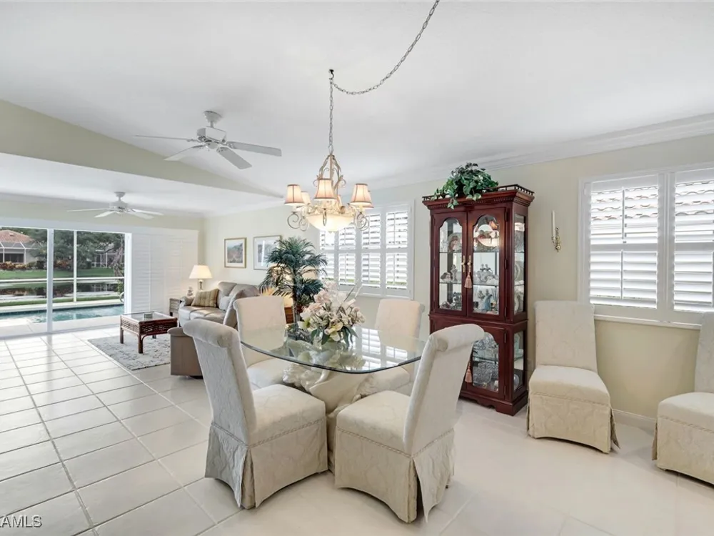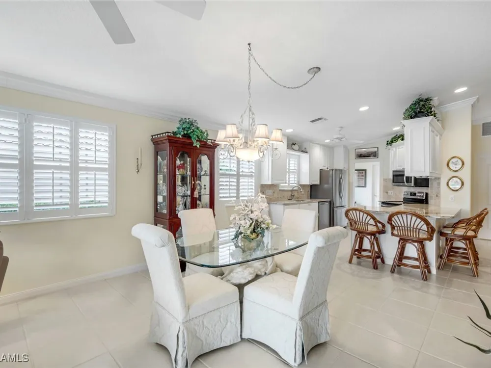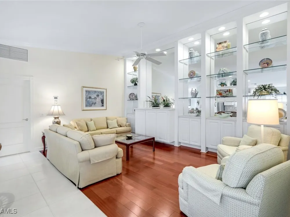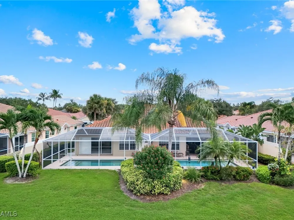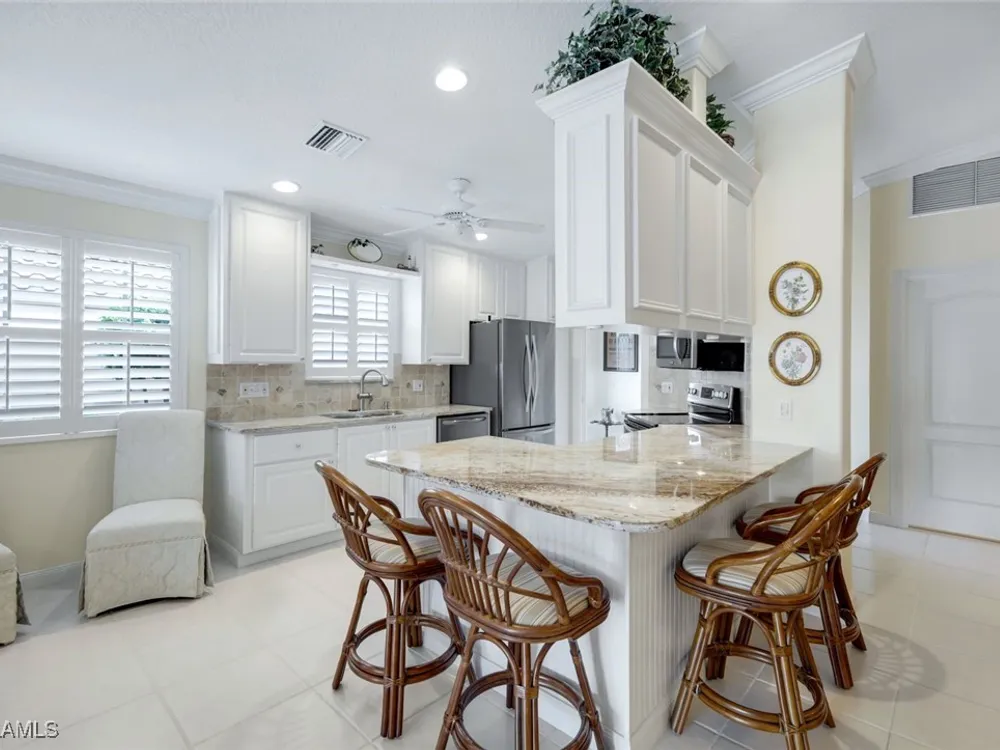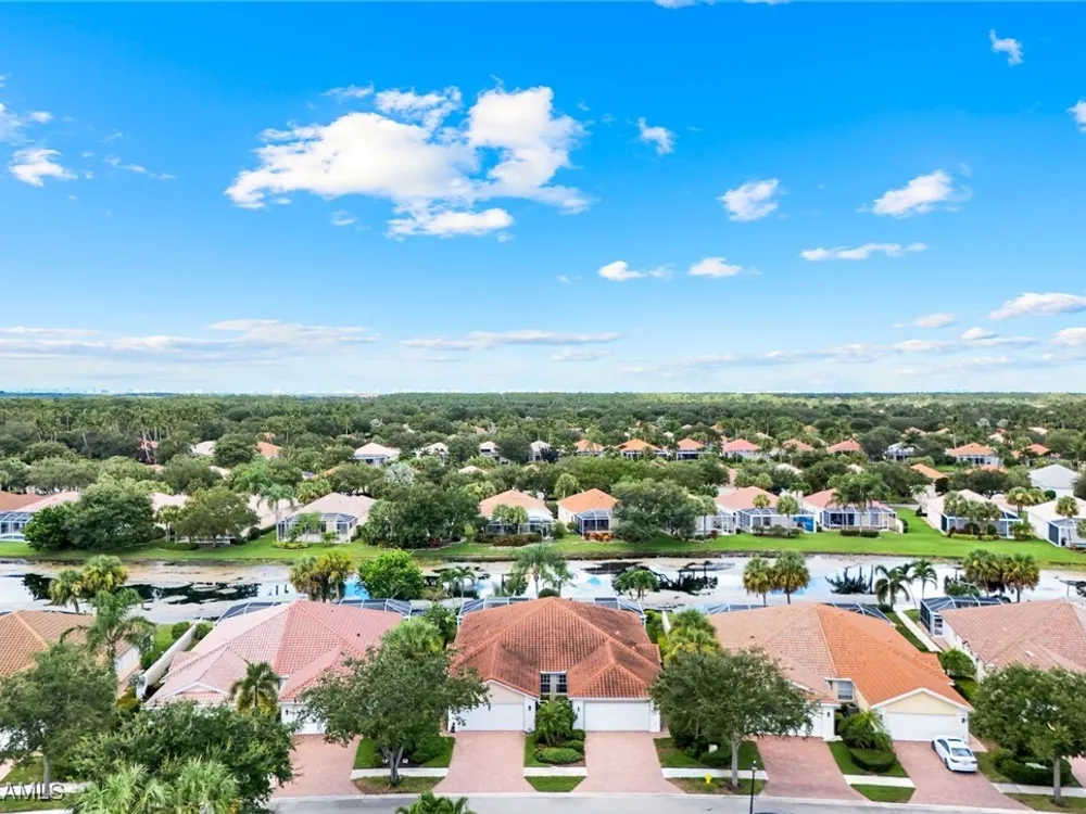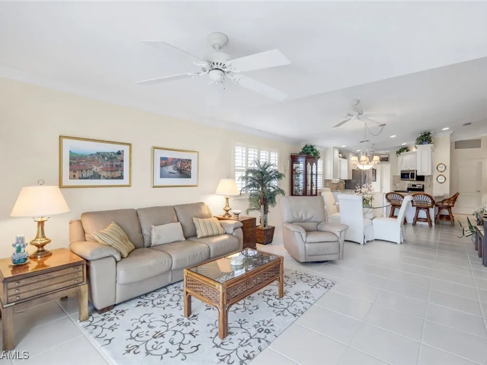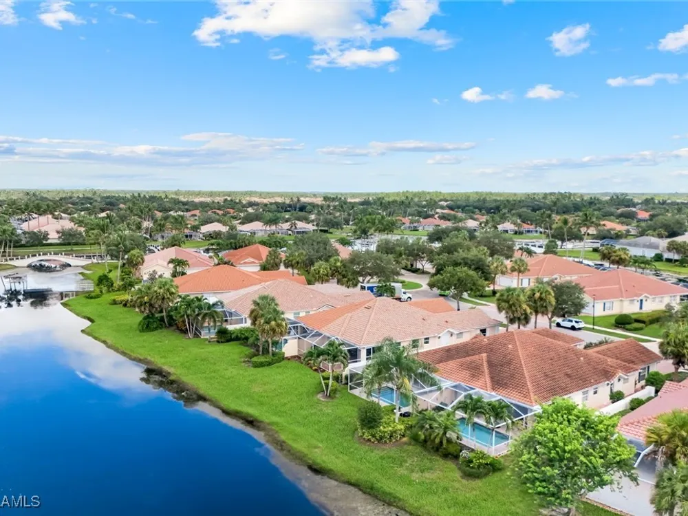 Welcome to 3077 Futuna Lane, an exquisite 2-bedroom lakefront pool Villa with extended living area and newer roof in the coveted Island Walk Community. This expansive floor plan boasts 2 bedrooms and 2 bathrooms, seamlessly blending contemporary design with vaulted ceilings and lots of windows that flood the interior with natural light, creating a warm and inviting atmosphere. Featuring an open concept kitchen with a spacious Granite Island and stainless appliances perfect for entertaining. The Great Room has wood floors and a built in wall unit. The living area also adorns Plantation shutters. Adjacent, the casual dining area overlooks your private heated pool and breathtaking water vistas, making every meal a scenic experience. Retreat to the primary suite, a sanctuary of comfort featuring an en-suite bathroom and incredible lake view. A generous guest suite with private bath is ideal for family or friends. Located in one of Naples' most sought-after neighborhoods, residents enjoy access to exclusive amenities including a Resort style pool, lap pool, a Towncenter, Tennis, pickleball, bocce, fitness center, Restaurant, Beauty and Nail Salons, Car Wash, Gas Station and Post Office. Close to Naples’ sandy beaches, wonderful shopping, and dining.