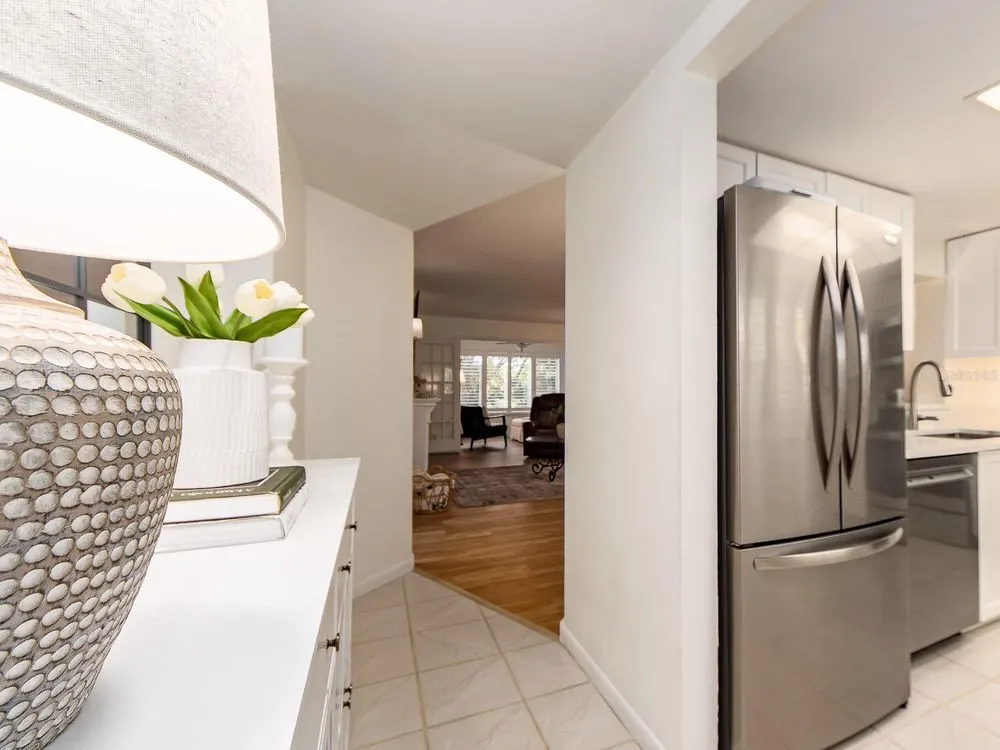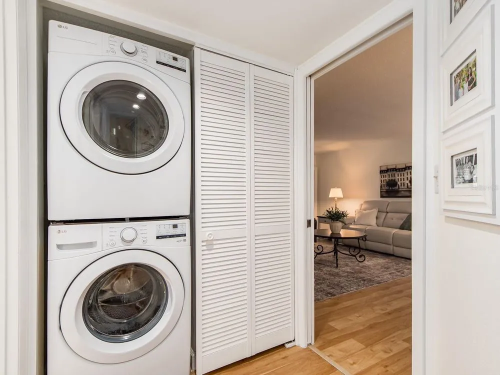 Location! Location! This 55+ 2 Bedroom, 2 Bath condo, in the gated community of Imperial Pines, has a lot to offer. Located in a park like setting but close to every convenience you can think of: A Publix grocery store, numerous varied restaurants, banks, hair salons, drug stores, shops and more! Features include under building parking, 2 secure lobby entrances, 2 elevators, a walking path around the entire property, a clubhouse (with a work out area and meeting rooms where activities take place, like holiday parties) which looks out to a large heated pool and deck area and a hot tub to relax in. Once you step into the unit, you will be taken back by how lovely it is, with the look of a model home! The large primary bedroom has a walk in closet, ensuite bathroom with a linen closet for storage. The second bedroom is next to the second bathroom which is off the hallway where there is a laundry closet housing a newer stacked washer and dryer. The eat-in kitchen has room for a breakfast table and chairs. The kitchen has a pass through opening with a view of the living room/dining area and the bright Florida room that can be used as an office or a nice sitting room. The following will convey: newer refrigerator, stove, dishwasher, and microwave. All approximate a year and a half old. Upgrades such as new Plantation shutters on all windows, newer ceiling fans in the primary bedroom and Florida room, new smoke detectors and a newer hot water heater. Don't miss this one as it is a gem!!