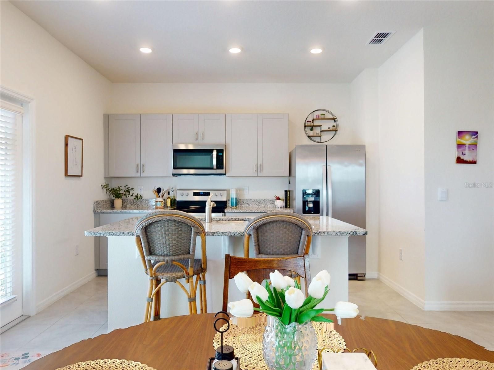 Experience the perfect blend of modern comfort, elevated style, and effortless living in this beautifully crafted 2023 two-story block townhome located in The Palms in the highly desirable Venetian Bay, a golf community. Offering 1,614 living sq ft of thoughtfully designed space with a DR Horton structual warranty to be transferred to the new homeowner along with a security 24/7 security monitoring system. The open concept downstairs showcases elegant tile flooring and carpet upstairs, a contemporary kitchen with sleek gray cabinetry and granite countertops, and a spacious living and dining area complemented by a convenient half bath—ideal for both everyday living and entertaining. This home stands apart with a collection of desirable seller upgrades, including wood blinds throughout with linen curtains downstairs and blackout curtains in bedrooms upstairs for enhanced privacy, four upgraded ceiling fans, and a stylish dining room chandelier that adds a touch of sophistication. All appliances—including the washer and dryer—are included, offering move-in-ready convenience. A smart garage door opener adds modern functionality, and furniture is negotiable, making this an exceptional turn-key opportunity. Upstairs, three well-appointed bedrooms, two full baths, and an oversized laundry room are designed for everyday ease. The serene primary suite offers a peaceful retreat. The 2-car garage and shared paver driveway deliver both function and curb appeal. With lawn care included in the HOA, you’ll enjoy truly low-maintenance living, allowing more time to savor the Florida lifestyle. Residents of Venetian Bay enjoy an unparalleled array of amenities, including pickleball and tennis courts, a basketball court, miles of scenic walking and biking trails, and the inviting Beach & Swim Club with additional HOA fees is complete with a Tiki Bar. The vibrant town center features a market, restaurant, spa, coffee shop, and fitness center—creating a lively community hub just moments from home. Golf enthusiasts will love the renowned 18-hole championship course and clubhouse. All of this is located just minutes from the Canal Street Historic District, Flagler Avenue, and the pristine beaches of New Smyrna Beach—making this townhome the perfect blend of luxury, lifestyle, and location. "All information in the MLS is intended to be accurate, however not guaranteed."