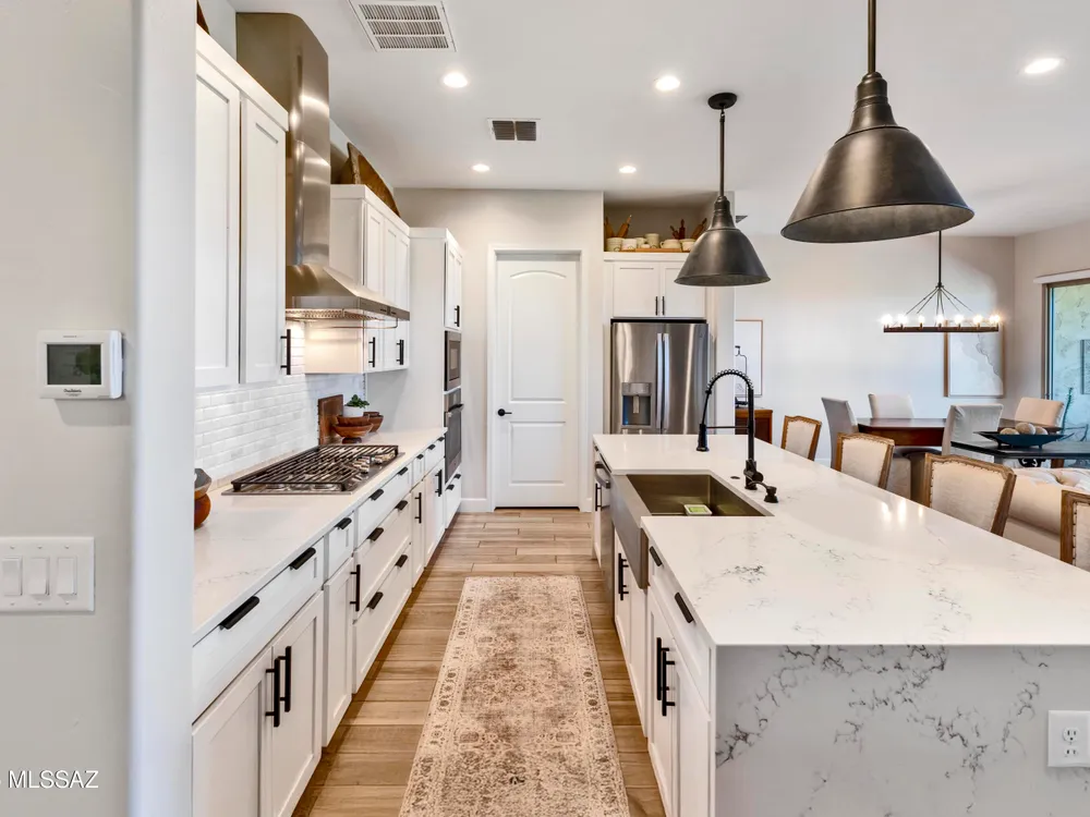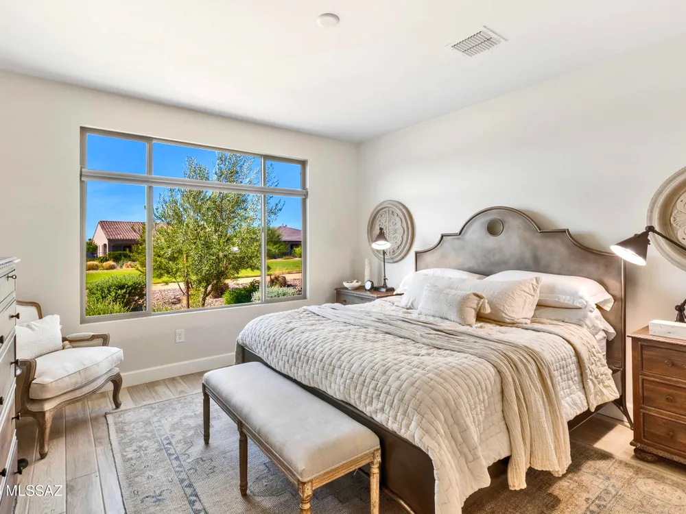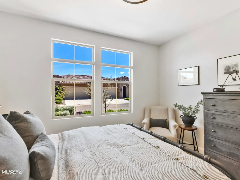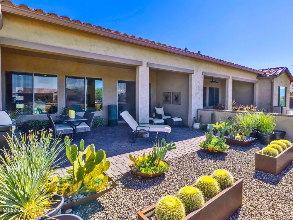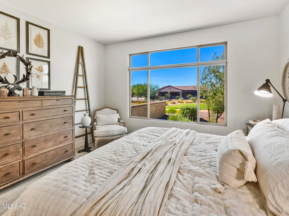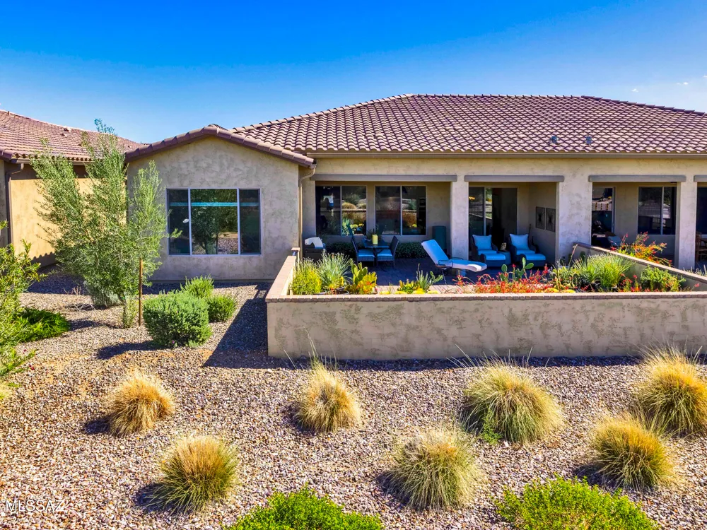 This stunning Viva model truly has it all! Nestled in the newest Villa section, this 4-year-old home offers modern & luxurious upgrades. Step inside to discover a highly upgraded villa with a contemporary kitchen featuring Restoration Hardware designs throughout. The chef's kitchen features an oversized farmhouse apron sink, wall ovens/microwave, a high-performance cooktop, quartz countertops & large island. Spacious den/office. The walk-in curbless shower is luxurious. Garage has an epoxy floor & a tankless water heater. The large, extended courtyard features a covered patio and overlooks a lush, common grass area, creating an outdoor retreat with views of the Catalina Mountains and stunning sunsets. Don't miss this opportunity to live the dream at SaddleBrooke Ranch!