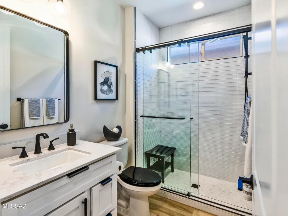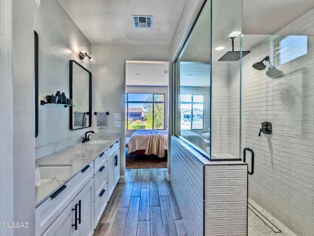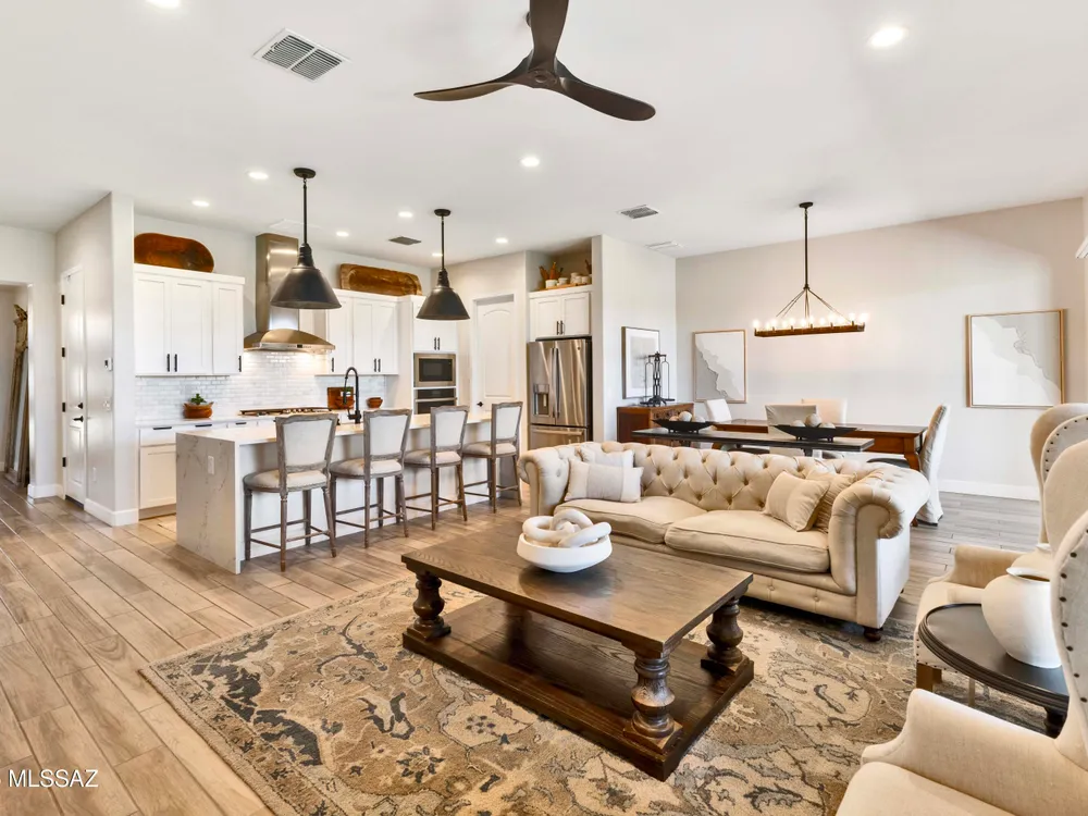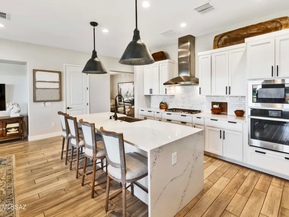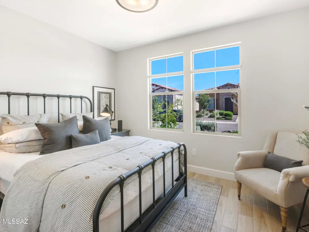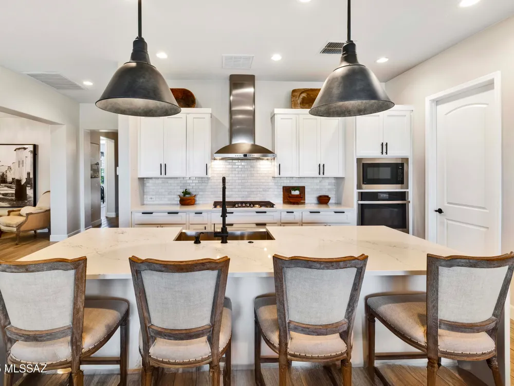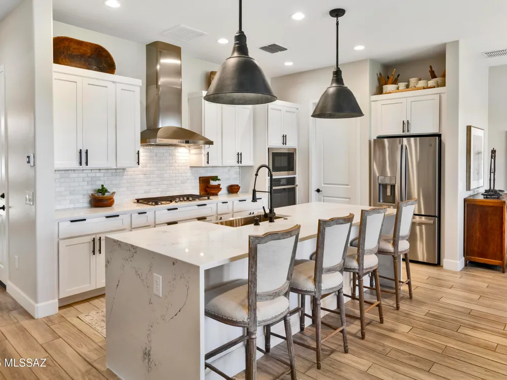 This stunning Viva model truly has it all! Nestled in the newest Villa section, this 4-year-old home offers modern & luxurious upgrades. Step inside to discover a highly upgraded villa with a contemporary kitchen featuring Restoration Hardware designs throughout. The chef's kitchen features an oversized farmhouse apron sink, wall ovens/microwave, a high-performance cooktop, quartz countertops & large island. Spacious den/office. The walk-in curbless shower is luxurious. Garage has an epoxy floor & a tankless water heater. The large, extended courtyard features a covered patio and overlooks a lush, common grass area, creating an outdoor retreat with views of the Catalina Mountains and stunning sunsets. Don't miss this opportunity to live the dream at SaddleBrooke Ranch!