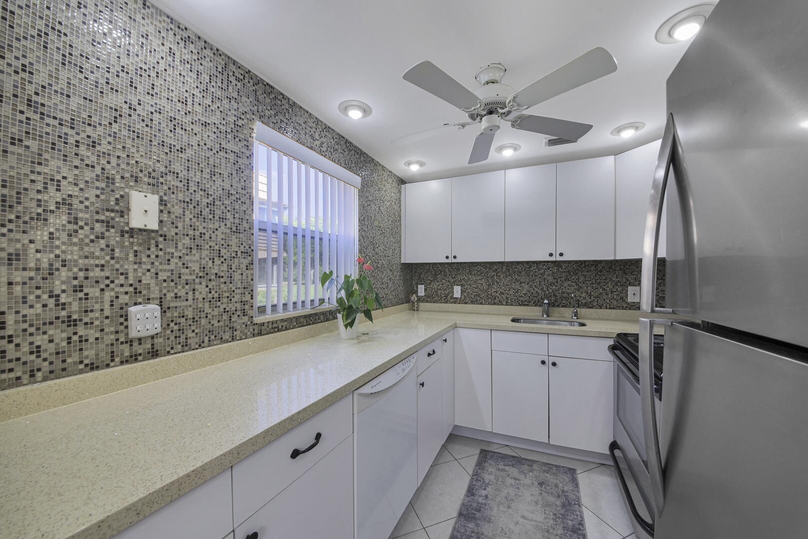 Welcome to this charming first-floor condo in the highly desirable Kings Point community. This inviting home features an open floor plan with neutral flooring and abundant natural light, creating a warm and comfortable ambiance. The updated kitchen offers modern cabinetry and finishes, perfect for everyday living or entertaining. The spacious bedroom includes a sliding door that opens to a screen-enclosed patio — ideal for enjoying your morning coffee or relaxing in the fresh air. Experience the ease of low-maintenance living in a vibrant, amenity-rich community close to shopping, dining, and entertainment.