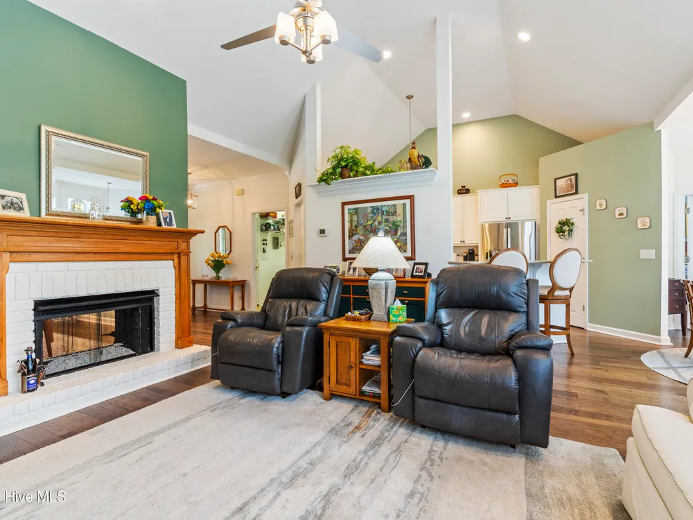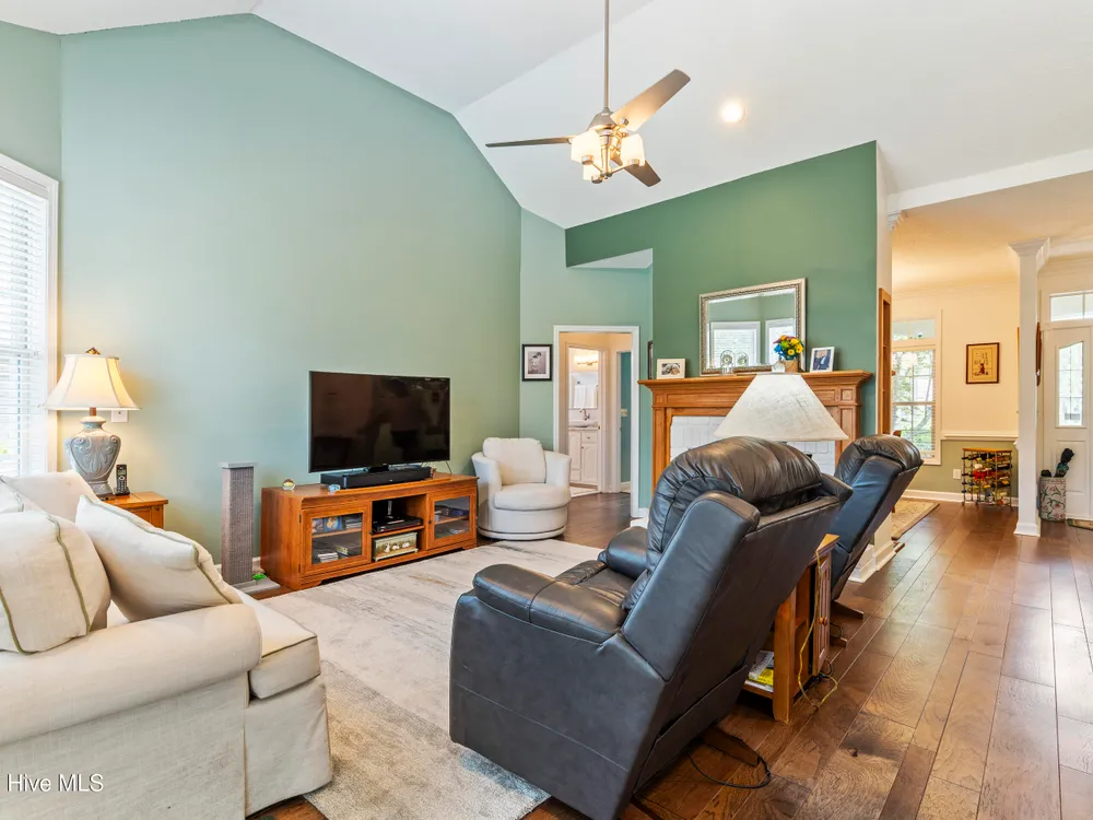 - Blinds/Shades, Solid Surface, Walk-In Closet(s), Walk-in Shower, Entrance Foyer, Pantry, Kitchen Island, High Ceilings, Gas Log, Ceiling Fan(s)
