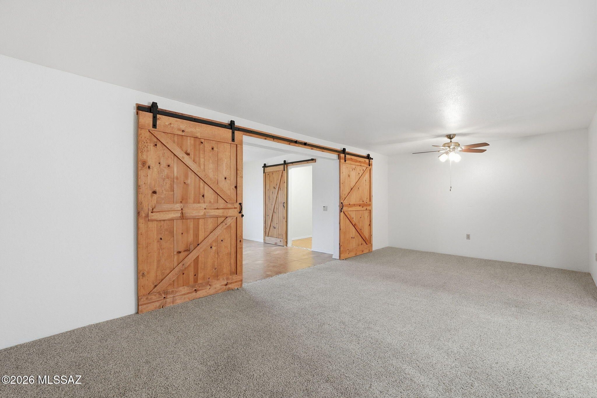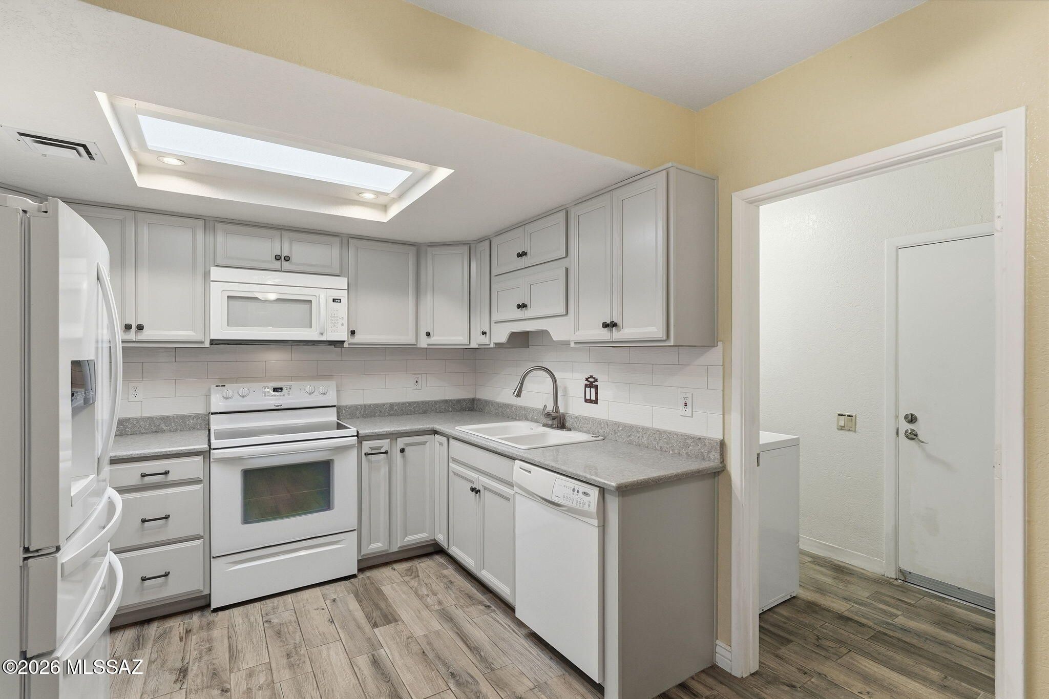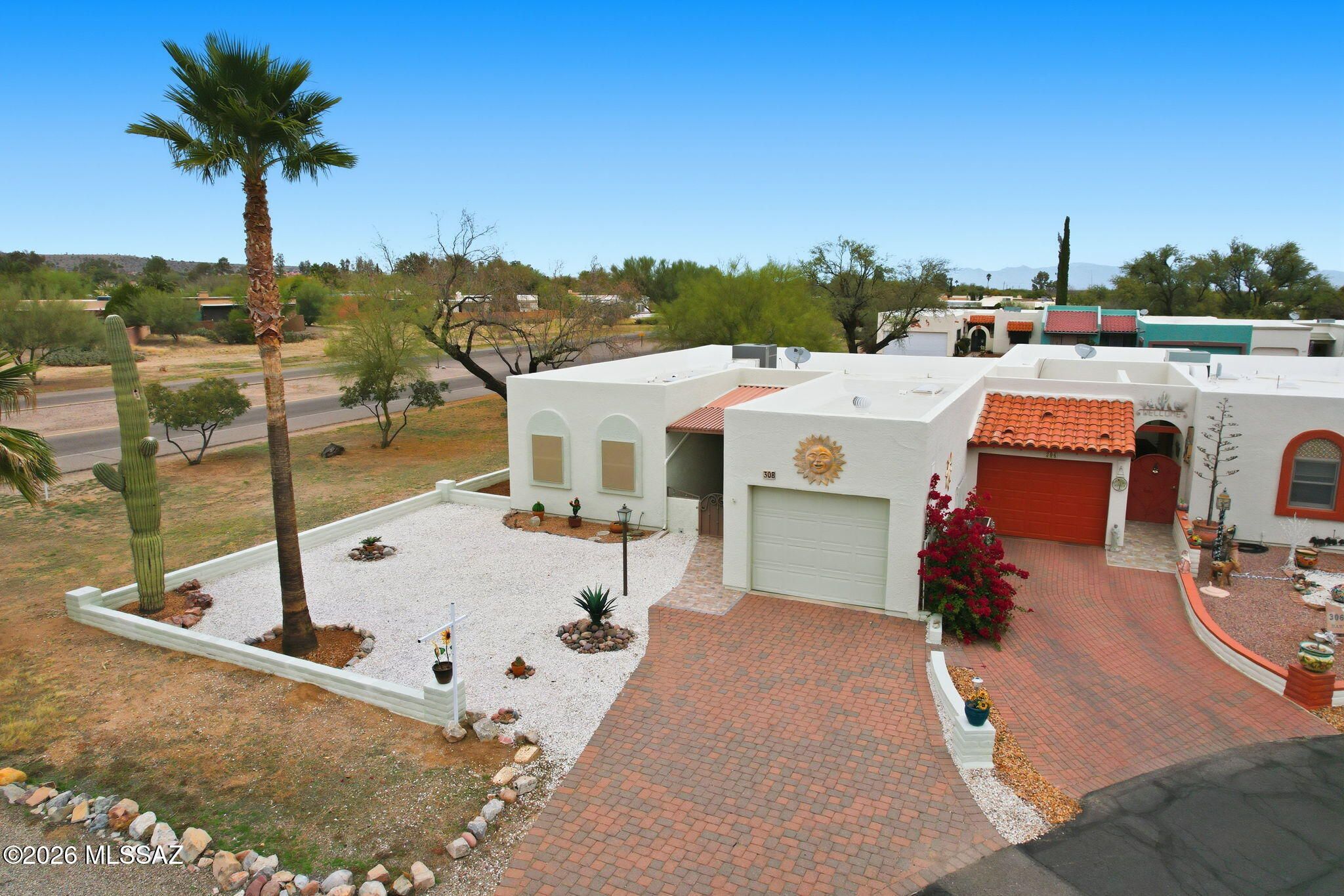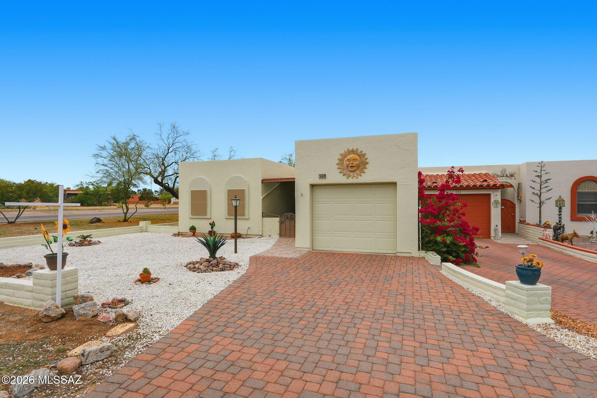 Fabulous townhome and beautifully maintained. Kitchen and bathrooms have Quartz counters. Light and bright kitchen that sparkles! Two large sized bedrooms. Wonderful sunroom with a large walk in pantry - great for extra storage. Barn doors offer a unique design feature that sets this unit apart from any others in this price range. Newer air conditioner and heating HVAC (2021). Solar screens added 2024 which provide extra cooling and privacy. Fully enclosed garage with new epoxy floor. All appliances stay. Great location, short distance to the GVR pool and arts facility, close to shopping and restaurants. Easy access to I-19.