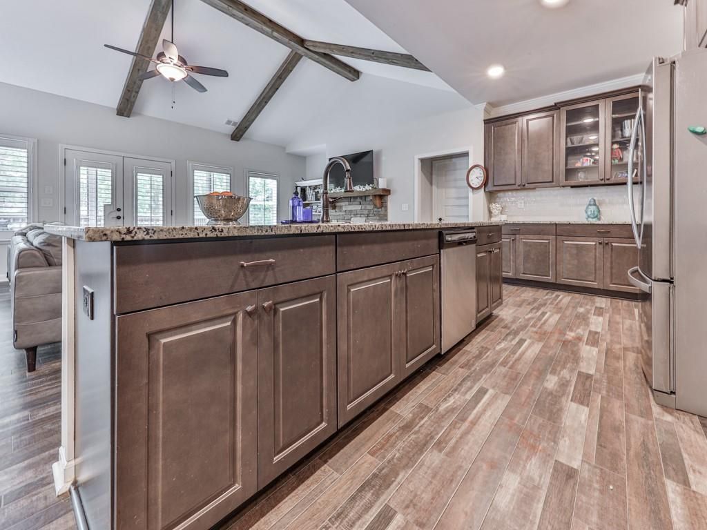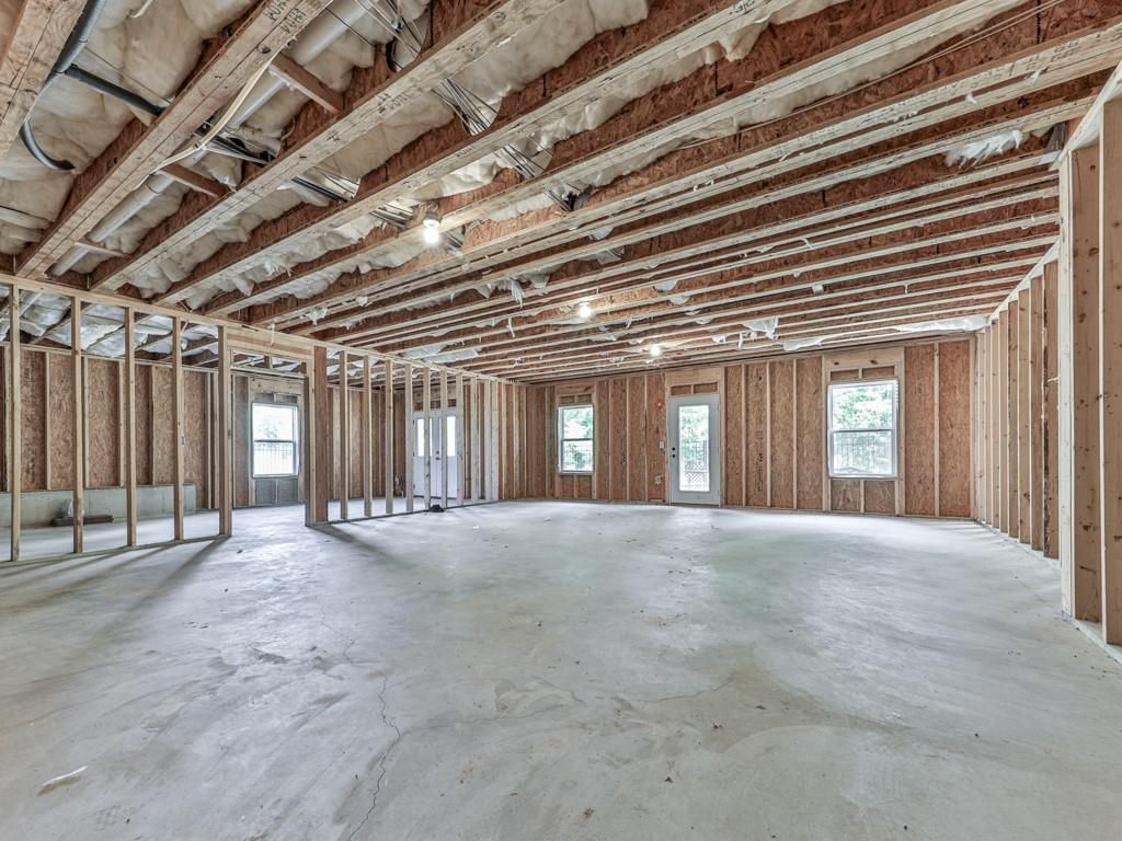 - Beamed Ceilings, Double Vanity, Dry Bar, Entrance Foyer, Vaulted Ceiling(s), Walk-In Closet(s), Insulated Windows, Plantation Shutters, Basement, Bonus Room, Family Room, Home Office