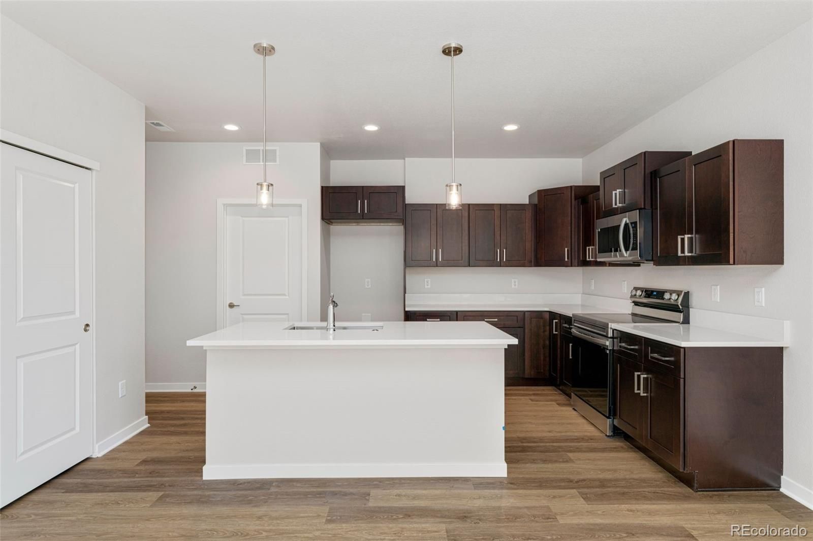 - Eat-in Kitchen, Entrance Foyer, High Ceilings, Kitchen Island, Open Floorplan, Pantry, Primary Suite, Quartz Countertops, Radon System, Smart Thermostat, Walk-In Closet(s)