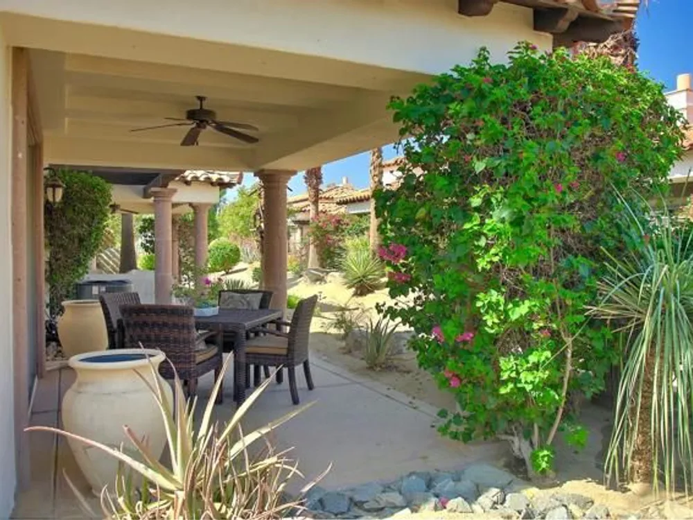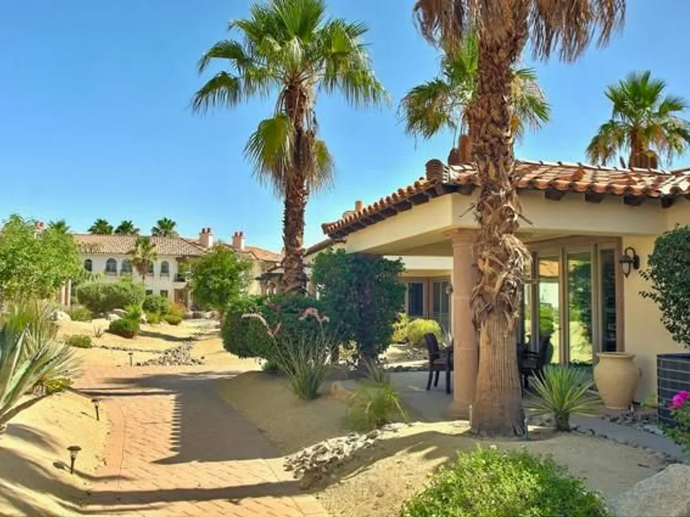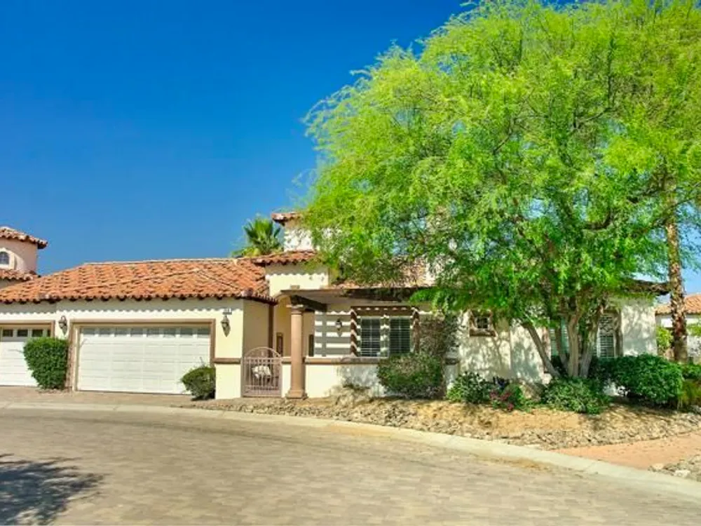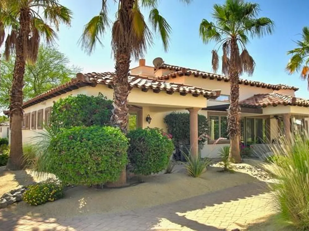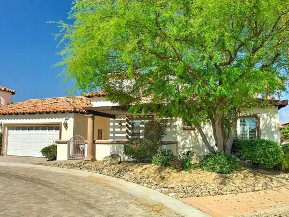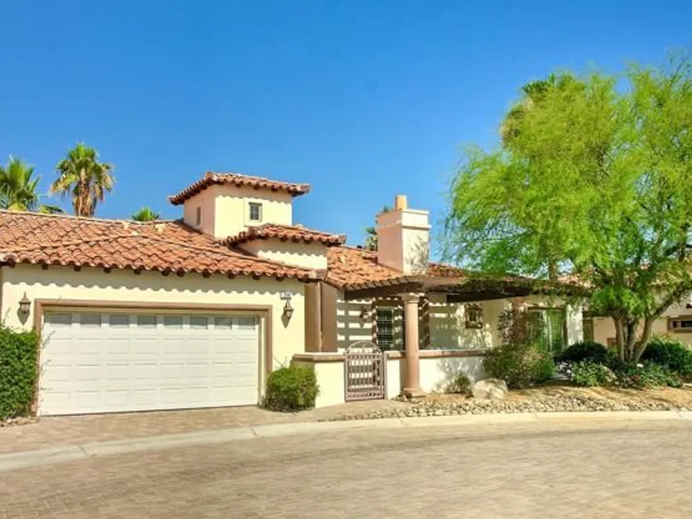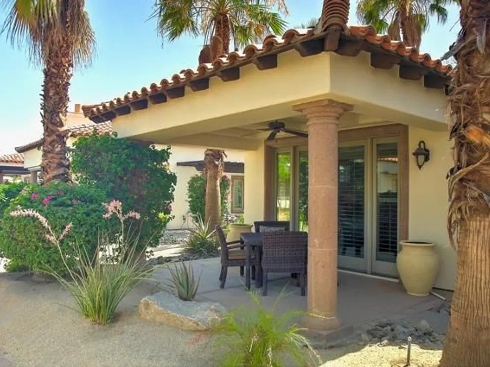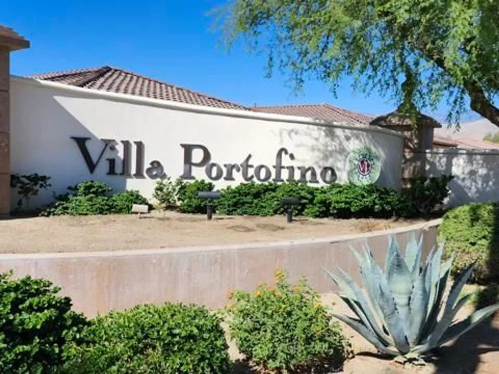 Welcome to Your Tuscan-Inspired Retreat in Villa Portofino! Discover the perfect blend of elegance, comfort, and resort-style living in this beautifully designed Tuscan-style villa, nestled in the heart of the highly sought-after 55+ community of Villa Portofino. This spacious 2-bedroom, 2-bath home also includes a versatile office, den, study or studio--also ideal as guest space. Step through a private gated courtyard into a thoughtfully crafted interior featuring soaring coffered ceilings, travertine flooring, slab granite countertops, and abundant natural light. The inviting living room is centered around a cozy fireplace and framed by large windows with plantation shutters and remote-controlled blinds, offering both charm and functionality. A distinctive dining area with an attractive chandelier , Custom lighting in the living areas and a built-in wet bar makes entertaining effortless and stylish. The chef's kitchen is a true highlight, boasting a gas cooktop and oven, new refrigerator, ample cabinetry, and refined finishes that make cooking a joy. Retreat to the luxurious primary suite, complete with a spa-like en-suite bath featuring dual vanities, a soaking tub, a glass-enclosed shower, and a custom walk-in closet. Enjoy multiple outdoor patios--perfect for morning coffee, evening wine, or hosting friends under the desert sky. Additional features include a spacious laundry room, a two-car garage and a private driveway. Built with exceptional craftsmanship, this home showcases timeless architectural details such as an old-world clay tile roof, stone-columned porches, 8' French doors. Note designer touches like bullnose corners, solid maple cabinetry, and Italian-style solid core interior doors. Located on a quiet cul-de-sac with guest parking just steps away, this home offers one of the best locations in the community. Villa Portofino residents enjoy access to a 30,000 sq. ft. clubhouse featuring: Fine dining and a bistro, Movie theater, Billiards and card rooms, Library and yoga studio, Fitness center and junior Olympic pool, Concierge services and a full calendar of social events.Conveniently located near Eisenhower Medical Center, El Paseo shopping and and dining, world-class golf, the McCallum Theatre, casinos and hiking and biking trails - this home offers the ultimate in desert living.