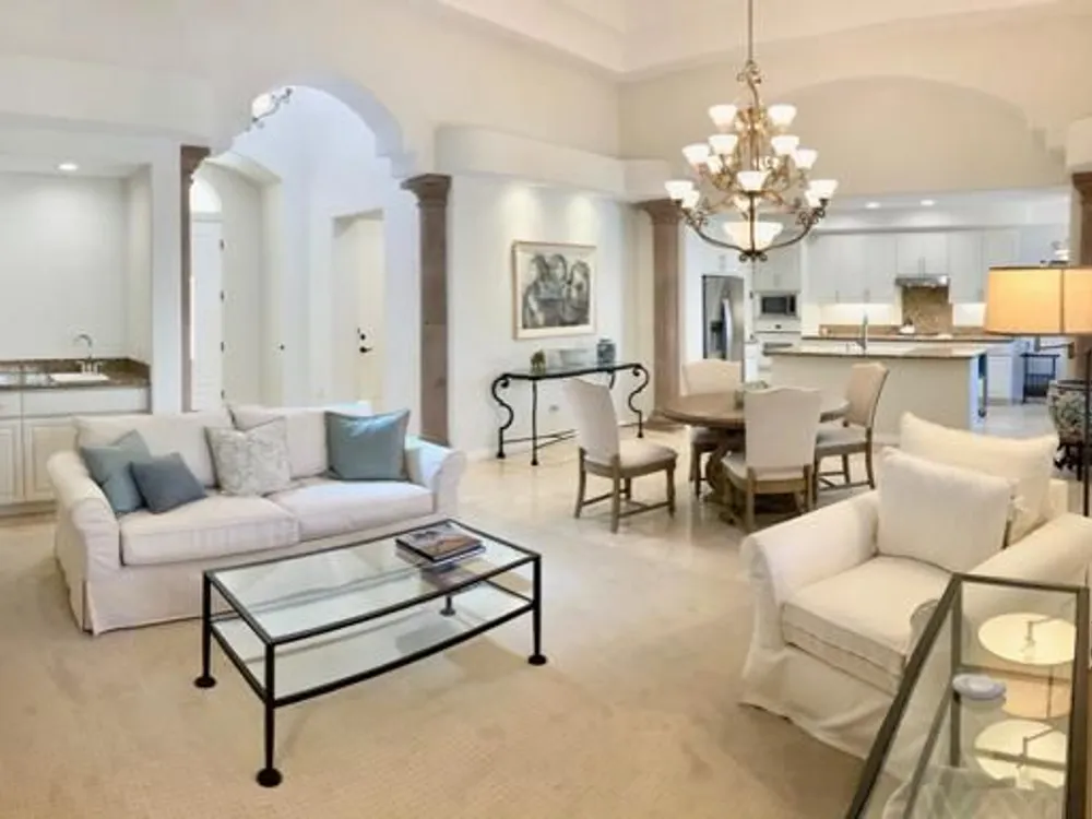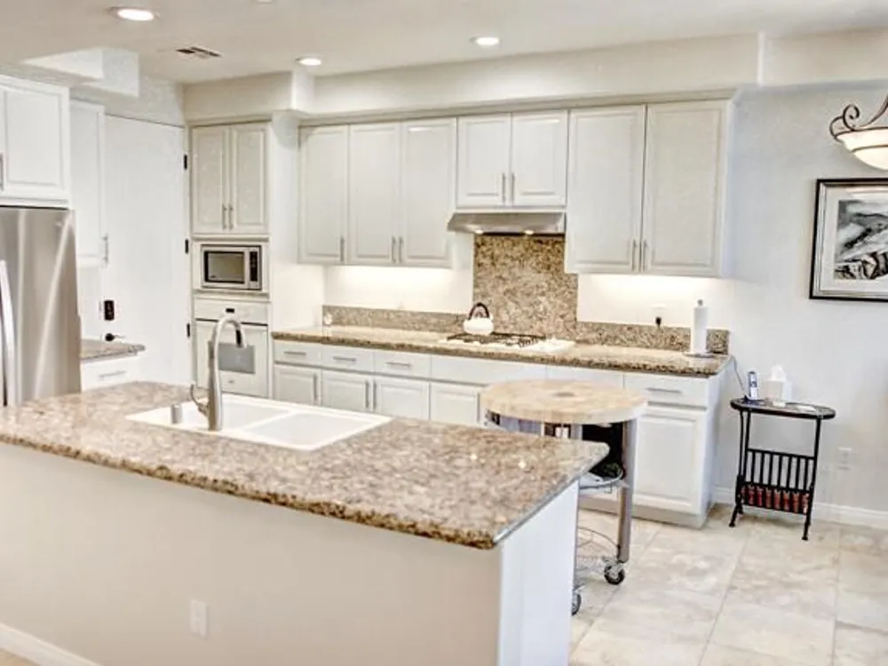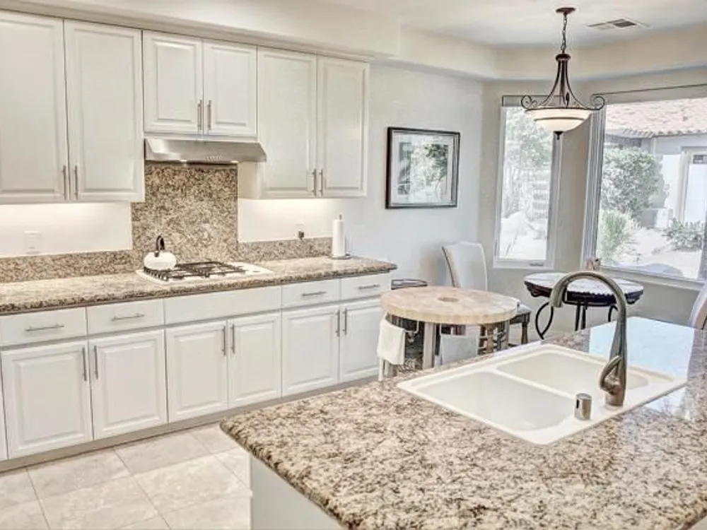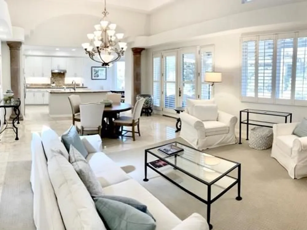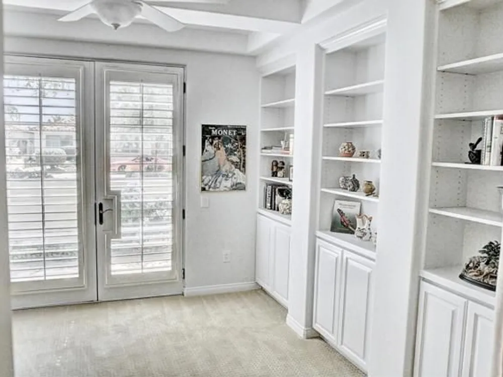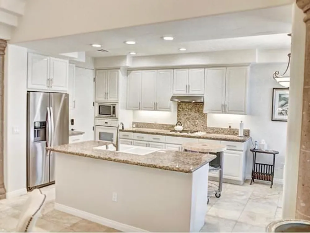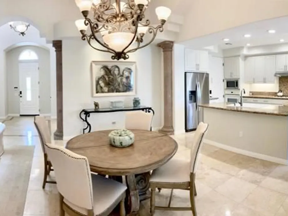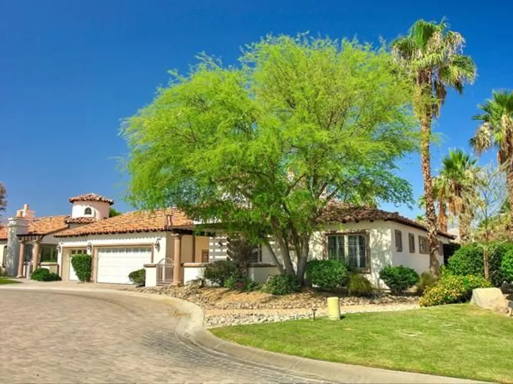 Welcome to Your Tuscan-Inspired Retreat in Villa Portofino! Discover the perfect blend of elegance, comfort, and resort-style living in this beautifully designed Tuscan-style villa, nestled in the heart of the highly sought-after 55+ community of Villa Portofino. This spacious 2-bedroom, 2-bath home also includes a versatile office, den, study or studio--also ideal as guest space. Step through a private gated courtyard into a thoughtfully crafted interior featuring soaring coffered ceilings, travertine flooring, slab granite countertops, and abundant natural light. The inviting living room is centered around a cozy fireplace and framed by large windows with plantation shutters and remote-controlled blinds, offering both charm and functionality. A distinctive dining area with an attractive chandelier , Custom lighting in the living areas and a built-in wet bar makes entertaining effortless and stylish. The chef's kitchen is a true highlight, boasting a gas cooktop and oven, new refrigerator, ample cabinetry, and refined finishes that make cooking a joy. Retreat to the luxurious primary suite, complete with a spa-like en-suite bath featuring dual vanities, a soaking tub, a glass-enclosed shower, and a custom walk-in closet. Enjoy multiple outdoor patios--perfect for morning coffee, evening wine, or hosting friends under the desert sky. Additional features include a spacious laundry room, a two-car garage and a private driveway. Built with exceptional craftsmanship, this home showcases timeless architectural details such as an old-world clay tile roof, stone-columned porches, 8' French doors. Note designer touches like bullnose corners, solid maple cabinetry, and Italian-style solid core interior doors. Located on a quiet cul-de-sac with guest parking just steps away, this home offers one of the best locations in the community. Villa Portofino residents enjoy access to a 30,000 sq. ft. clubhouse featuring: Fine dining and a bistro, Movie theater, Billiards and card rooms, Library and yoga studio, Fitness center and junior Olympic pool, Concierge services and a full calendar of social events.Conveniently located near Eisenhower Medical Center, El Paseo shopping and and dining, world-class golf, the McCallum Theatre, casinos and hiking and biking trails - this home offers the ultimate in desert living.