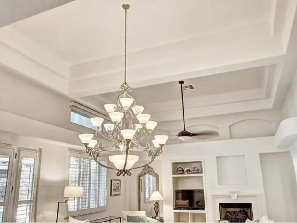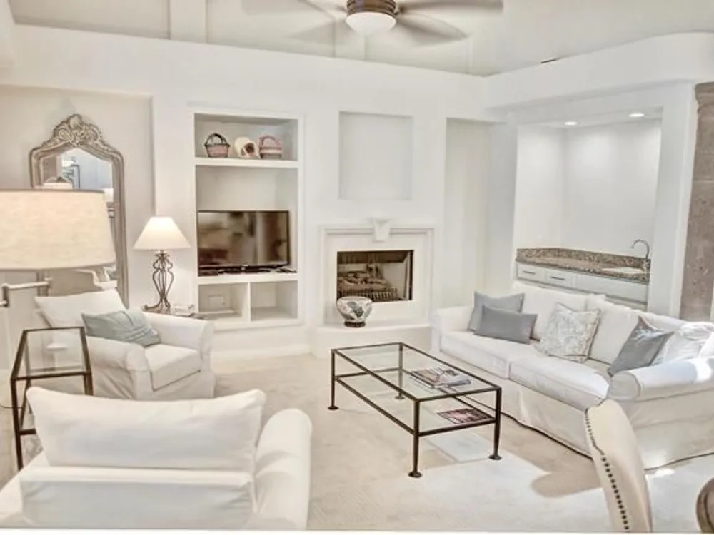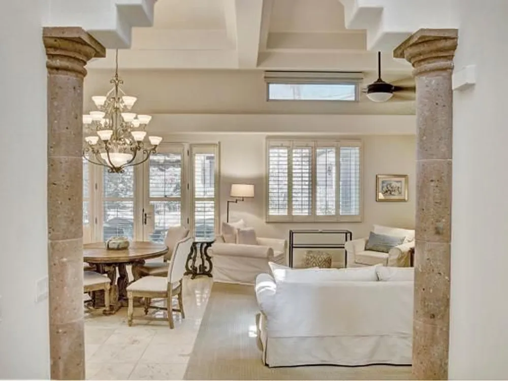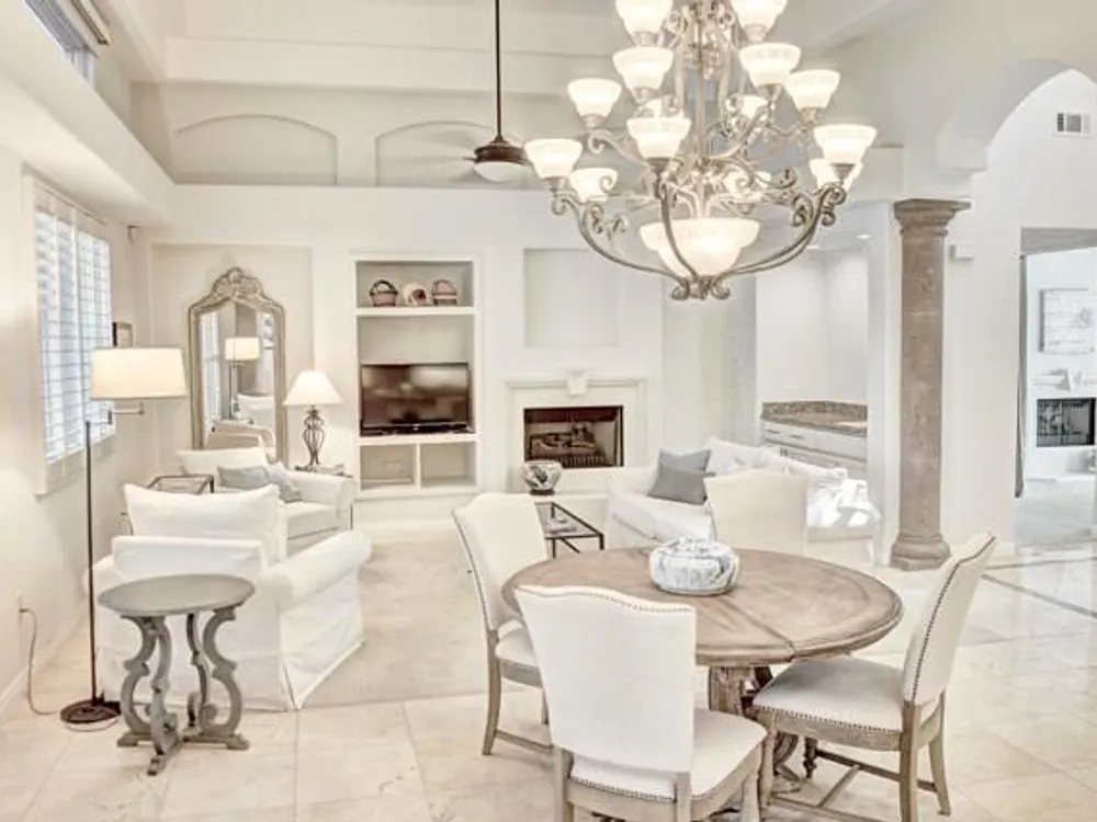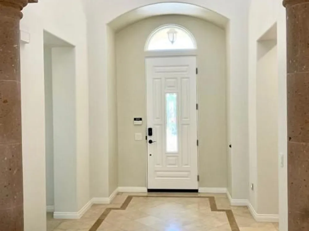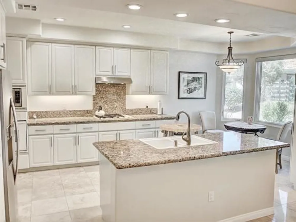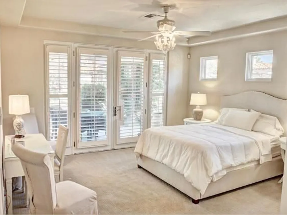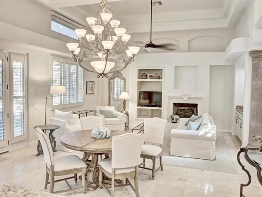 Welcome to Your Tuscan-Inspired Retreat in Villa Portofino! Discover the perfect blend of elegance, comfort, and resort-style living in this beautifully designed Tuscan-style villa, nestled in the heart of the highly sought-after 55+ community of Villa Portofino. This spacious 2-bedroom, 2-bath home also includes a versatile office, den, study or studio--also ideal as guest space. Step through a private gated courtyard into a thoughtfully crafted interior featuring soaring coffered ceilings, travertine flooring, slab granite countertops, and abundant natural light. The inviting living room is centered around a cozy fireplace and framed by large windows with plantation shutters and remote-controlled blinds, offering both charm and functionality. A distinctive dining area with an attractive chandelier , Custom lighting in the living areas and a built-in wet bar makes entertaining effortless and stylish. The chef's kitchen is a true highlight, boasting a gas cooktop and oven, new refrigerator, ample cabinetry, and refined finishes that make cooking a joy. Retreat to the luxurious primary suite, complete with a spa-like en-suite bath featuring dual vanities, a soaking tub, a glass-enclosed shower, and a custom walk-in closet. Enjoy multiple outdoor patios--perfect for morning coffee, evening wine, or hosting friends under the desert sky. Additional features include a spacious laundry room, a two-car garage and a private driveway. Built with exceptional craftsmanship, this home showcases timeless architectural details such as an old-world clay tile roof, stone-columned porches, 8' French doors. Note designer touches like bullnose corners, solid maple cabinetry, and Italian-style solid core interior doors. Located on a quiet cul-de-sac with guest parking just steps away, this home offers one of the best locations in the community. Villa Portofino residents enjoy access to a 30,000 sq. ft. clubhouse featuring: Fine dining and a bistro, Movie theater, Billiards and card rooms, Library and yoga studio, Fitness center and junior Olympic pool, Concierge services and a full calendar of social events.Conveniently located near Eisenhower Medical Center, El Paseo shopping and and dining, world-class golf, the McCallum Theatre, casinos and hiking and biking trails - this home offers the ultimate in desert living.