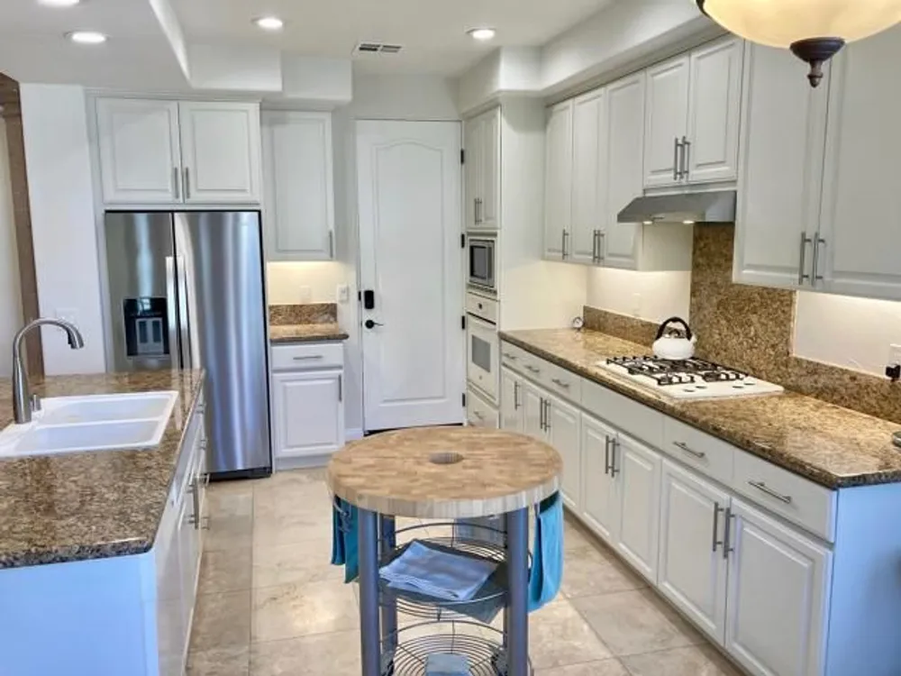 - Gas Cooktop, Microwave, Gas Oven, Vented Exhaust Fan, Refrigerator, Ice Maker, Disposal, Dishwasher, Gas Water Heater, Range Hood