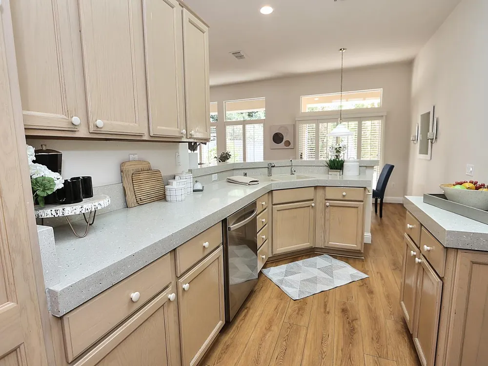 Beautiful & Roomy Sierra Model at the very popular, Sun City Roseville Community. This 3 bedroom, 2 bath, 2,083 sq. ft home is located on a quiet court. Newer, gorgeous wood flooring greets you as you step into the living & dining room. The entire home has been freshly painted. The exterior was painted last year. Sizeable family room with a kitchen nook off the kitchen. The pantry and kitchen cabinets provide great storage. The primary bedroom is expansive and leads to a bathroom and walk-in closet. The backyard includes a nice patio cover and garden beds. The garage offers cabinets for all your storage needs. Come see what Sun City Roseville has to offer as an Active Adult 55+ community with lush landscaping, cascading waterfalls, magnificent waterscapes, championship golf courses, immaculate surroundings and acres of natural preserves and parks that create a true active adult paradise!